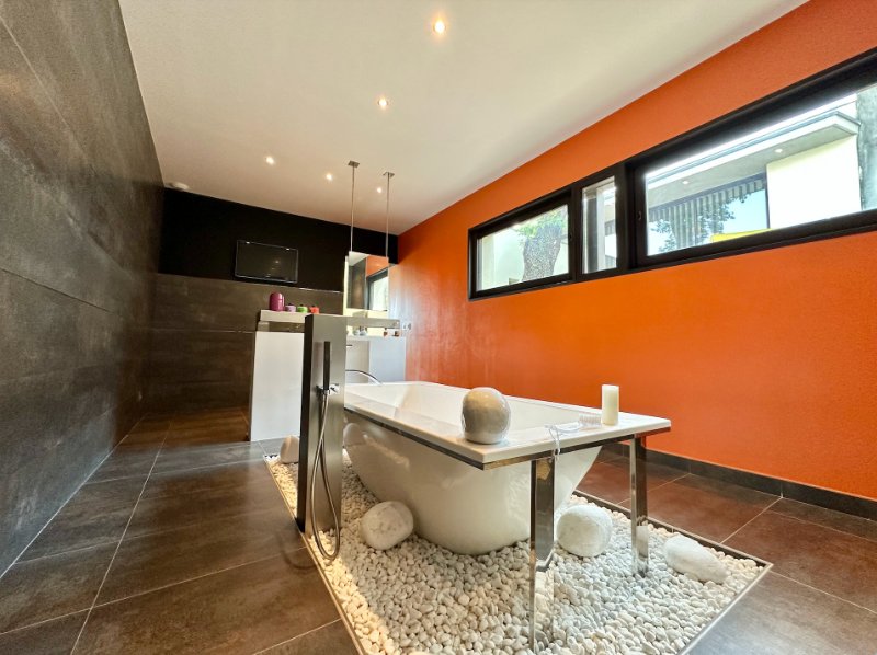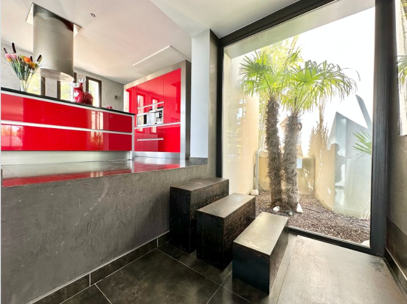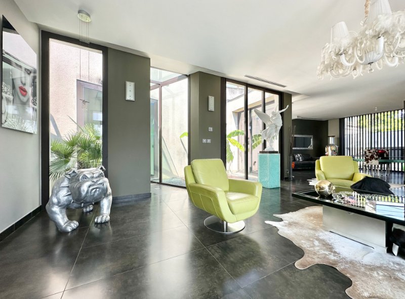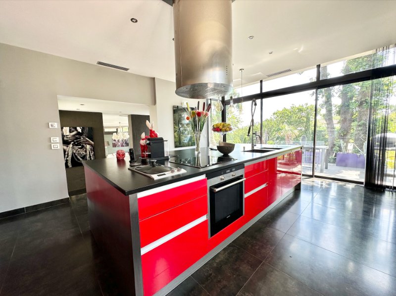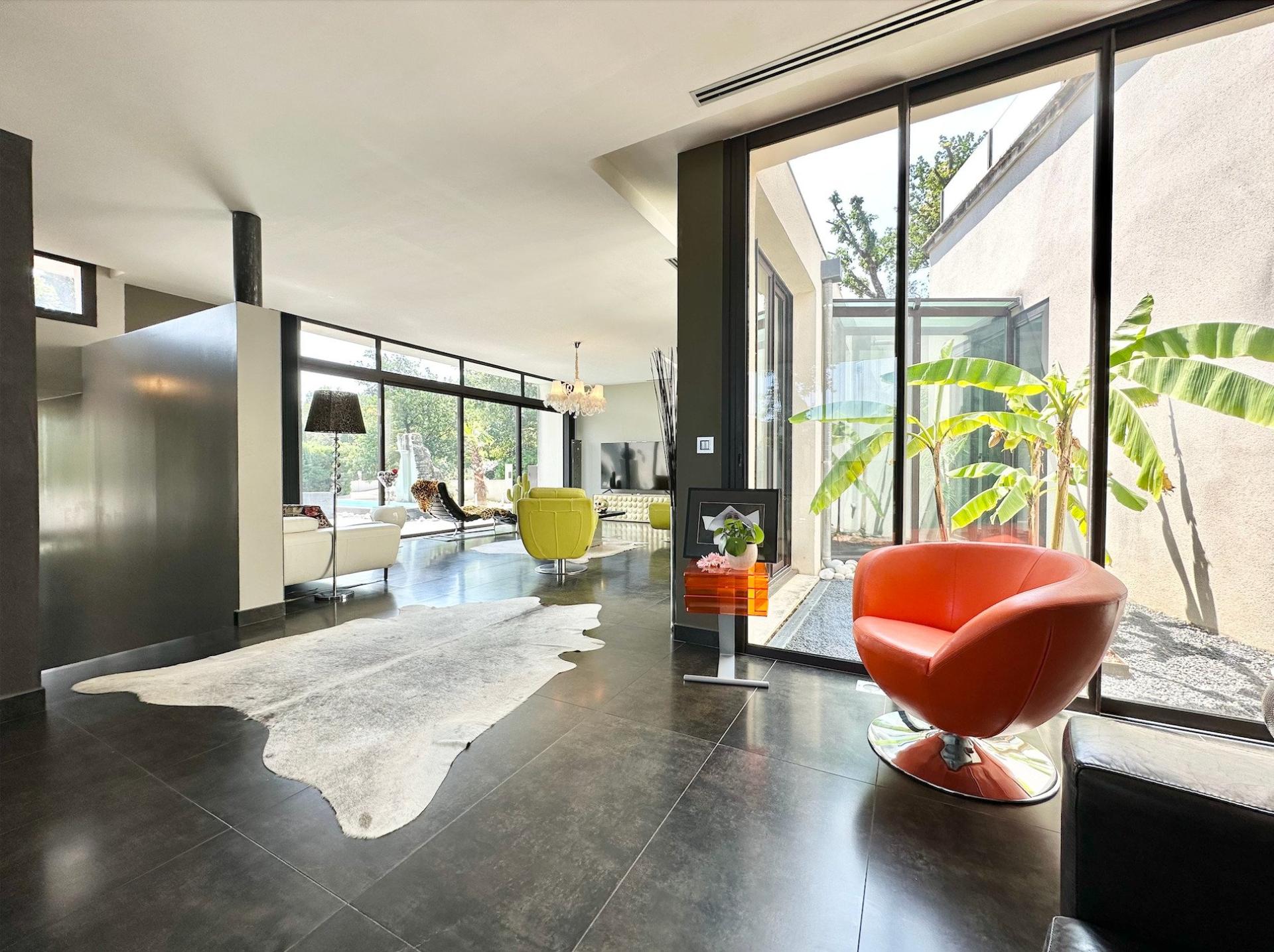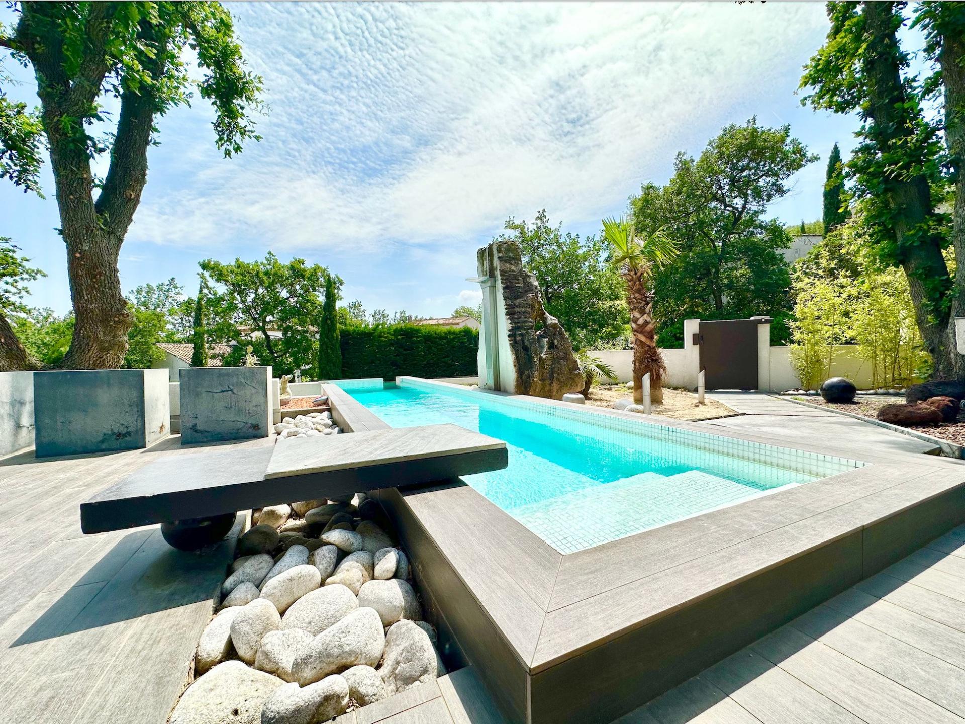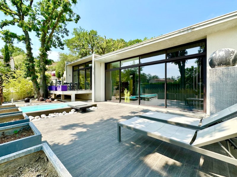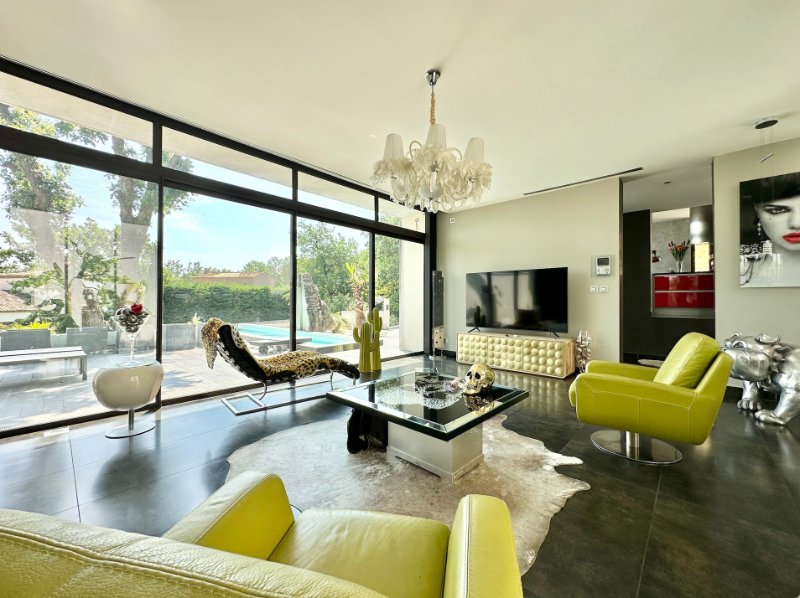 Christophe MARTIN du réseau immobilier SAFTI vous présente en EXCLUSIVITÉ sur la commune de ROCHEFORT-DU-GARD, à 10 minutes d'AVIGNON et de sa gare TGV, une habitation contemporaine aux prestations haut de gamme, située dans un quartier résidentiel et sécurisé. La maison, construite en 2011, en béton banché, développe environ 253 m2* sur environ 611 m2* de terrain. Elle possède de beaux espaces de réception, ouverts sur des terrasses et patios. Ses différences de niveaux et sa distribution en font une logement atypique. Séjour d'environ 70 m2, baies vitrées "grande hauteur" qui accentuent l'espace et l'ouverture sur les extérieurs. L'espace nuit propose 3 suites équipées de leur propre salle de bains / salle d'eau et dressing. Buanderie. Bureau. Garage d'environ 50 m2. A l'extérieur, un jardin avec bassin à débordement. La copropriété dispose également d'une grande piscine partagée. Côté technique : clim réversible en "gainable", vitres anti-effraction, arrosage auto, adoucisseur d'eau, assainissement tout à l'égout. Excellents diagnostics énergétiques, classée B. Les charges de copropriété inclues notamment : l'entretien des espaces verts, de la piscine ou le fonctionnement du portail auto sécurisé de la résidence... (*les informations présentes sur cette annonce ne sont pas contractuelles)