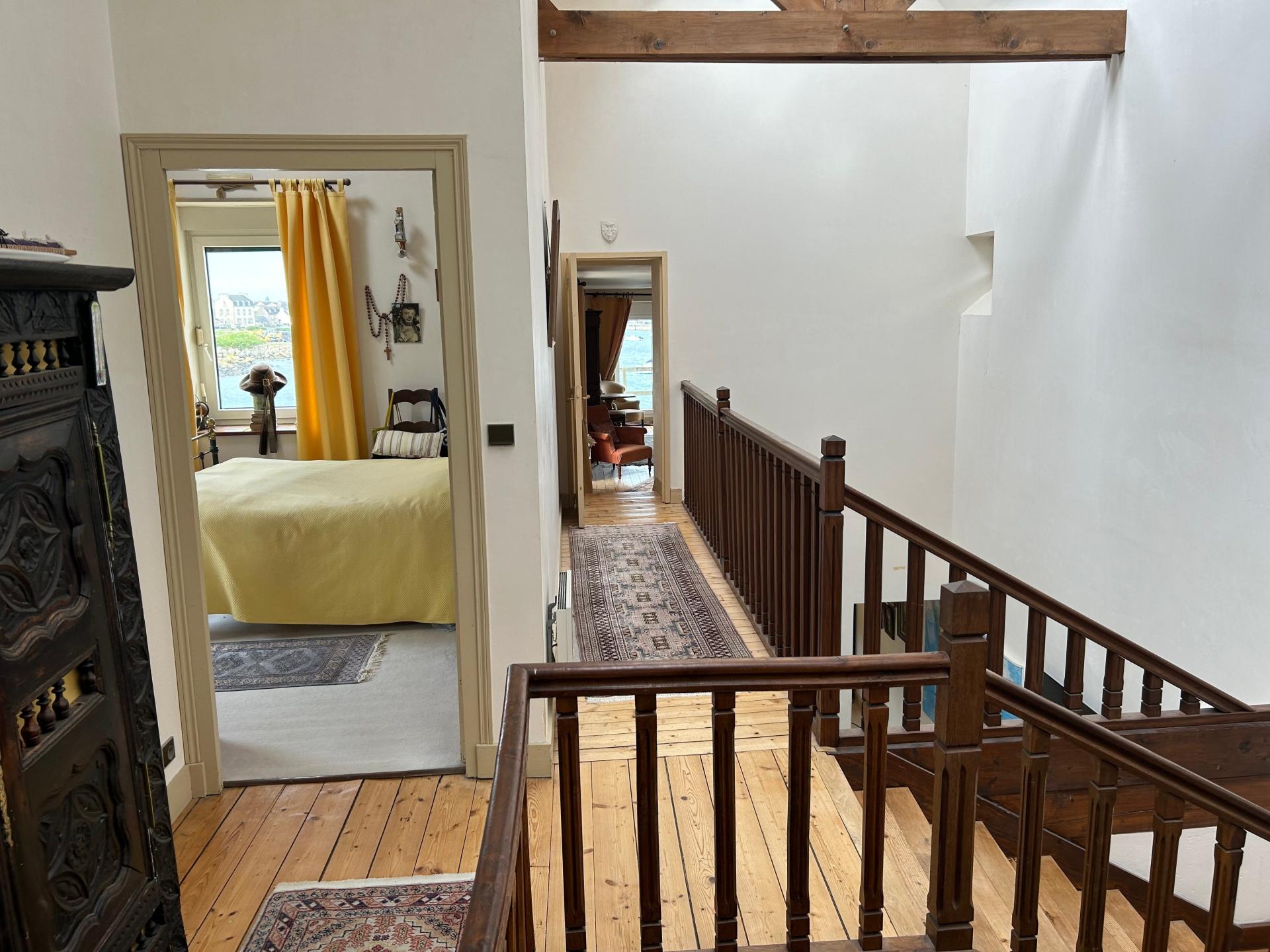 Maison d'architecte de 220 m2 au coeur de Roscoff cité corsaire. Cette demeure familiale baignée de lumière, exposée sud avec des déplafonnés sous charpente apparente, vous emportent dans des volumes agréables. Elle se compose au rdc, d'un hall spacieux, d'une chambre parental de 30 m2 avec salle d'eau et dressing, d'une pièce de vie (salon équipé d'un insert à bois, séjour, cuisine avec vue mer) de 58 m2. lorsque vous montez au 1er étage, vous découvrez 3 chambres spacieuses de 14 m2, dont deux ont un accès directe à une salle d'eau. Vous profiterez à cette étage d'un salon de détente de 22 m2 avec cette vue sur le vieux port. Au 3ème étage, le loft ou la dernière chambre de 22 m2 lumineux et une vue imprennable sur l'Ile de Batz. A l'extérieur vous pourrez profitez de la terrasse exposée Sud Ouest. Venez vite découvrir ce magnifique joyau