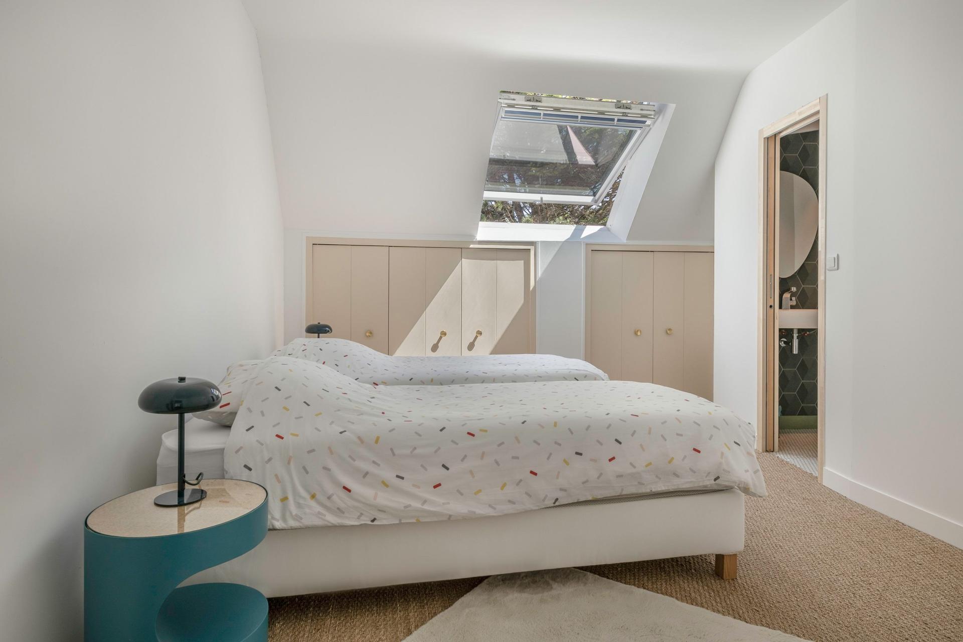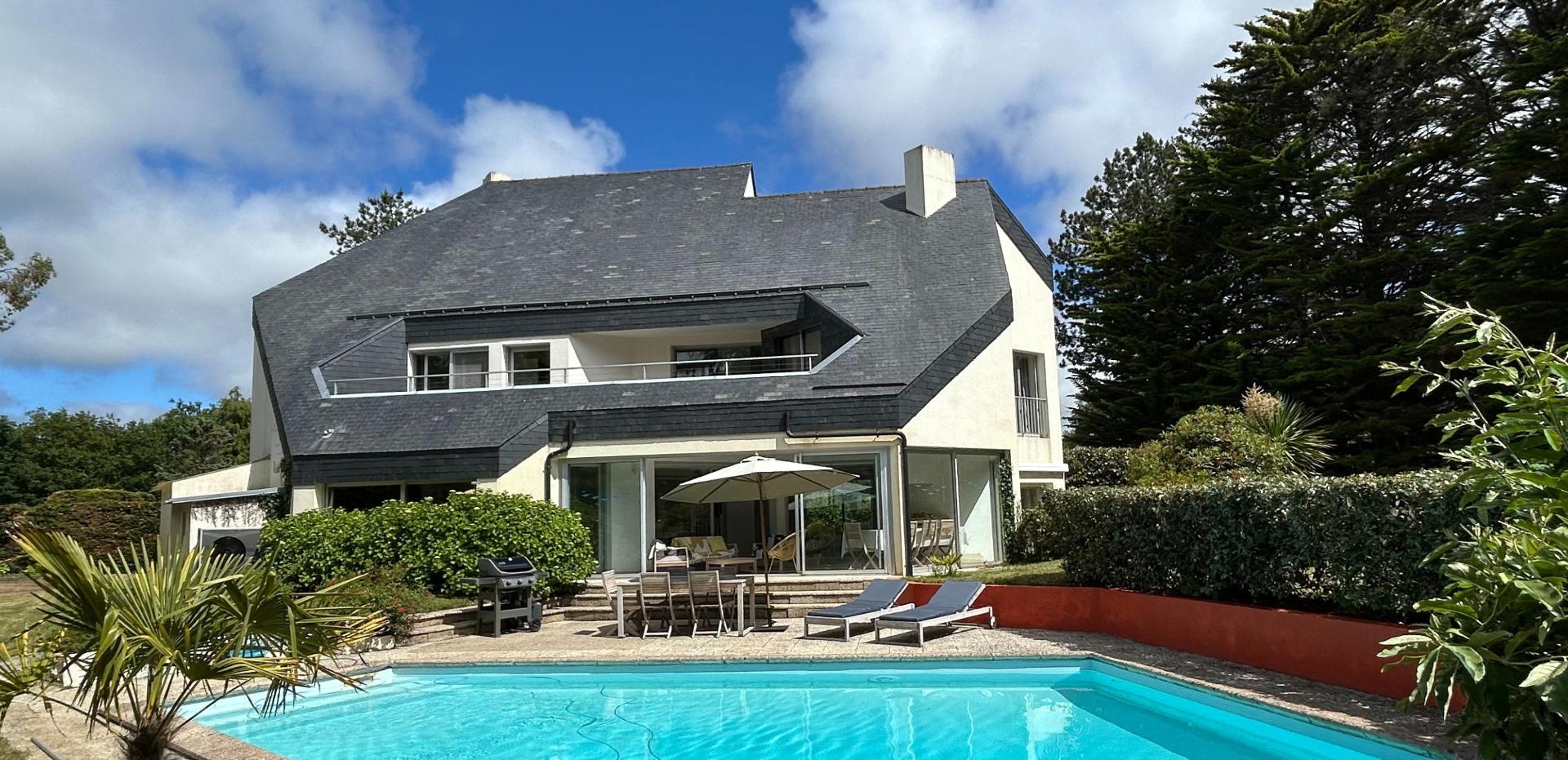 Située à Saint-André-des-Eaux , cette magnifique propriété offre un cadre de vie paisible et privilégié. Ce charmant quartier bénéficie d'un environnement verdoyant et calme, idéal pour les familles en quête de tranquillité. il offre également des espaces verts avoisinants, parfaits pour les activités en plein air. Cette maison d'architecte de 8 pièces, construite en 1974, se dresse sur une spacieuse parcelle de 2003 m². Avec ses 265 m² de surface habitable, Sa conception ingénieuse et ses vastes espaces de vie en font un lieu accueillant et chaleureux, idéal pour recevoir famille et amis. Un bien d'exception où modernité et charme se rencontrent, offrant un cadre de vie unique et recherché. Elle se compose de : • 3 suites élégantes pour 2 personnes chacune, • Une mezzanine avec couchage pour 2 personnes, • Une chambre d’appoint nichée dans le solarium, idéale pour un couchage supplémentaire. La vaste pièce de vie de 70 m² (salon et salle à manger) s’ouvre sur une véranda lumineuse avec vue et accès direct à la piscine chauffée (11x7 m), offrant un cadre de vie intérieur/extérieur rare. Les combles, aménageables sur 80 m² supplémentaires, permettent de personnaliser encore davantage ce bien d’exception.