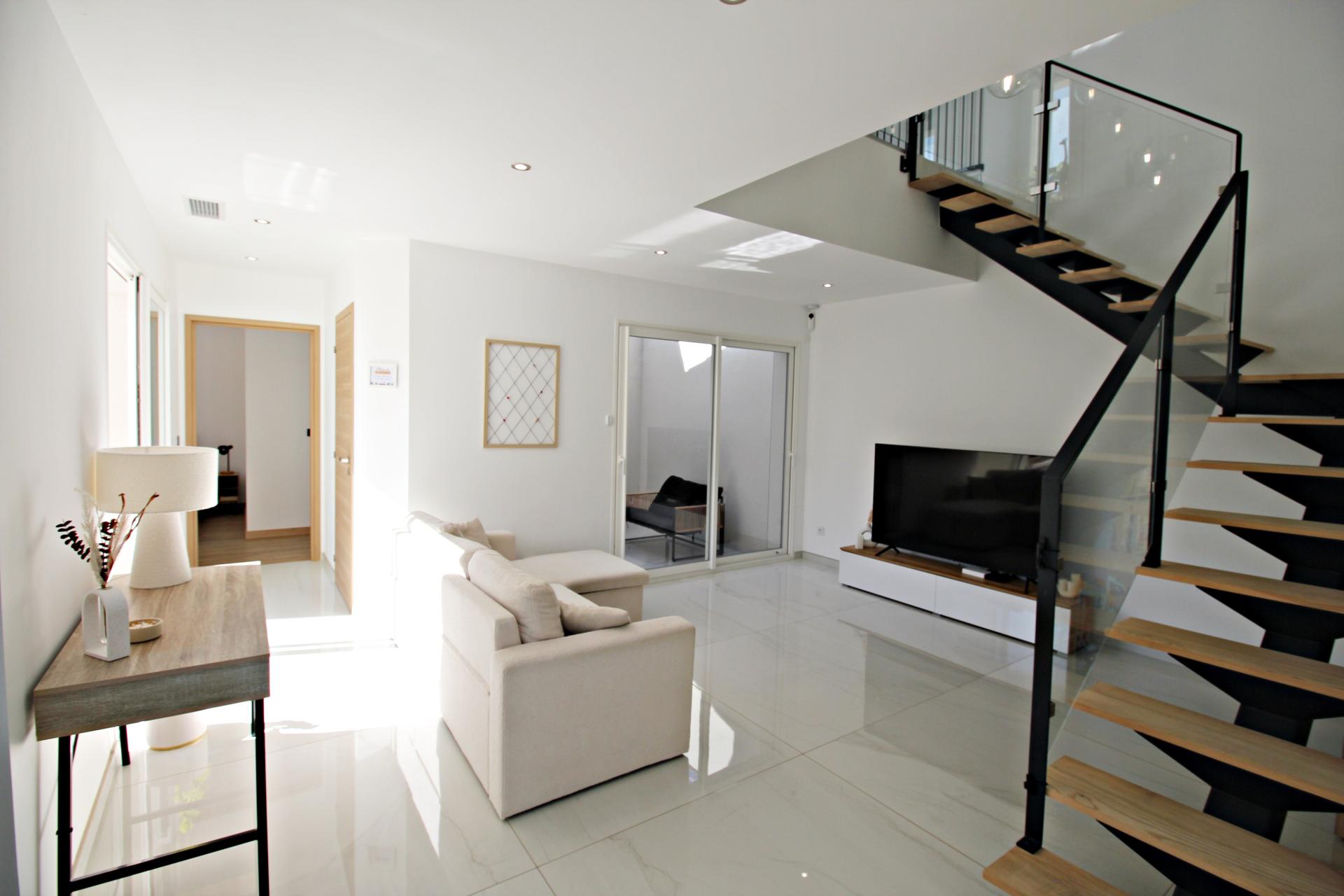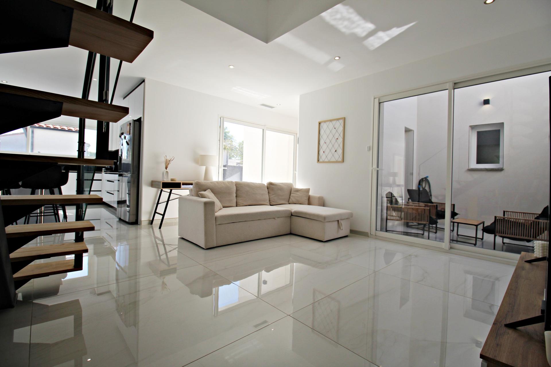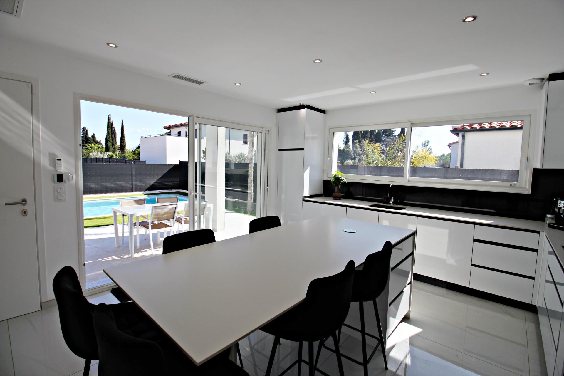 Idéalement situé, à proximité de toutes commodités, dans un quartier calme et à 5 minutes à peine des plages. Venez découvrir cette superbe maison d' architecte, très contemporaine et lumineuse, en 3 faces, réalisée avec de belles prouesses techniques, celle-ci se compose en rez-de chaussée d' une spacieuse cuisine équipée, offrant la vue sur une belle terrasse couverte où vous pourrez partager de bons moments de convivialités en famille ou entre amis, d' un salon offrant la vue sur un patio et une terrasse, d' un wc indépendant, d' une sublime suite parentale, composée d' un dressing et d' une salle d' eau avec douche à l' italienne et un wc. A l' étage desservie par un bel escalier, un hall entièrement vitré vous accueille, pouvant faire office de bureau, de plus celui-ci est équipé de rangement. Vous profiterez également de deux superbes suites parentales avec balcon, offrant une belle vue dégagée chacune, l' une équipé d' une salle de bain avec baignoire et wc, avec de grand placard, et l' autre avec une spacieuse salle d' eau avec douche à l' italienne et wc, avec de grands placards de rangements également. A cela s' ajoute un grand garage carrelé et isolé, d' une allée pouvant accueillir 2 véhicules, de 2 terrasses, un jardin et une sublime piscine maçonnée où vous pourrez vous rafraîchir . De très belles prestations s' offrent à vous, avec de beaux matériaux, fermeture centralisée, climatisation gainable, cumulus thermodynamique, avec des casquettes béton. A venir visiter sans plus tarder! elle n' attend plus que vous.
