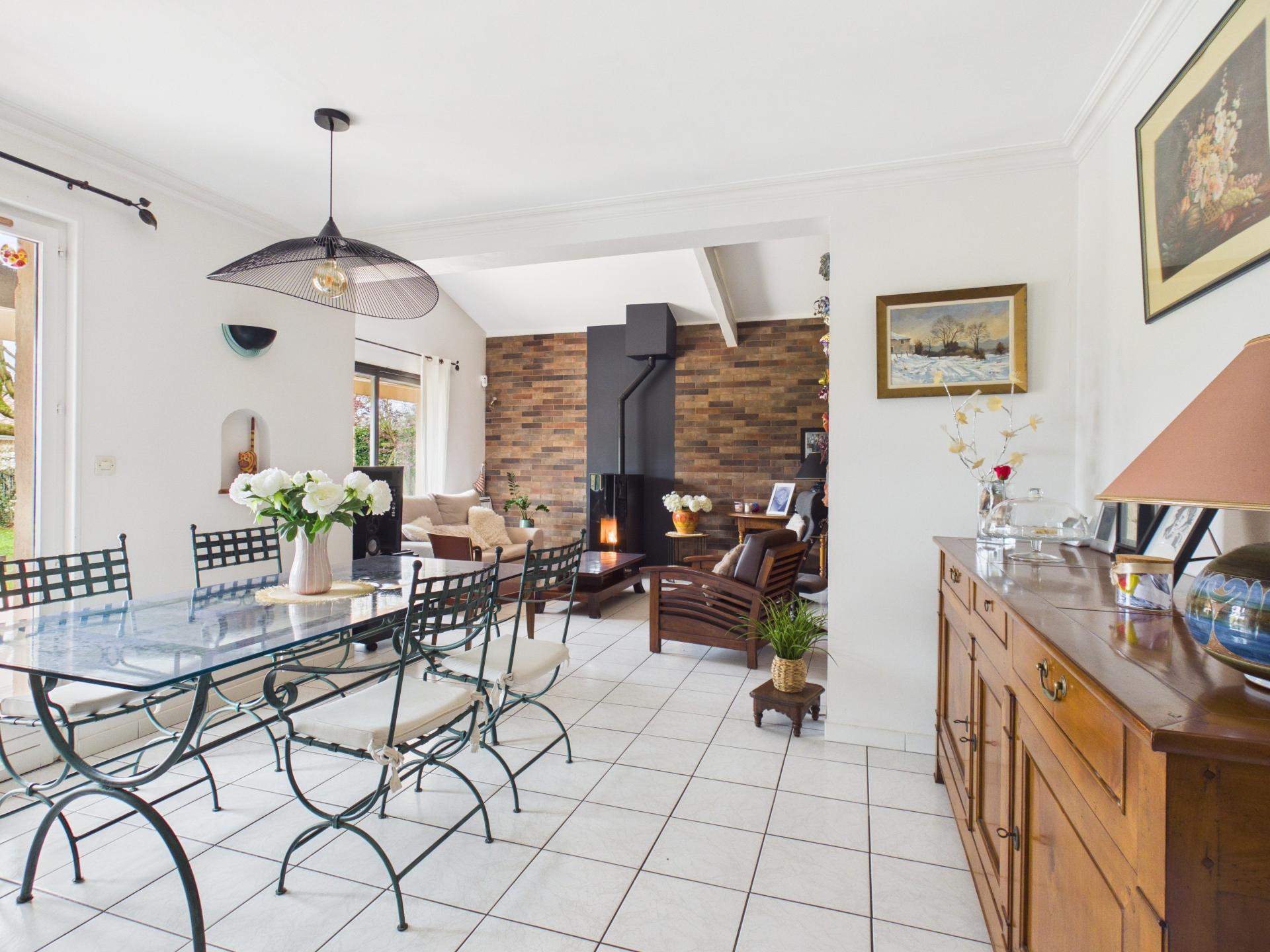 Située dans un environnement calme et apprécié, cette maison construite en 1991 développe environ 136 m² habitables répartis en 6 pièces. Elle se compose de 3 chambres, ainsi que d’une suite parentale au rez-de-chaussée, offrant une configuration idéale pour une vie de famille ou pour recevoir. La maison est implantée sur un terrain plat de 1 504 m², agréable et facile à entretenir. Vous pourrez profiter pleinement des beaux jours grâce à une piscine de 4,5 x 9 m avec fosse à plongeon de 1,80 m, ainsi que d’une belle terrasse extérieure équipée d’un rideau électrique. Côté équipements : Chauffage électrique complété par un poêle à granulés avec système de répartition de chaleur Production d’eau chaude par ballon Menuiseries en double vitrage bois et double vitrage aluminium dans le salon Maison raccordée au tout-à-l’égout (séparation eaux usées / eaux pluviales) Fibre installée Un garage double d’environ 43 m² vient compléter l’ensemble. De nombreux travaux ont été réalisés depuis 2021, ce qui permet aujourd’hui de profiter d’une maison très bien entretenue et prête à vivre. Un bien idéal pour ceux qui recherchent le calme, l’espace et un cadre de vie agréable. Pour plus d’informations ou organiser une visite, n’hésitez pas à me contacter.