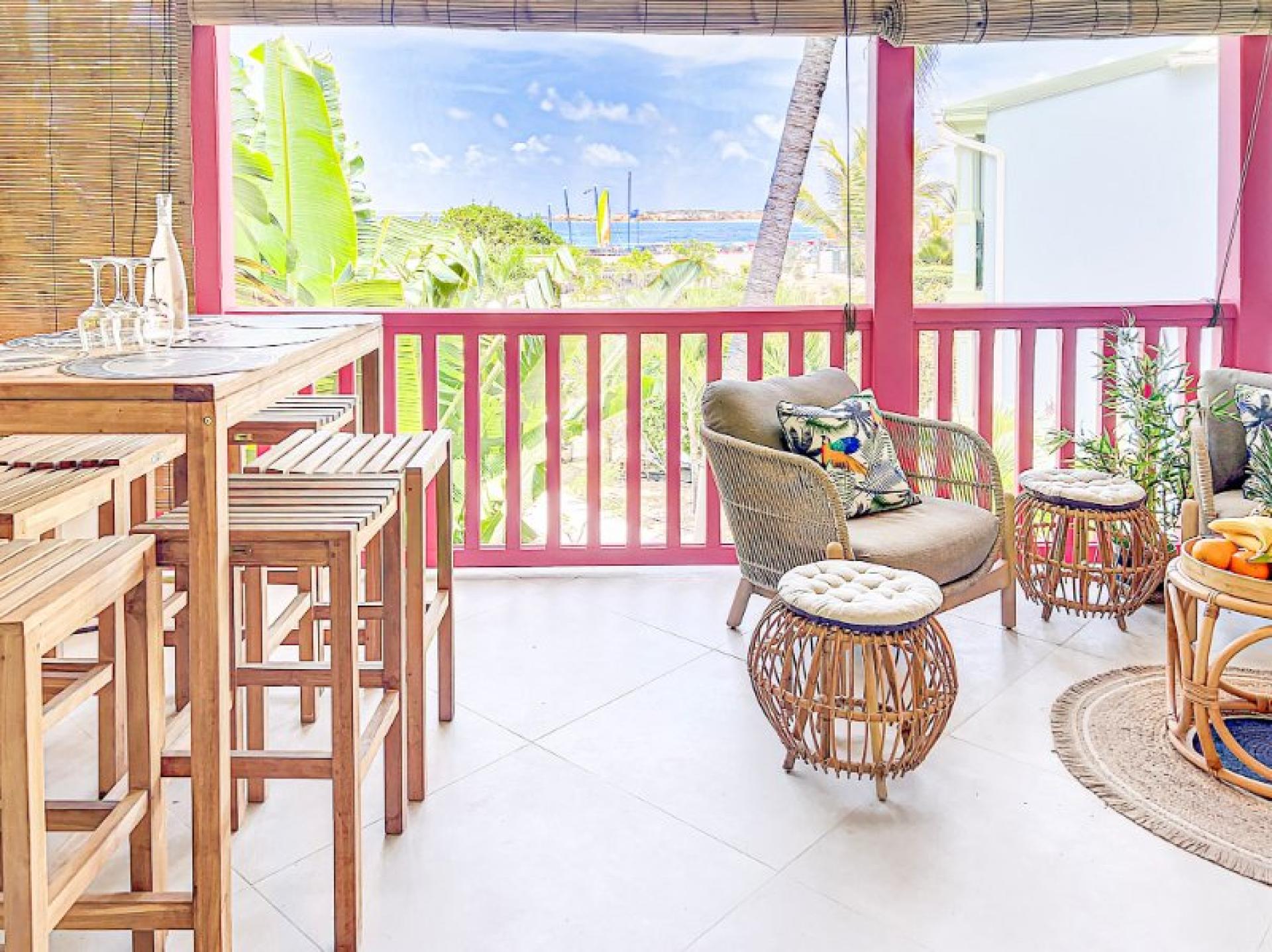 EXCLUSIVITÉ SAFTI : Saint Martin, Orient baie, FRANÇOIS RIBAUT vous propose cette pépite en bord de mer sur le secteur recherché de la baie orientable.<br/>La résidence est très prisée avec ses deux piscines et son accès plage immédiat.<br/>Le bien fait 170 M2 et la vue sur Orient baie est magnifique.<br/>Le premier palier est composé de deux chambres, une SDE, un large salon avec sa cuisine ouverte puis la terrasse et sa vue de folie sur la baie orientale.<br/>A l'étage deux chambres vue mer et deux SDE. Chaque unité dispose de son dressing + coin bureau.<br/>L'appartement est vendu meublé et équipé, prêt pour la location saisonnière.<br/>Le bien est autonome en eau avec 2 citernes de 600 L chacune.<br/>Coup de cœur assuré !<br/>