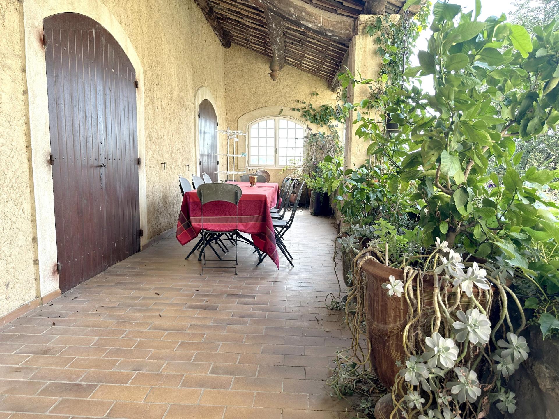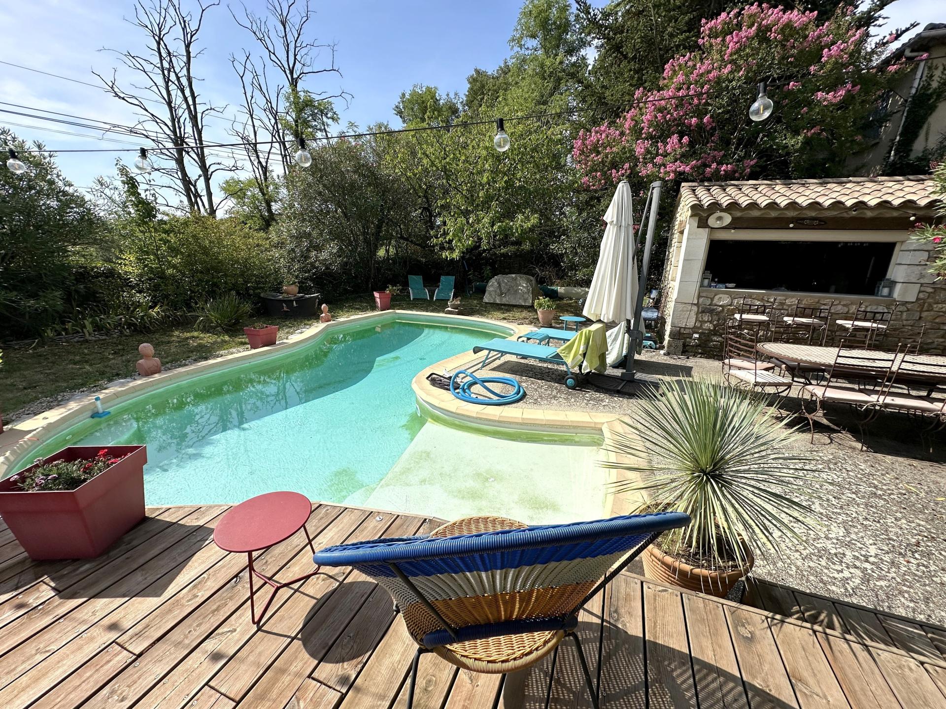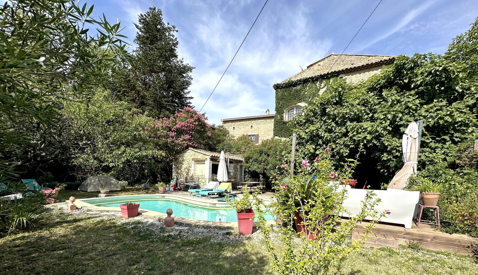 What if you could realize your dream of living surrounded by nature, without sacrificing comfort? Located in the heart of the Gard countryside in the town of Saint-Paulet-de-Caisson, which combines dynamism, conviviality, and tourism. In a bucolic, peaceful, and privileged setting, this magnificent 18th-century stone farmhouse of approximately 220 m² will charm you with its authenticity, its potential, and its breathtaking views of Mont Ventoux, the Ardèche, Gard, and Vaucluse regions, as well as the surrounding vineyards. The farmhouse is divided into two distinct living spaces, perfect for welcoming family and friends, or for running a B&B or guesthouse business. A simple conversion allows you to combine the two accommodations if you wish. This 10-room, 5-bedroom residence, totaling 220 m² of living space, evokes the charm of yesteryear with its stone walls and canal tile roof. The interior is divided into two distinct parts: The first part, which can be redesigned according to your tastes, includes a separate kitchen, a living room, three bedrooms, a bathroom, a separate toilet, and a beautiful, large terrace for al fresco dining. an attic with an area of approximately 80 m² can be converted. The other, fully renovated part will delight you with its comfort and brightness, a magnificent veranda overlooking the garden where you can enjoy relaxing moments in summer and winter, a beautiful living room, a fully equipped kitchen, a toilet, and a laundry room. Upstairs, you will find two bedrooms, an office, and a bathroom with a toilet. Amenities include air conditioning, PVC double glazing, a pellet fireplace, and an open kitchen, offering all modern comforts in a warm, rustic setting. An exceptional exterior, its 3,500 m² plot, fully wooded and private, offers shaded areas, relaxation areas, and a unique atmosphere. A splendid swimming pool with its summer kitchen is ideal for fully enjoying the mild sunny days. Cellars and garages with potential for development. Easy access to amenities just a few minutes away. What we love: * The authentic charm of the stone, * The absolute tranquility and panoramic view, * The potential for country living or a tourism project, * A generous plot of land, ideal for relaxation or gardening/eco-tourism projects. Want to visit this unique place? Contact me!