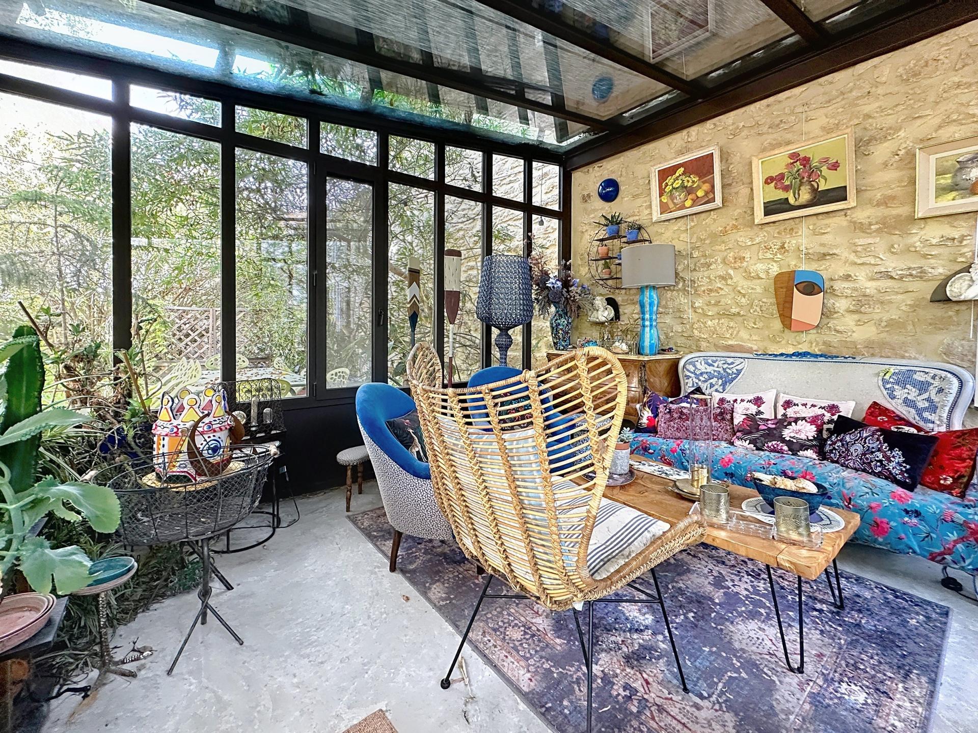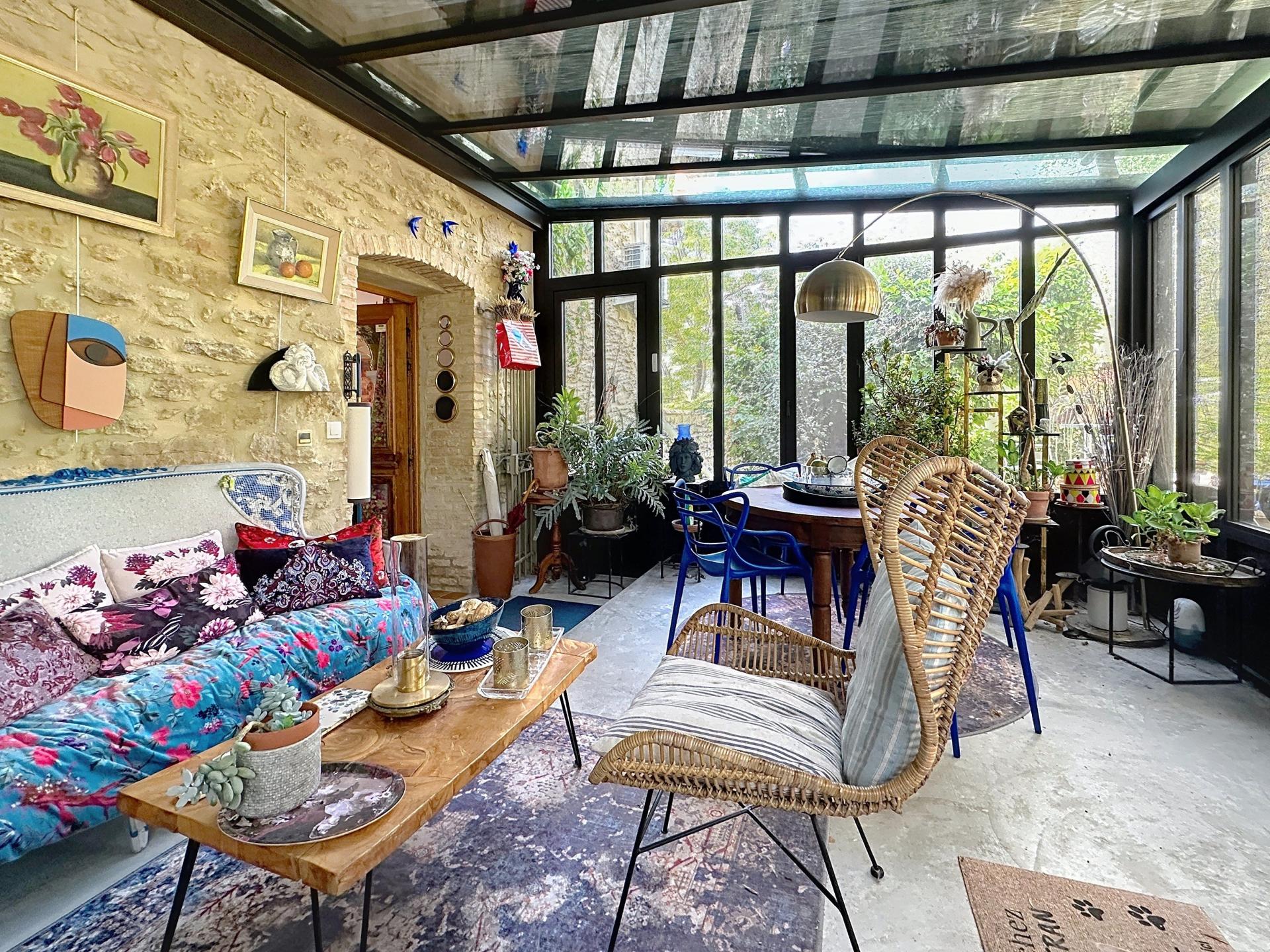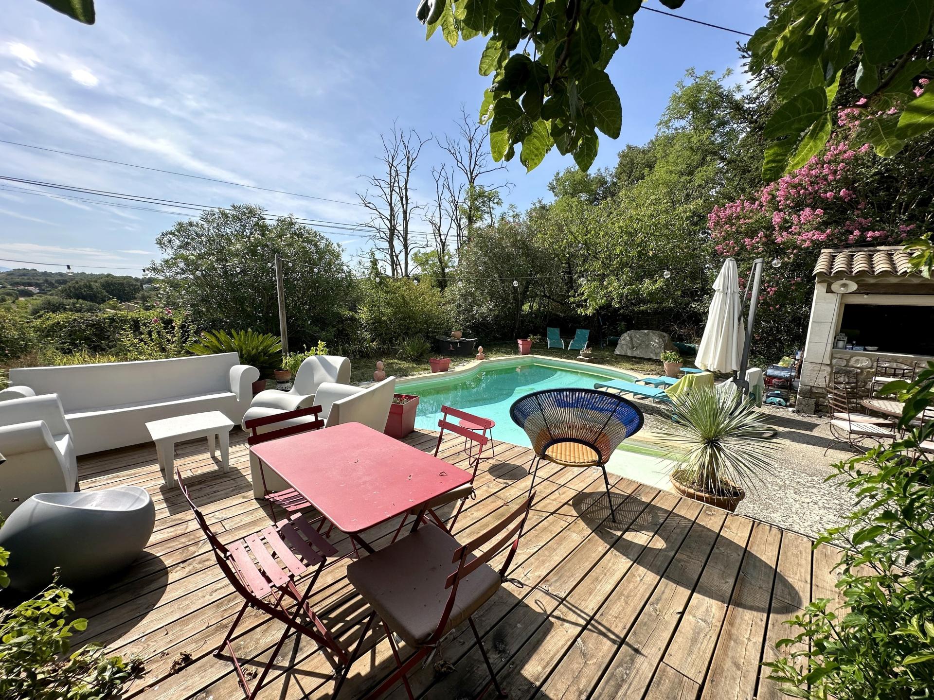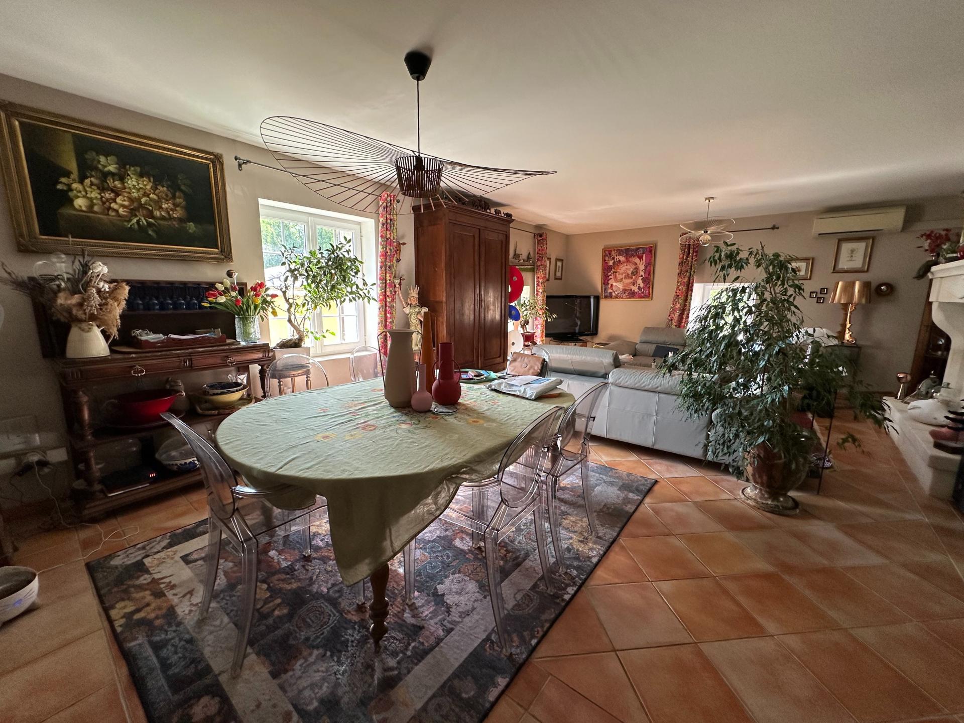 What if you could realize your dream of living surrounded by nature, without sacrificing comfort? Located in the heart of the Gard countryside in the town of Saint-Paulet-de-Caisson, which combines dynamism, conviviality, and tourism. In a bucolic, peaceful, and privileged setting, this magnificent 18th-century stone farmhouse of approximately 220 m² will charm you with its authenticity, its potential, and its breathtaking views of Mont Ventoux, the Ardèche, Gard, and Vaucluse regions, as well as the surrounding vineyards. The farmhouse is divided into two distinct living spaces, perfect for welcoming family and friends, or for running a B&B or guesthouse business. A simple conversion allows you to combine the two accommodations if you wish. This 10-room, 5-bedroom residence, totaling 220 m² of living space, evokes the charm of yesteryear with its stone walls and canal tile roof. The interior is divided into two distinct parts: The first part, which can be redesigned according to your tastes, includes a separate kitchen, a living room, three bedrooms, a bathroom, a separate toilet, and a beautiful, large terrace for al fresco dining. an attic with an area of approximately 80 m² can be converted. The other, fully renovated part will delight you with its comfort and brightness, a magnificent veranda overlooking the garden where you can enjoy relaxing moments in summer and winter, a beautiful living room, a fully equipped kitchen, a toilet, and a laundry room. Upstairs, you will find two bedrooms, an office, and a bathroom with a toilet. Amenities include air conditioning, PVC double glazing, a pellet fireplace, and an open kitchen, offering all modern comforts in a warm, rustic setting. An exceptional exterior, its 3,500 m² plot, fully wooded and private, offers shaded areas, relaxation areas, and a unique atmosphere. A splendid swimming pool with its summer kitchen is ideal for fully enjoying the mild sunny days. Cellars and garages with potential for development. Easy access to amenities just a few minutes away. What we love: * The authentic charm of the stone, * The absolute tranquility and panoramic view, * The potential for country living or a tourism project, * A generous plot of land, ideal for relaxation or gardening/eco-tourism projects. Want to visit this unique place? Contact me!