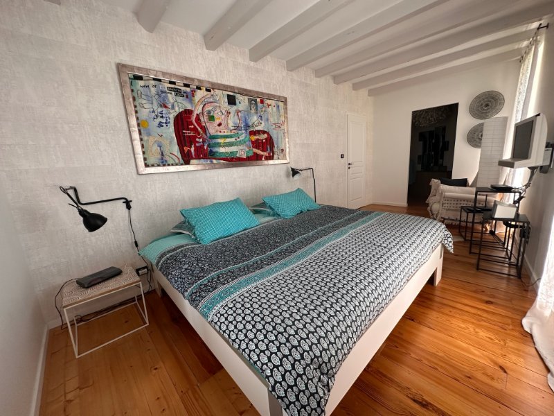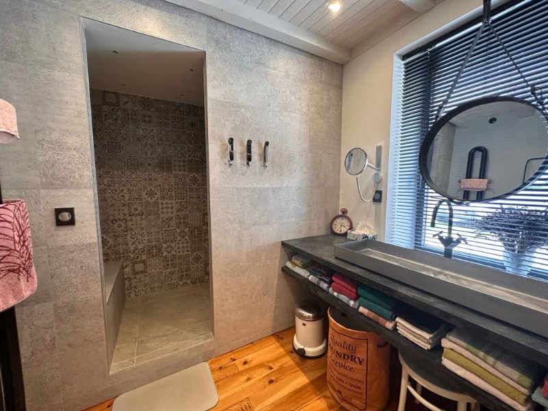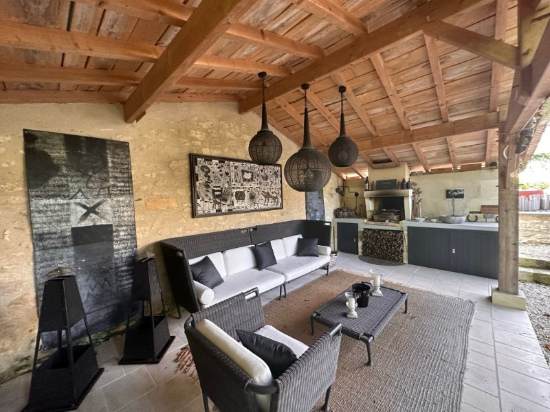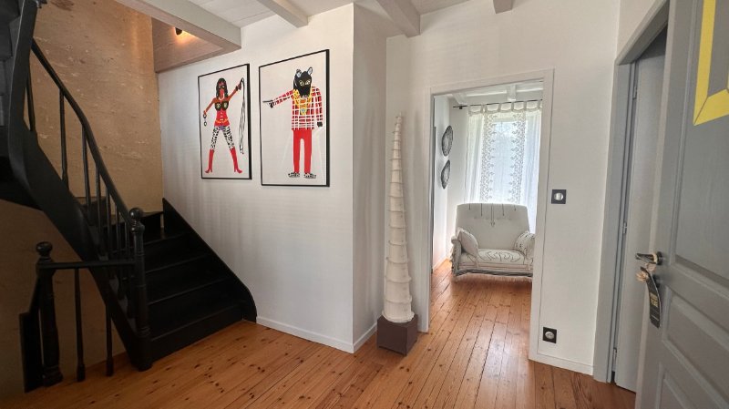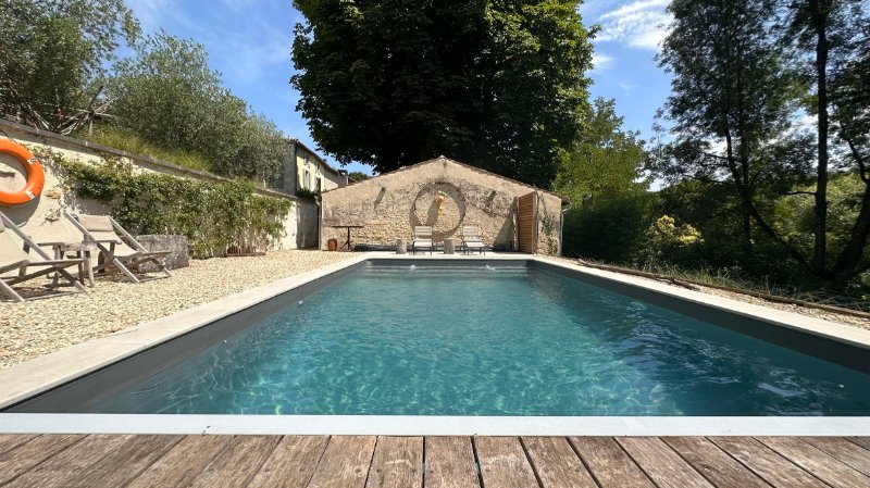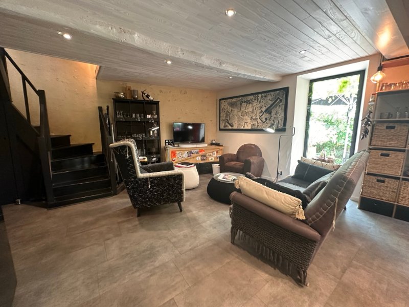 Privileged location for this architect-designed house in Saint Sauvant, one of the most beautiful villages in Charente Maritime. This recently renovated, fully-automated house will delight fans of classical build homes, design and nature. On the garden level, a large living room with a fitted kitchen opens onto a south-facing terrace. First floor: entrance hall, bedroom with dressing room, WC and shower room. On the top floor, a living room doubles as an office and additional bedroom. Outside, the heated swimming pool and pool house invite warm summer evenings by the pool. The 2000 m2 garden offers a magnificent view over the village, with no overlooked areas. The garage provides easy, secure parking. This property is sold in its entirety with its quality art furniture. Video of the property on request.