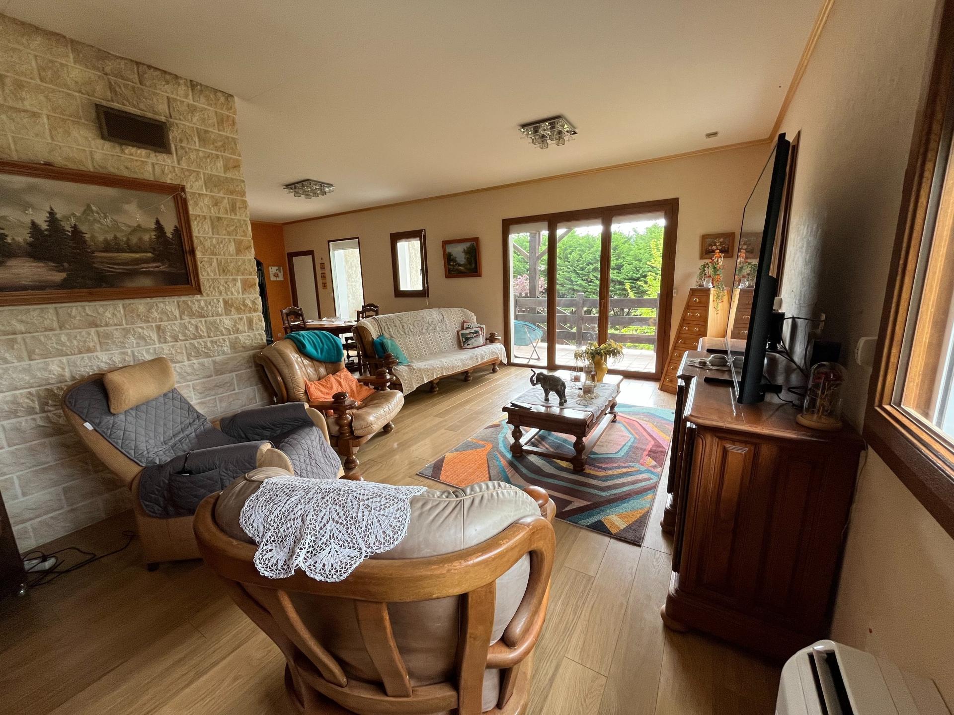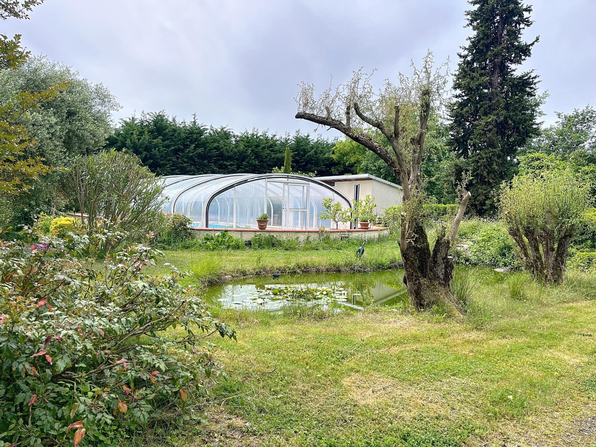 Located in a peaceful and green setting, this 1980s architect-designed house offers generous living space, including a living-dining room, kitchen, 3 bedrooms, an office, bathroom, separate toilet, and a large 87 m² veranda. The 172 m² basement offers multiple possibilities (garage, workshop, storage...). Outside: over 10,000 m² of land with fruit trees, orchard, covered pool, and a wellness area with spa and sauna. A rare property with great volumes, not to be missed. More information available on request.
