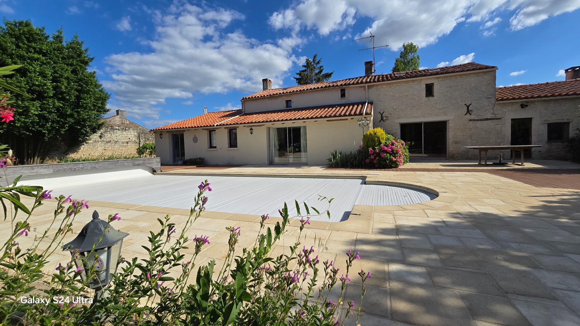 Située à Sainte-Gemme-la-Plaine ,à proximité de l'autoroute et de Luçon, 30 minutes des plages 45 minutes de la Rochelle. Proche de toutes commodités Fabrice DEZAMY vous propose cette jolie propriété, bénéficiant du charme de la pierre et offrant un cadre de vie agréable avec de beaux volumes. Son exposition Sud-Ouest promet également des espaces extérieurs lumineux et chaleureux, idéaux pour profiter du jardin et de la piscine chauffée À l'intérieur, on découvre une entrée spacieuse menant à une vaste salle à manger et un séjour lumineux, agrémenté d'une cheminée. La cuisine équipée offre un espace fonctionnel, tandis que les cinq chambres dont deux situées au RdC offrent confort et intimité. Les différentes salles de bain avec baignoire, douche cabine, et lavabos répondent aux besoins de toute la famille, complétant ainsi cette maison alliant charme et praticité. A l'extérieure des dépendances en garage et atelier le tout sur un terrain clos et arboré d'environ 2700m². Les plus: produit rare en pierre et très bien situé dans la commune, pompe de piscine et filtration refaite à neuf, potentiel d'aménagement. Les moins: quelques travaux à prévoir de rafraichissement et d'amélioration en rénovation.