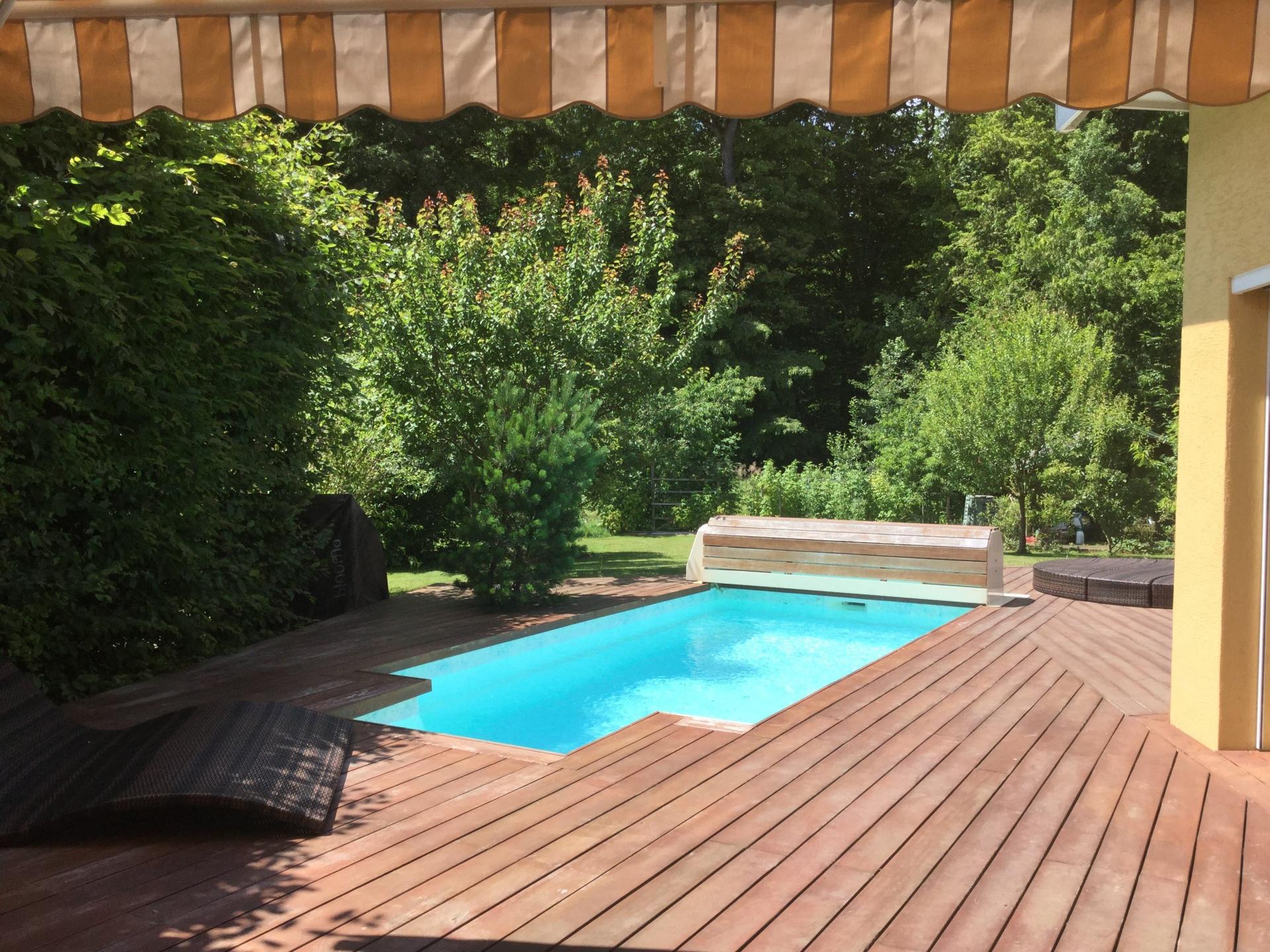 Nichée dans une impasse paisible à l'orée de la forêt, cette villa spacieuse de 220 m² se dévoile comme un havre de tranquillité, tout en étant à seulement 10 minutes de Burnhaupt et 20 minutes de Mulhouse et Belfort. Idéalement située à proximité des grands axes routiers, des commerces et des écoles, elle offre le meilleur des deux mondes : la sérénité de la nature et la commodité de la vie urbaine. Caractéristiques de la Propriété : Rez-de-Chaussée Lumineux : L’entrée chaleureuse mène à une grande cuisine équipée, ouverte sur un spacieux salon/séjour baigné de lumière. Ce niveau comprend également un bureau, un cellier et un WC. Les espaces de vie communiquent directement avec une terrasse en bois de 50 m², idéale pour des moments de détente, qui surplombe une piscine chauffée et un jardin verdoyant. Deux abris de jardin et une belle cuisine d’été complètent cet espace extérieur, parfait pour recevoir. Étage Privatif : À l’étage, vous découvrirez 3 chambres, dont une suite parentale élégante dotée d’une grande salle d’eau équipée et d’un dressing. Les deux autres chambres bénéficient également d'une salle d’eau privative. Un WC supplémentaire et une salle de sport équipée d’un SPA offrant une vue panoramique sur la forêt viennent parfaire ce niveau, créant un espace de bien-être inégalé. Sous-Sol Aménagé : Avec une superficie impressionnante de 150 m², le sous-sol comprend une pièce aménagée, une cave, un débarras, une buanderie, un atelier et un grand garage pouvant accueillir jusqu'à 3 voitures. Confort Écologique : Pour garantir un confort optimal en hiver, la maison est équipée d’un système de géothermie verticale avec pompe à chaleur, alliant écologie et économies d’énergie. Cette villa rare, alliant confort moderne et cadre naturel privilégié, est une opportunité à saisir rapidement ! Ne manquez pas la chance de vivre dans ce cadre idyllique où chaque jour rime avec tranquillité et bien-être.