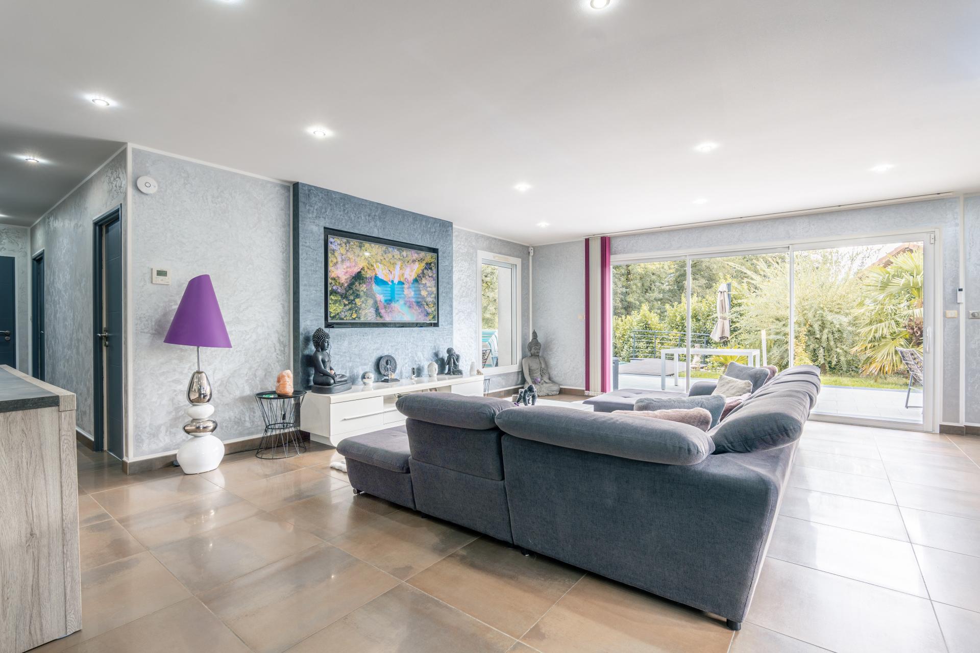 Nouvelle EXCLUSIVITE Laurent BONNET Immobilier by Safti SEYSSEL HAUTE SAVOIE. La Suisse à Proximité immédiate! Gare ligne Lyon-Geneve Au calme, venez découvrir cette magnifique villa de plain pied de 143 m2 à l'état irréprochable et aux prestations haut de gamme, sécurisée connectée et climatisée. Elle est composée d'un vaste espace à vivre séjour/superbe cuisine équipée au superbe sol avec de grandes baies vitrées donnant accès à un espace terrasse/piscine de près de 100 m2 de belle facture, 3 belles chambres (possibilité d'en aménager une 4ème). Mais ce n'est pas tout, en sous sol, vous bénéficiez de près de 80 m2 supplémentaires de garage avec coin atelier, idéal pour amateurs de voitures ou de motos.... Une vraie maison à vivre....A visiter rapidement!