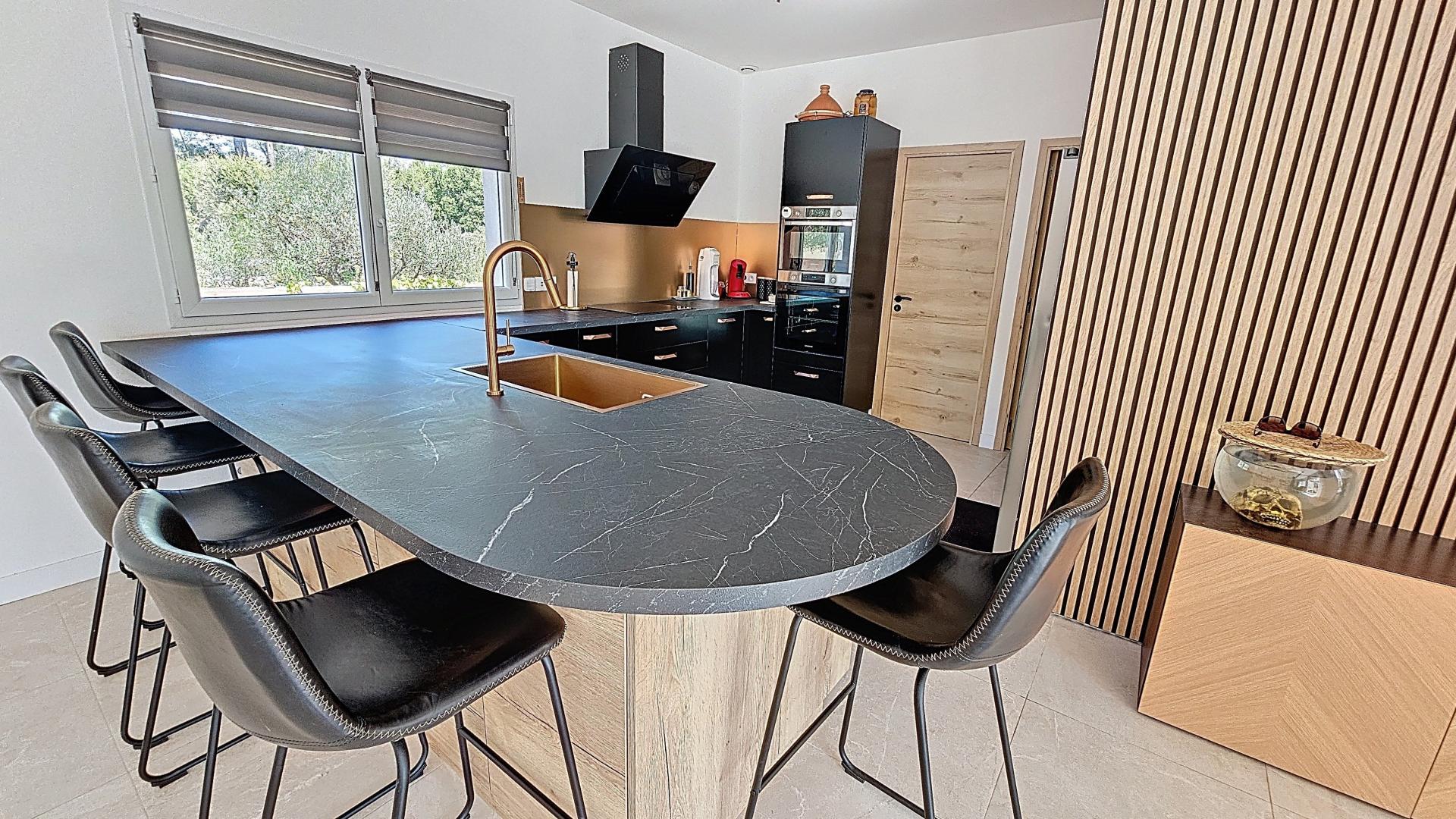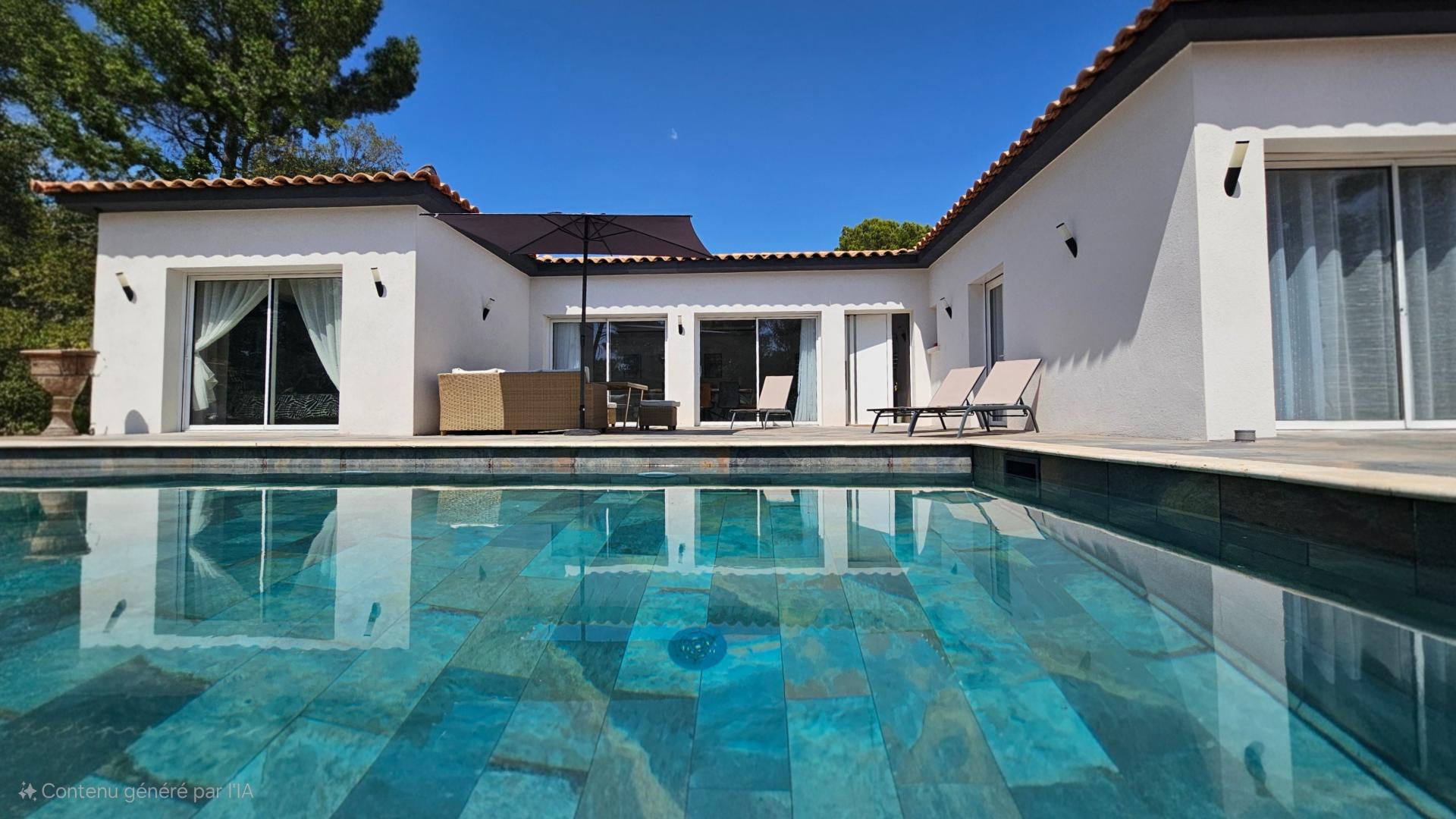 Nestled in the heart of Provence, this outstanding newly built villa, completed in 2025, perfectly combines modern elegance with premium features. Set on a fully enclosed, beautifully landscaped 1,590 m² plot, the property offers the rare privilege of a brand-new home—without the hassle of building it yourself. As soon as you enter, you’ll be captivated by a stunning 64 m² open-plan living space, filled with natural light. It includes a welcoming lounge and a fully equipped designer kitchen, enhanced by a luminous ceiling that creates a warm and sophisticated atmosphere. The villa features five bedrooms, including a luxurious master suite with a spacious walk-in dressing room and a private bathroom boasting both a walk-in shower and a bathtub. A second full bathroom and a practical utility room complete the layout. High-quality materials have been carefully selected throughout. Comfort is guaranteed year-round with reversible ducted air conditioning, while a sleek ethanol fireplace adds a cozy touch. The entire home is equipped with smart home automation for effortless control of lighting, heating, and more. Outdoors, you’ll fall in love with the magnificent 8x5m Bali stone swimming pool, perfect for relaxing under the southern sun in total privacy. A rare gem where luxury, comfort, and tranquility meet in one of Provence’s most enchanting settings. A must-see property for discerning buyers.