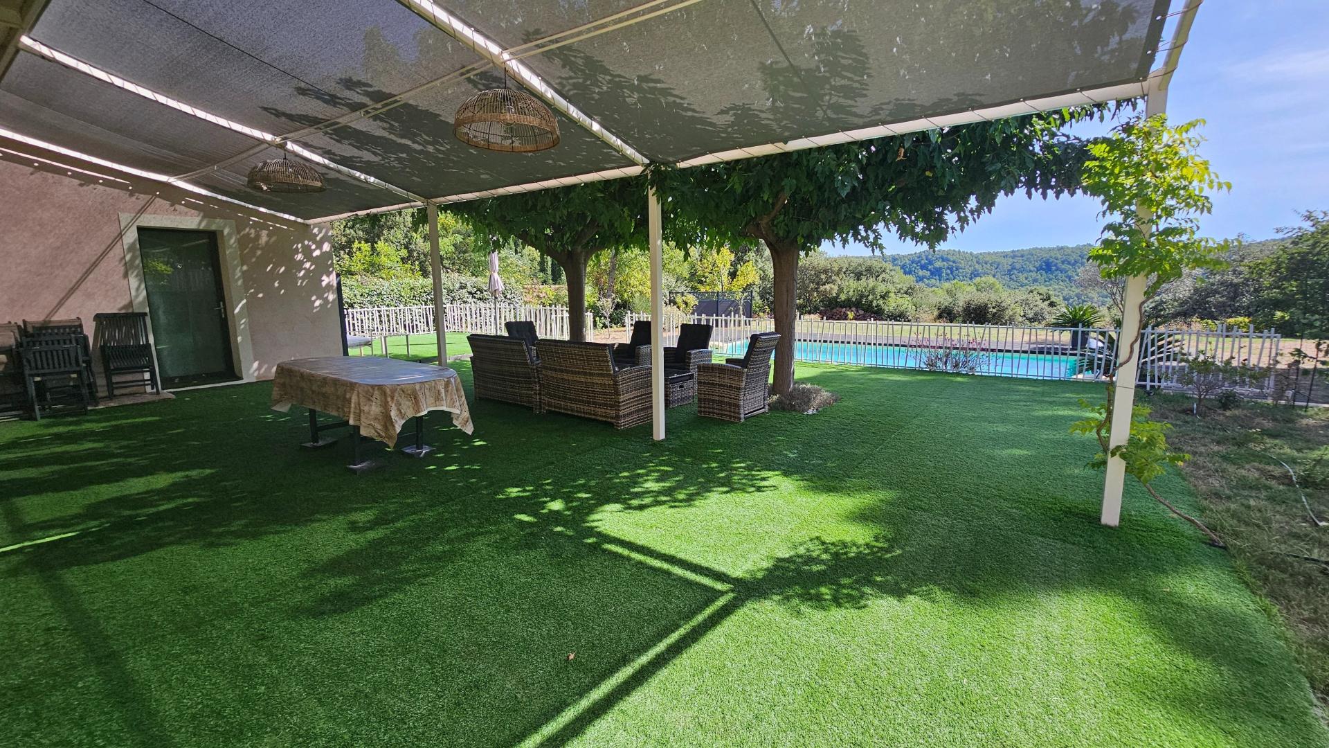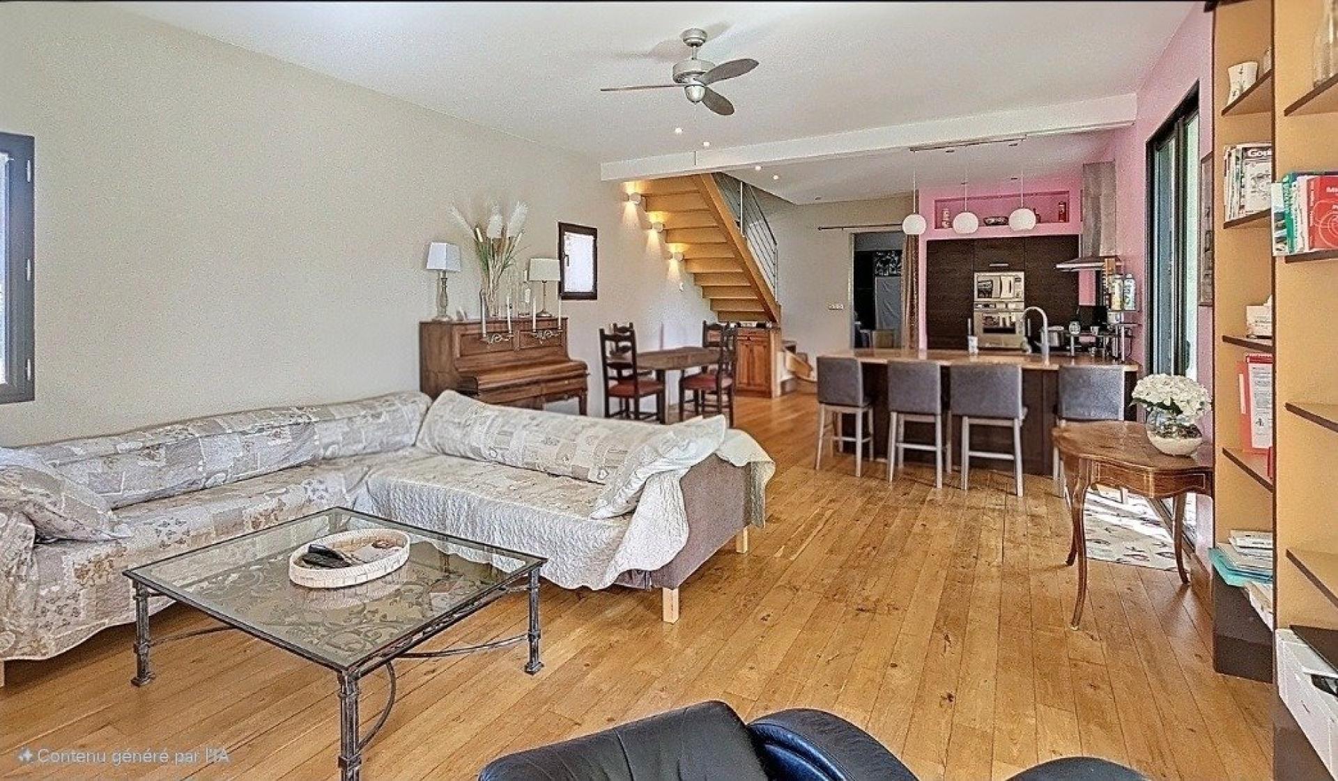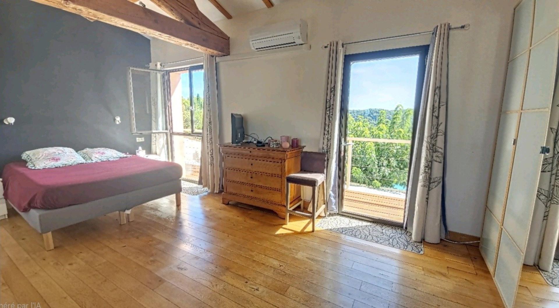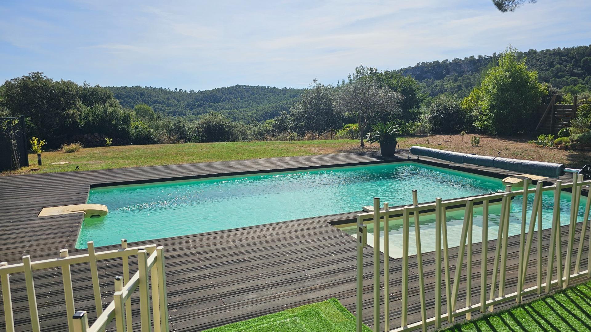 Ideally located at the end of a quiet cul-de-sac, in a peaceful, green setting, this elegant 165 m² home (140 m² plus a 25 m² guest house) offers generous proportions, quality finishes, and exceptional natural light. The ground floor opens onto a spacious living area with lounge and open-plan kitchen, enhanced by a beautiful double-height ceiling. The space flows seamlessly to a large terrace with pergola, boasting unobstructed, commanding views of the 10 m × 5.5 m pool and the surrounding hills. An inviting entrance hall with walk-in closet, along with a bedroom featuring its own shower room, completes this level. Upstairs, two large bedrooms—each with a private shower room and access to a private terrace—**offer a tranquil retreat. To complement the main residence, a detached guest house provides ideal accommodation for visiting family and friends or the possibility of a rental income opportunity. Additional features include a laundry room/workshop and ample storage throughout. A truly unique property that combines modern comfort with an exceptional natural setting—a must-see.