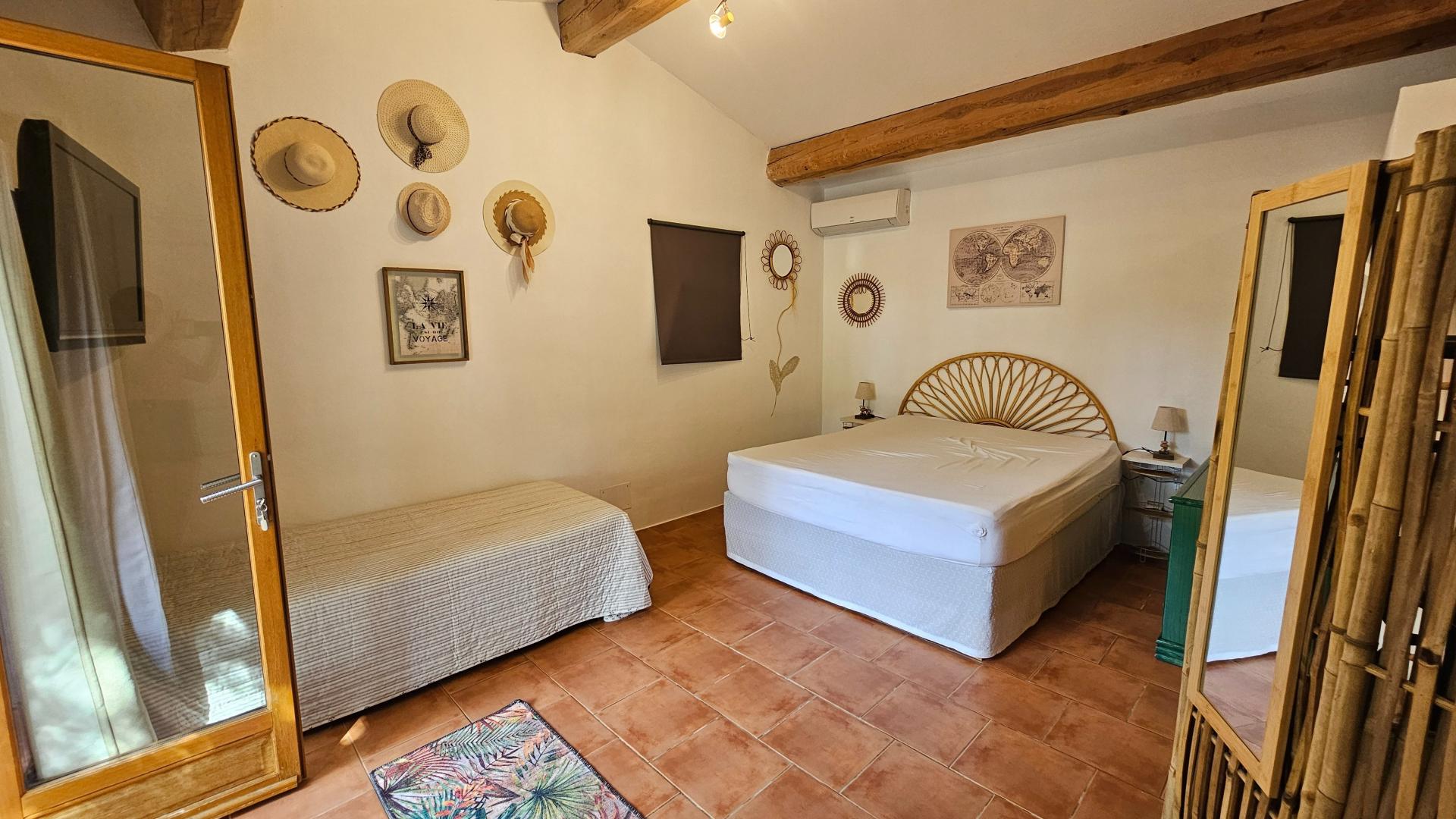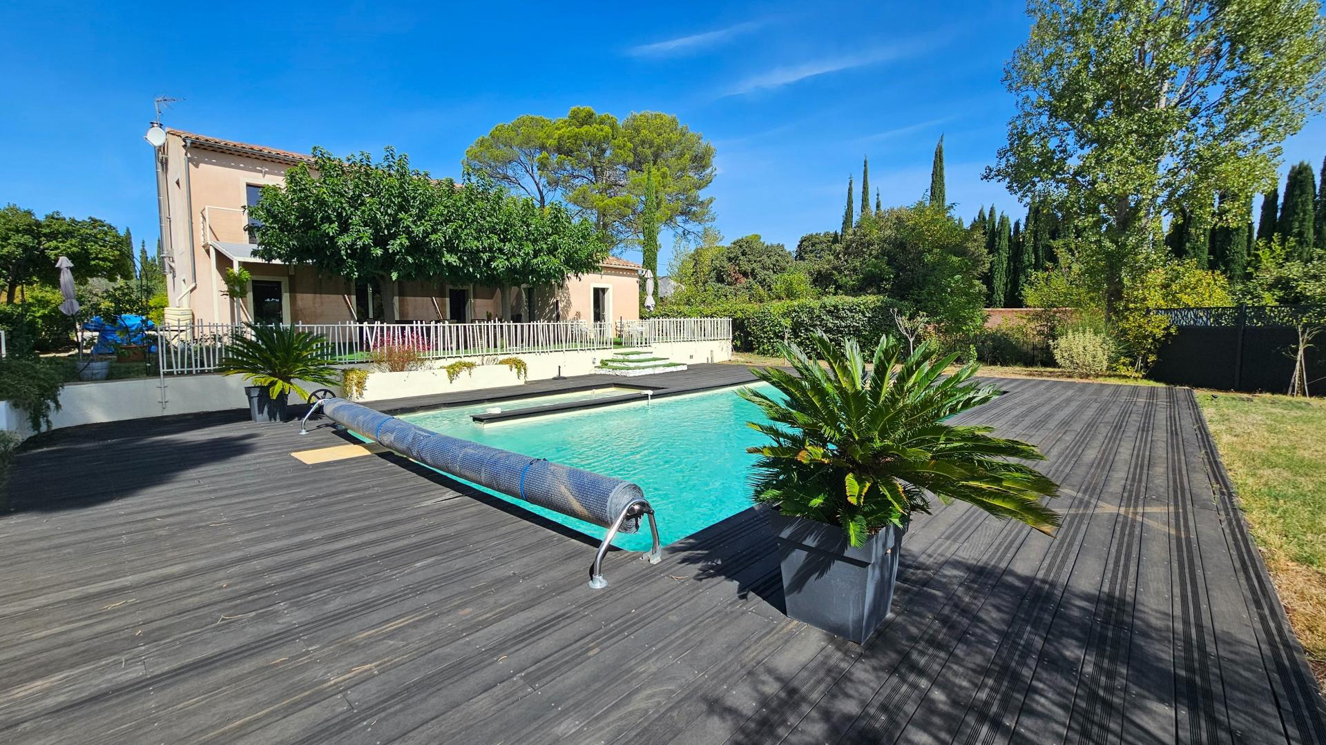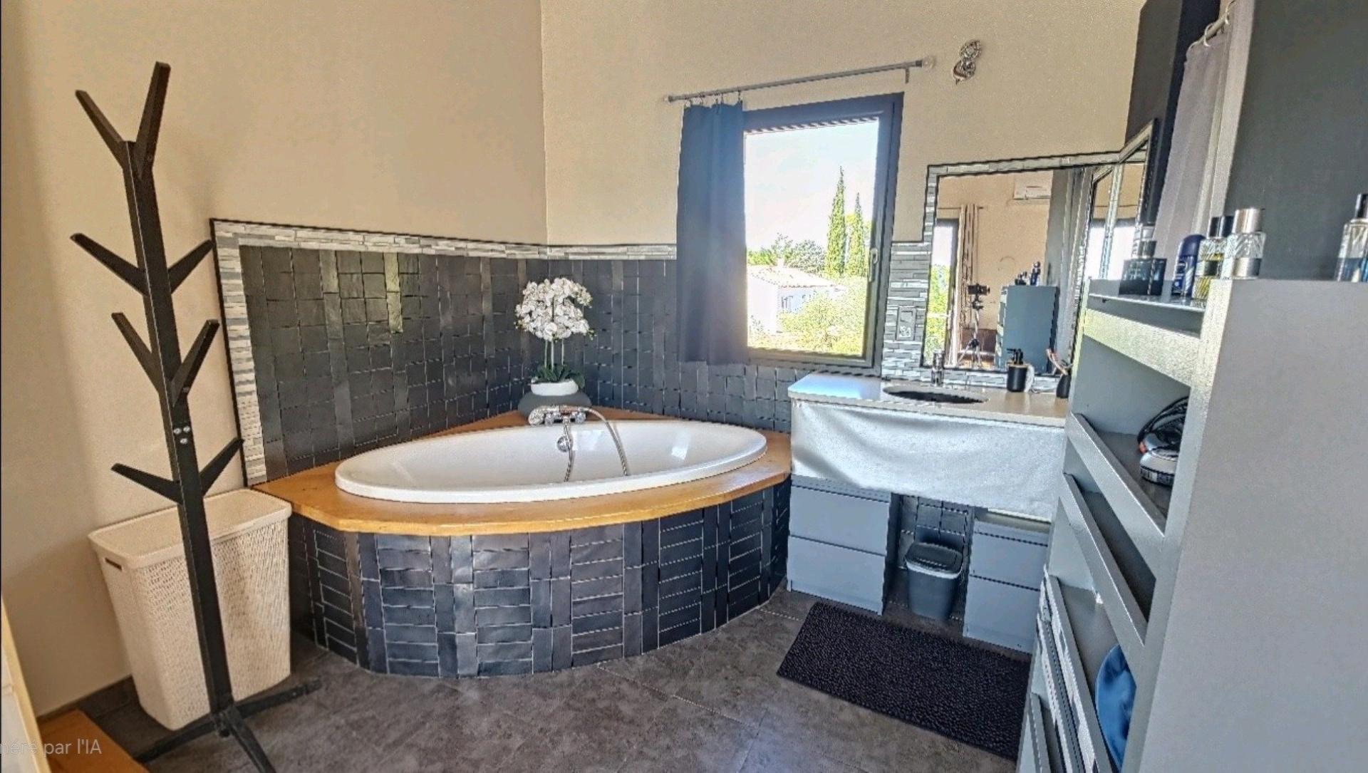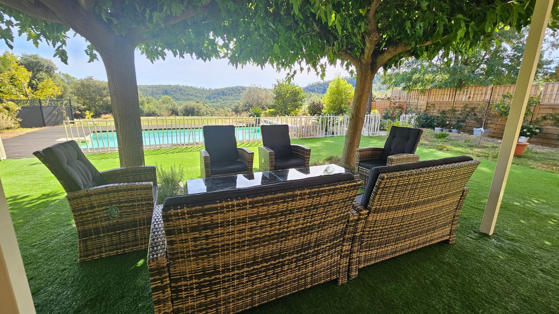 Ideally located at the end of a quiet cul-de-sac, in a peaceful, green setting, this elegant 165 m² home (140 m² plus a 25 m² guest house) offers generous proportions, quality finishes, and exceptional natural light. The ground floor opens onto a spacious living area with lounge and open-plan kitchen, enhanced by a beautiful double-height ceiling. The space flows seamlessly to a large terrace with pergola, boasting unobstructed, commanding views of the 10 m × 5.5 m pool and the surrounding hills. An inviting entrance hall with walk-in closet, along with a bedroom featuring its own shower room, completes this level. Upstairs, two large bedrooms—each with a private shower room and access to a private terrace—**offer a tranquil retreat. To complement the main residence, a detached guest house provides ideal accommodation for visiting family and friends or the possibility of a rental income opportunity. Additional features include a laundry room/workshop and ample storage throughout. A truly unique property that combines modern comfort with an exceptional natural setting—a must-see.