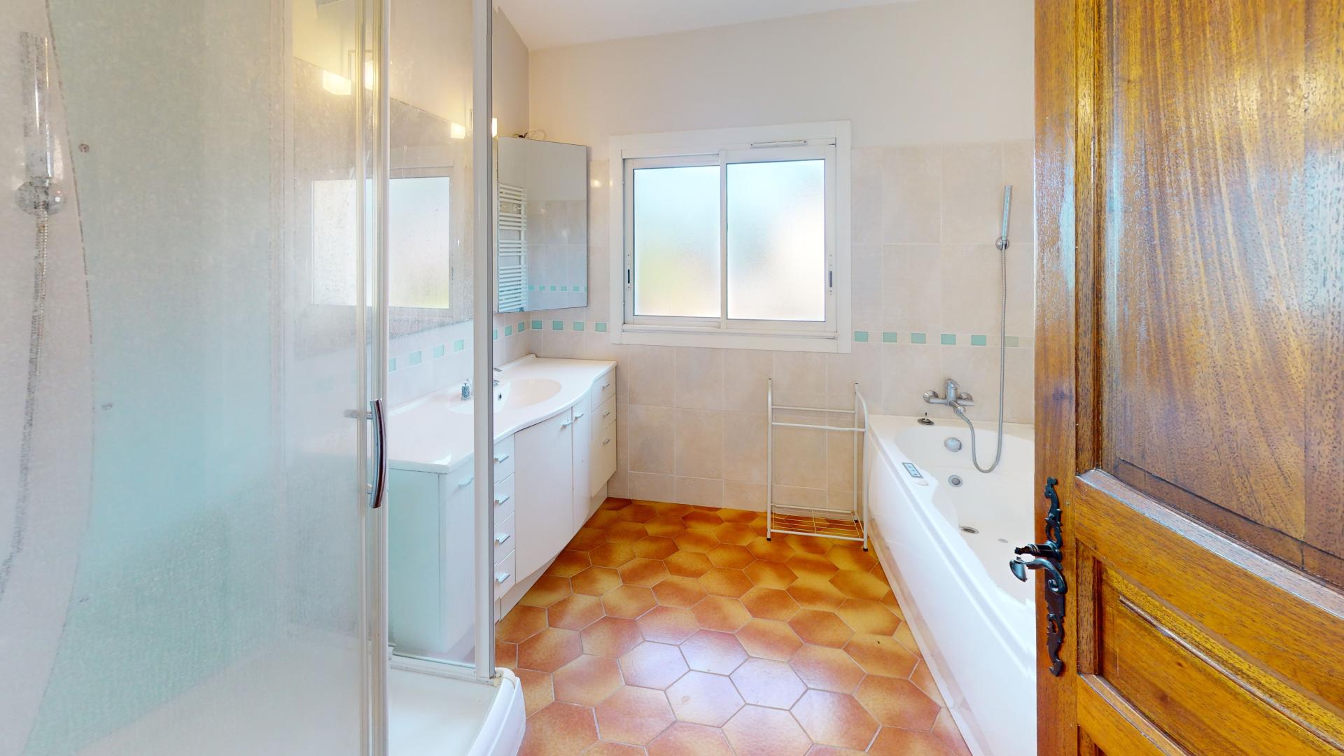 Terrain plat 706 m², 5 chambres, sous-sol, garage, barbecue, loggia, séjour lumineux, visite 3D Matterport sur demande.