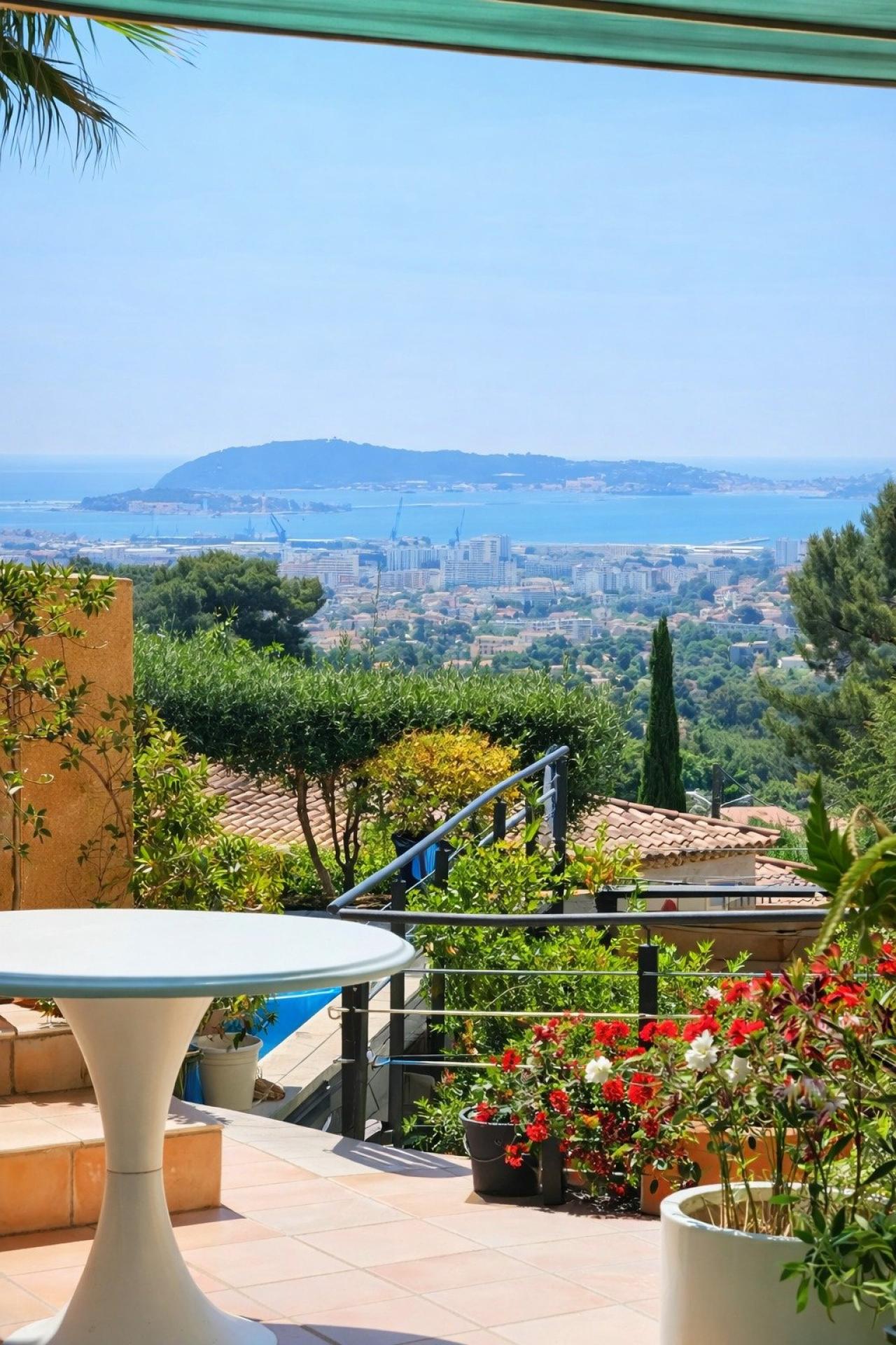 Where Elegance Meets the Extraordinary Perched in an exclusive, peaceful setting, this remarkable 150m² residence is the epitome of refined living. Featuring three spacious bedrooms, including a luxurious master suite, soaring 3.5-meter ceilings, and expansive interiors bathed in natural light, the home offers an ambiance of understated prestige and absolute comfort. Outside, a meticulously landscaped garden unfolds over 1,000m², embracing a sparkling pool that seamlessly blends with the surroundings. From the terrace, you’ll enjoy uninterrupted, panoramic views of the entire Toulon harbor — an ever-changing masterpiece of sea and sky. Discreetly integrated, a private garage and parking space enhance the home’s functionality without compromising its elegance. This is more than a property — it’s a lifestyle. A rare sanctuary that combines serenity, sophistication, and a view beyond imagination. For those who seek the exceptional, this is your invitation to live above it all.