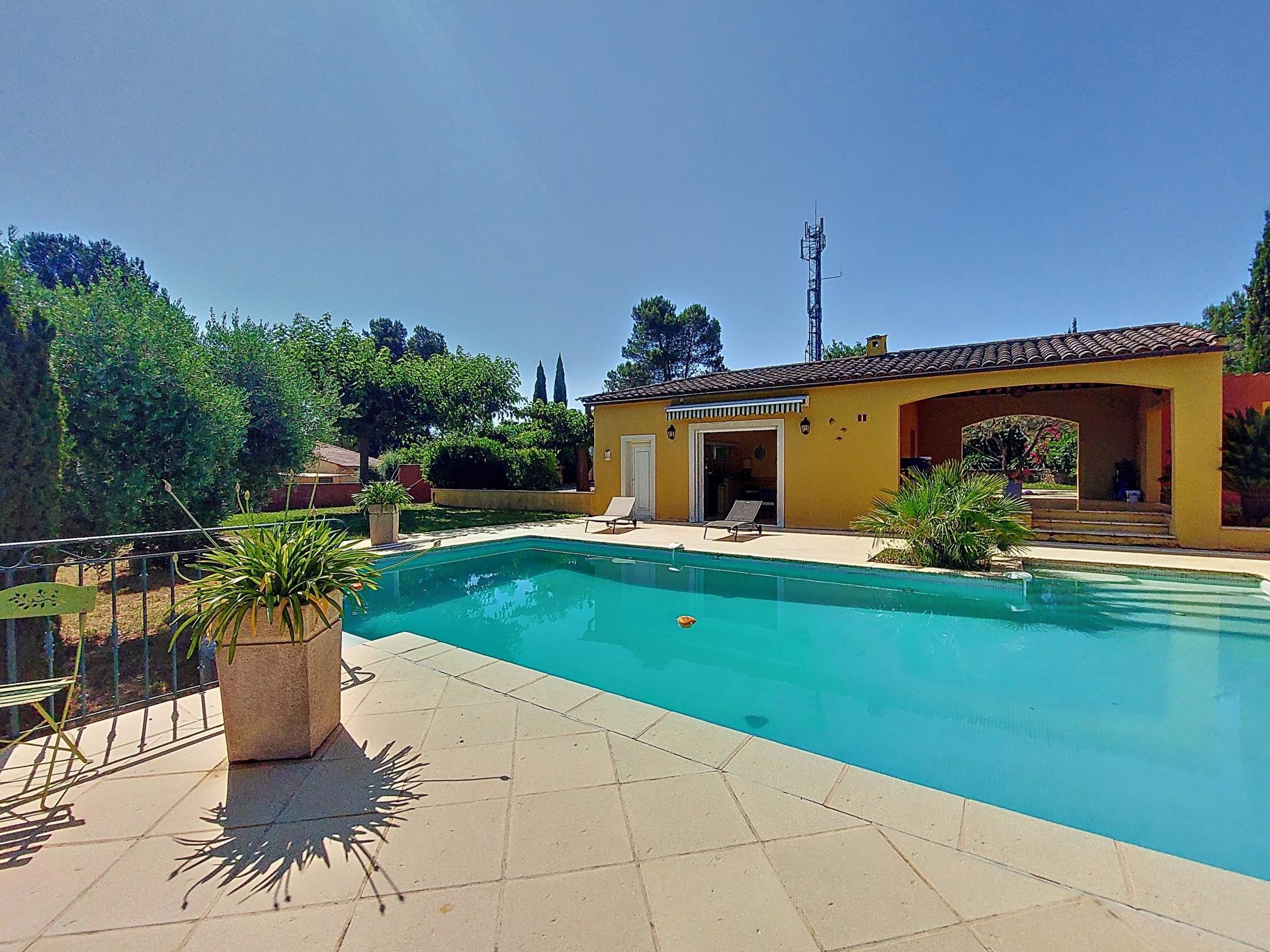 Located in Trans-en-Provence, in the Var department, in the sought-after residential area of Peical, this magnificent property offers a luxurious living environment combining comfort and security. This large Provencal bastide, built in 1985, was extended and completely renovated in 2004, combining the charm of the old with contemporary features. It is within easy reach of the main roads, the TGV station at Les Arcs sur Argens and the beaches of the Côte d'Azur. The bastide offers 264 m2 of living space, set in 2300 m2 of landscaped grounds, ideal as a main or second home, with a host of top-of-the-range features, perfect finishes and functional layouts for all the family. The main house comprises an entrance hall, a spacious triple living room with fireplace and reversible air conditioning, a modern, fully-equipped Mobalpa kitchen, and a master suite with three areas: a huge custom-made dressing room, a bedroom opening onto the terrace, and a bathroom with bath, shower and WC, leading to a laundry room. Upstairs, you'll find a large landing with an office area, two bedrooms, one with a dressing room, a bathroom with bath and separate toilet. Children will have access to a huge games room in the attic.