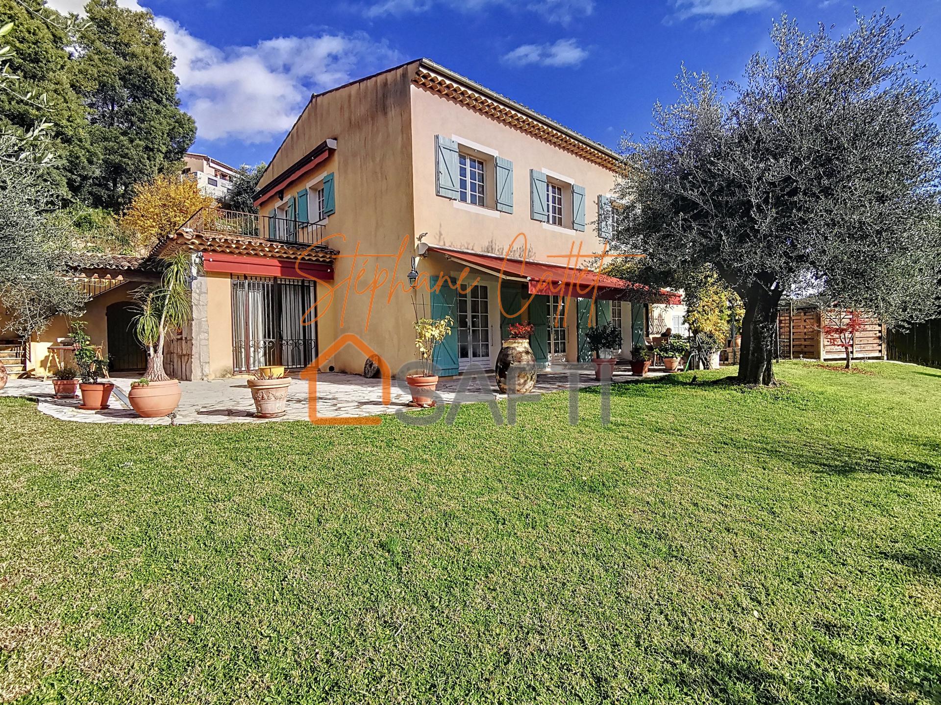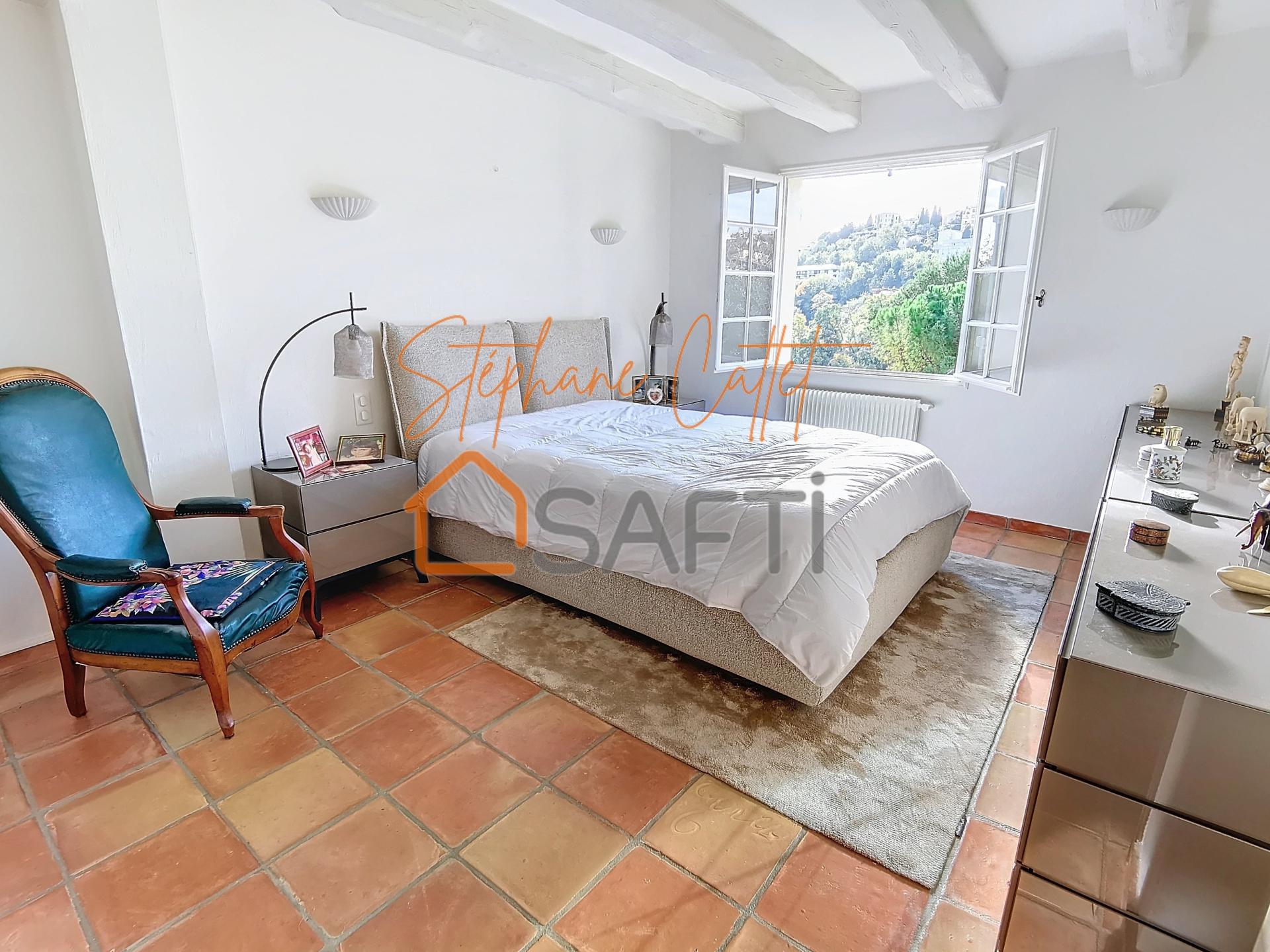 Située au calme tout en étant proche des commodités et des écoles, villa d'environ 203 m² divisée en un 5P d'environ 159 m² et un 3P d'environ 45 m² sur un beau terrain plat d'environ 1900 m². De plain-pied, double séjour avec cheminée, cuisine indépendante équipée, suite parentale avec salle de bains, douche et wc indépendant, cellier et cave. À l'étage, 3 chambres dont une belle suite avec salle de bain et wc indépendant, buanderie, chaufferie et bureau donnant sur une belle terrasse d'environ 14 m². A l'étage également, un 3P avec son portail et son entrée indépendante, séjour et cuisine ouverte, 2 chambres, salle de bains et wc indépendant. Beau terrain plat avec grande terrasse pavée exposée plein sud et avec une vue imprenable sur la ville de Vence et ses remparts. Jacuzzi couvert, bel abri pour voitures et local à outils. A l'arrière de la maison un beau terrain plat peut accueillir une piscine ainsi qu'une cuisine d'été. A visiter sans tarder !