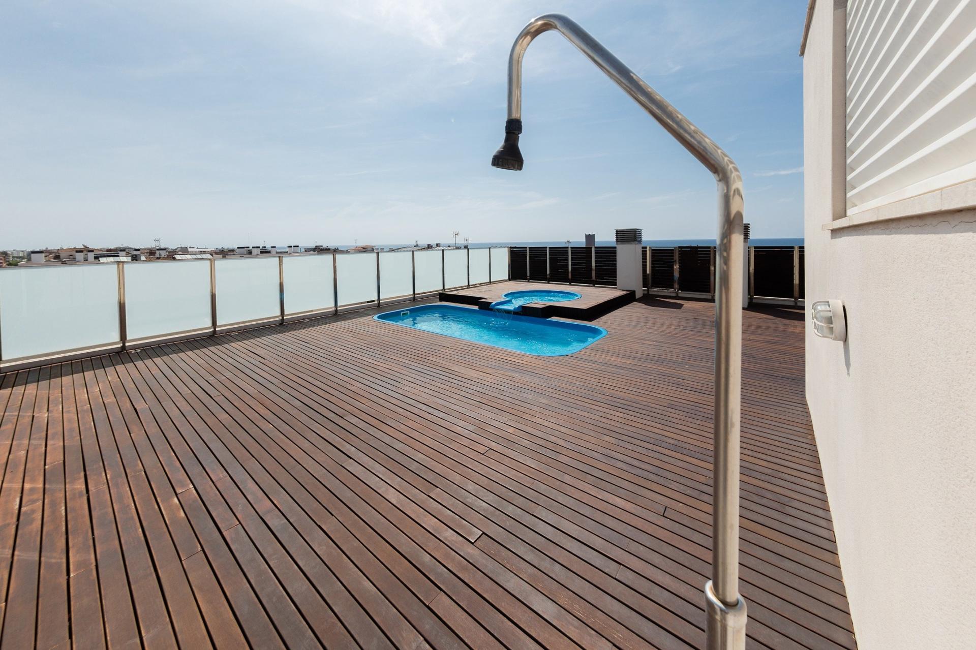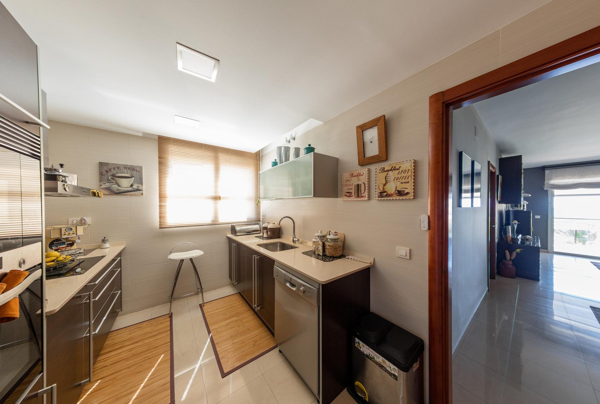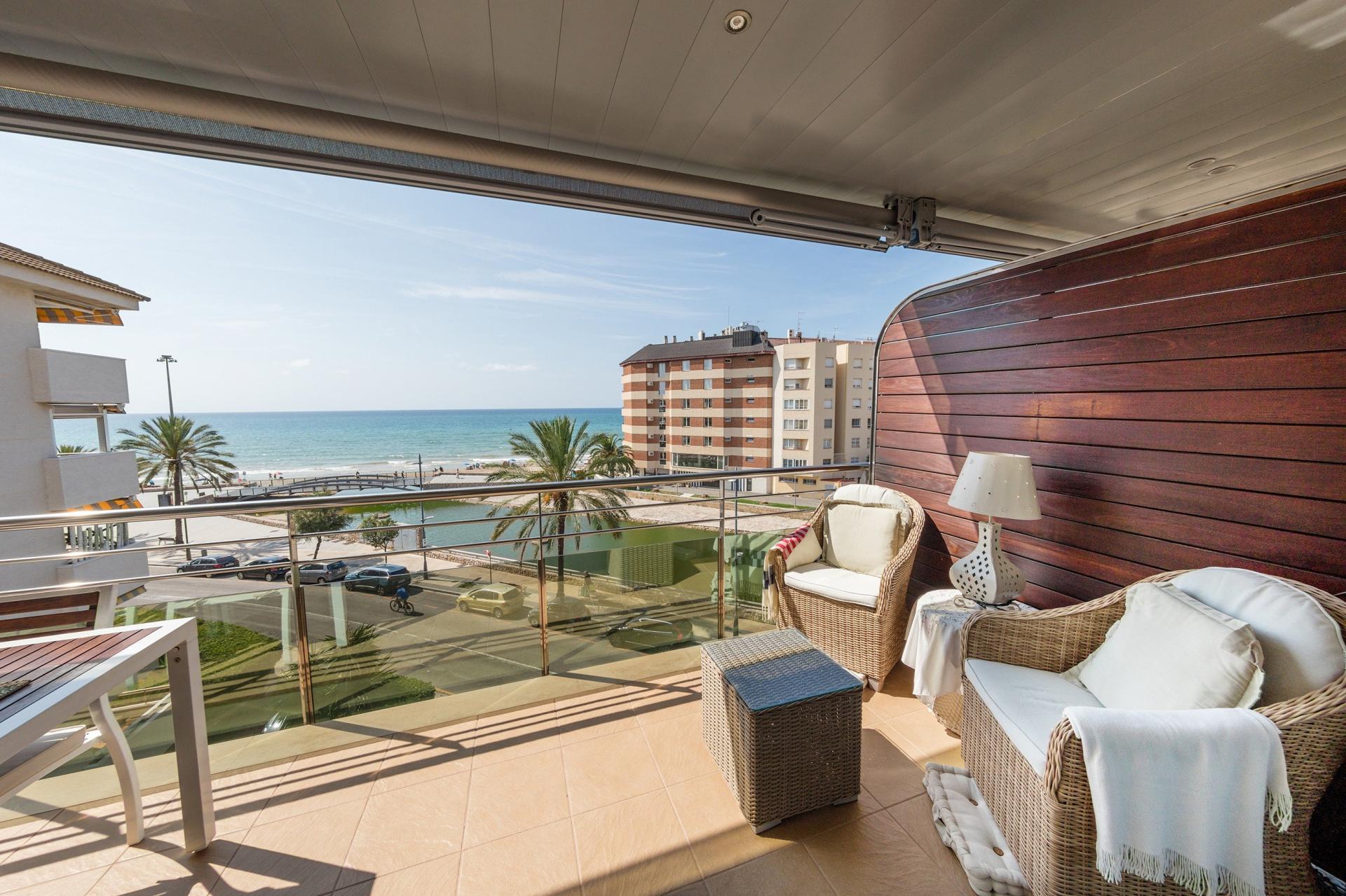 Ubicado a solo 50 metros de la orilla, cerca de la ciudad, este luminoso piso totalmente exterior de 105 m² ofrece una vida de lujo y confort. Disfruta de 3 habitaciones dobles (una de ellas en suite con acceso a un baño), otro baño completo con ducha, una cocina independiente totalmente equipada con electrodomésticos de alta gama y un amplio salón-comedor. Lo mejor de este hogar es su terraza privada de 10 m², con toldos y espacio para una mesa de 6 personas y un sofá, ideal para relajarte mientras contemplas las impresionantes vistas al mar. Accedes a ella tanto desde el salón como desde la habitación principal. Las zonas comunes son un verdadero paraíso: piscina, jardín y una increíble terraza en la azotea con jacuzzi y vistas panorámicas. Además, la vivienda incluye plaza de parking cubierta y un trastero. El piso está en perfecto estado, listo para que te mudes y empieces a disfrutar de un estilo de vida de ensueño. No dejes pasar esta oportunidad única.
