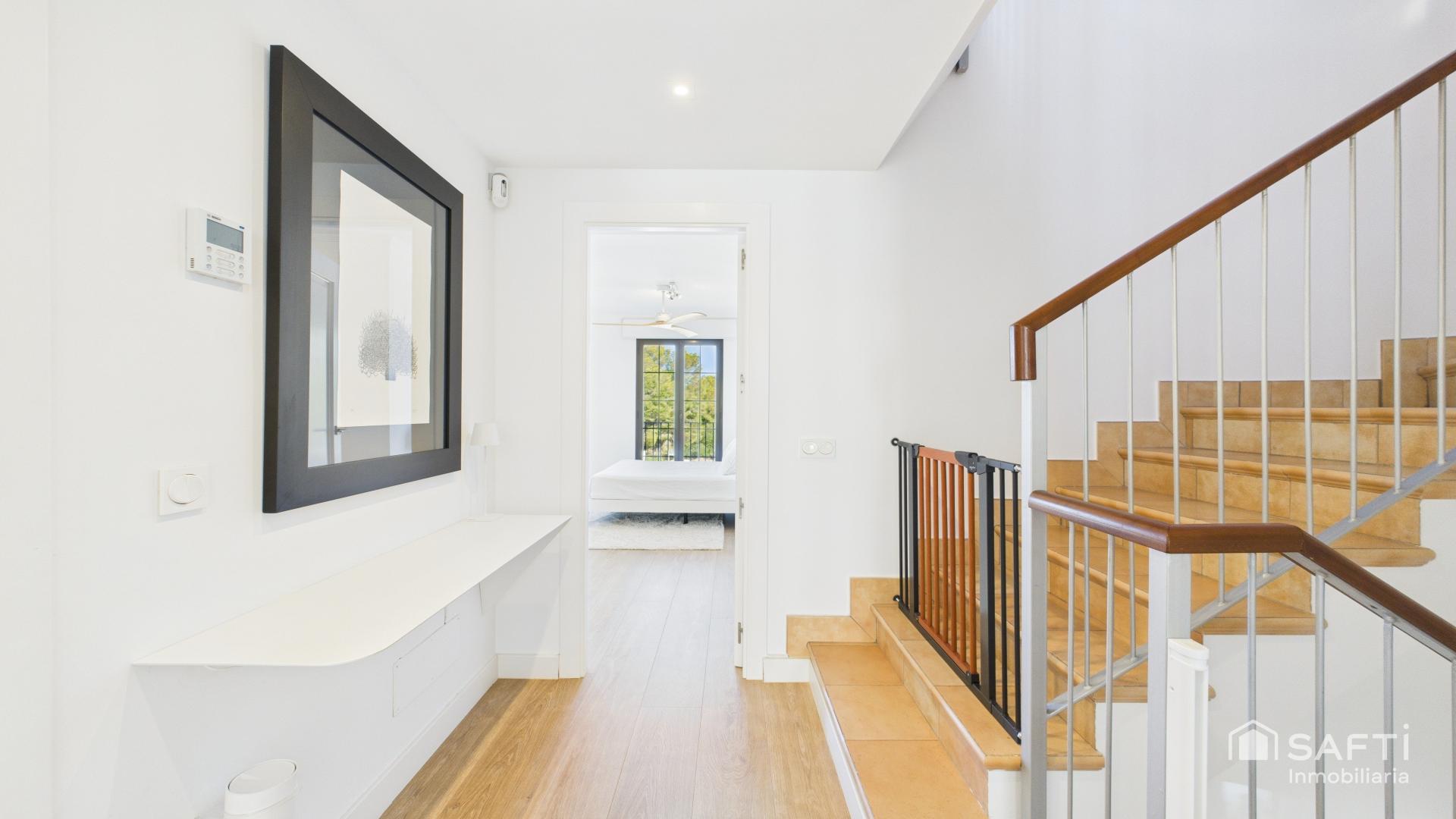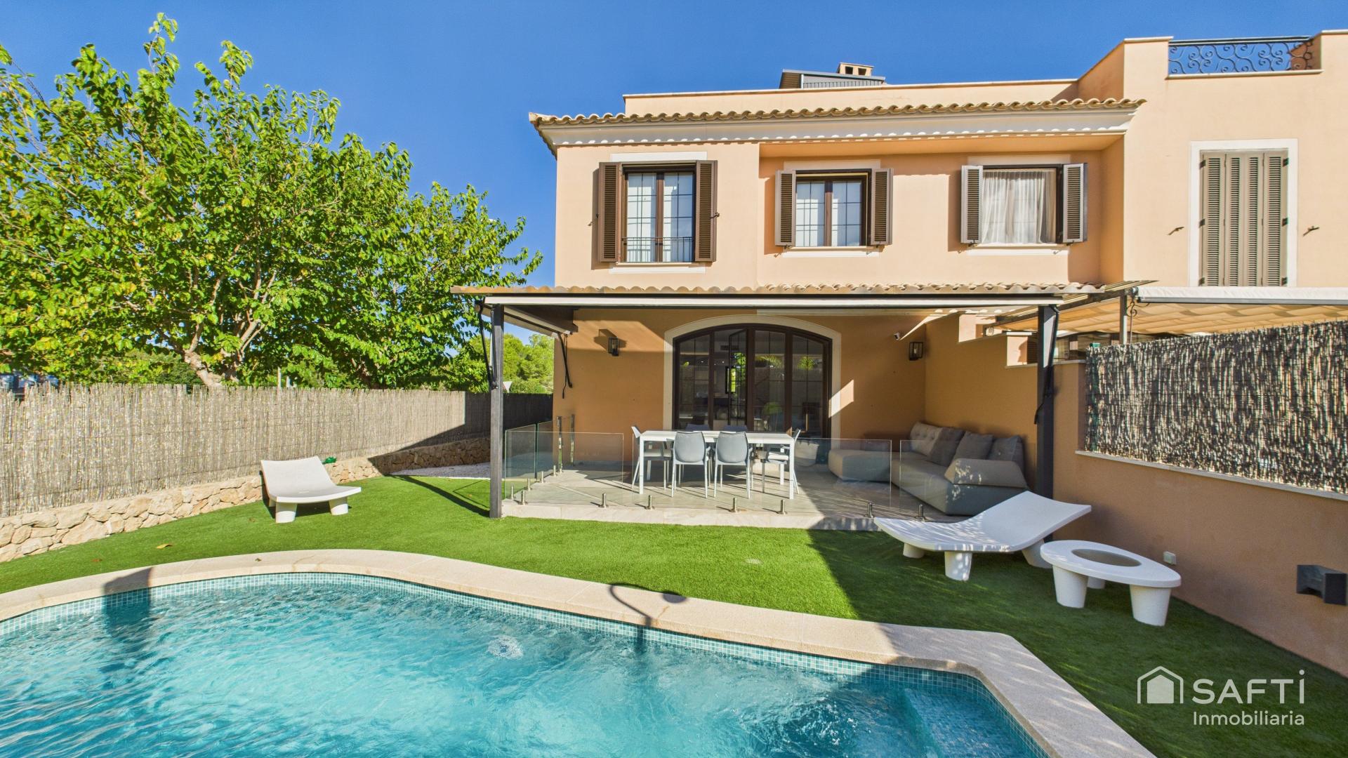 Villa de diseño amueblada y conectada en Puig de Ros – Mallorca Ubicada en la exclusiva zona residencial de Puig de Ros, esta villa contemporánea completamente renovada combina a la perfección diseño, confort y tecnología. Con 193 m² habitables (273 m² construidos) sobre una parcela de 330 m², ofrece un estilo único y acabados de máxima calidad. Una casa pensada hasta el último detalle: Desde la entrada, los materiales de diseñadores internacionales y los acabados a medida marcan la diferencia: cada rincón ha sido cuidadosamente diseñado (Chrisset Palma) para combinar estética y funcionalidad. El amplio salón, lleno de luz natural, gira en torno a una chimenea de pellets y una cocina abierta totalmente equipada y hecha a medida. La villa dispone de 3 dormitorios y 3 baños, todos con un diseño moderno y elegante. El sótano acondicionado ofrece un espacio de ocio ideal: sala de juegos, gimnasio o zona de entretenimiento para toda la familia. Confort moderno & domótica avanzada: La casa es totalmente inteligente y se controla por comando de voz: iluminación, climatización, seguridad, música… todo al alcance de una palabra. El sistema de aerotermia garantiza un confort térmico óptimo y una alta eficiencia energética. Exterior & relax : Disfruta del jardín ajardinado y la piscina privada de agua salada, perfectos para relajarse bajo el sol de Mallorca. La propiedad cuenta con garaje eléctrico automatizado y porche exterior para un segundo vehículo, además de un portón motorizado. Puntos destacados: Villa totalmente amueblada, lista para entrar a vivir Materiales de alta gama y mobiliario a medida Tecnología integrada y confort inteligente Ubicación privilegiada: cerca del mar, del golf de Maioris y a solo 20 minutos de Palma Una villa exclusiva en Puig de Ros, ideal como residencia principal o segunda vivienda para quienes buscan estilo, tranquilidad y diseño contemporáneo.