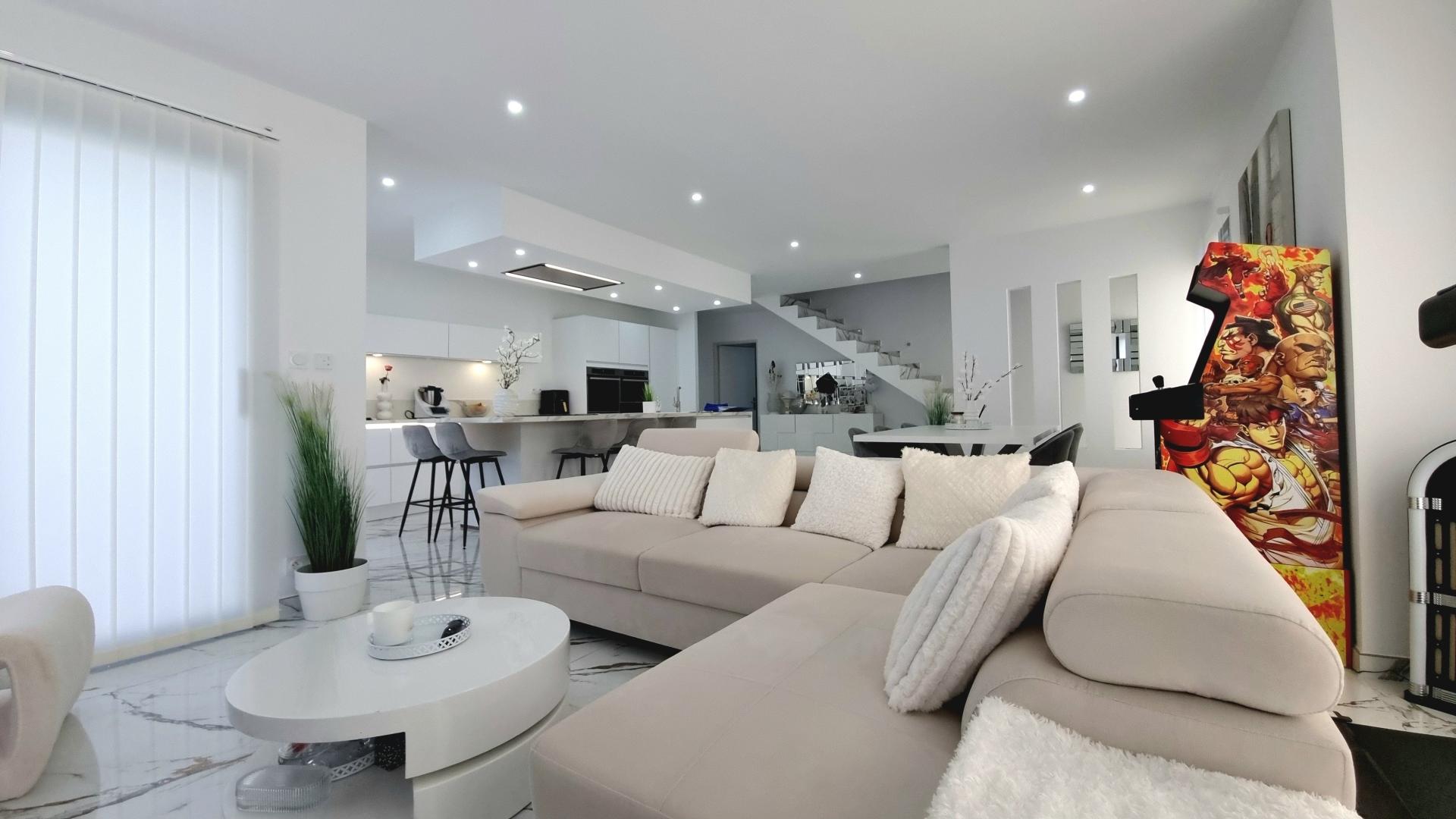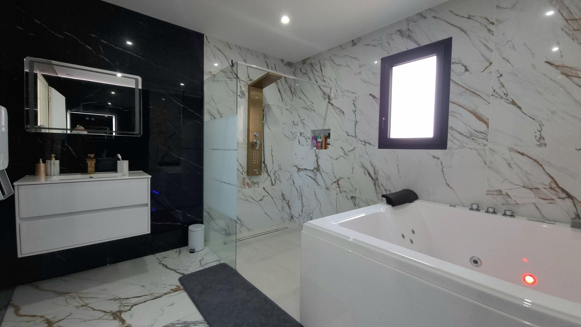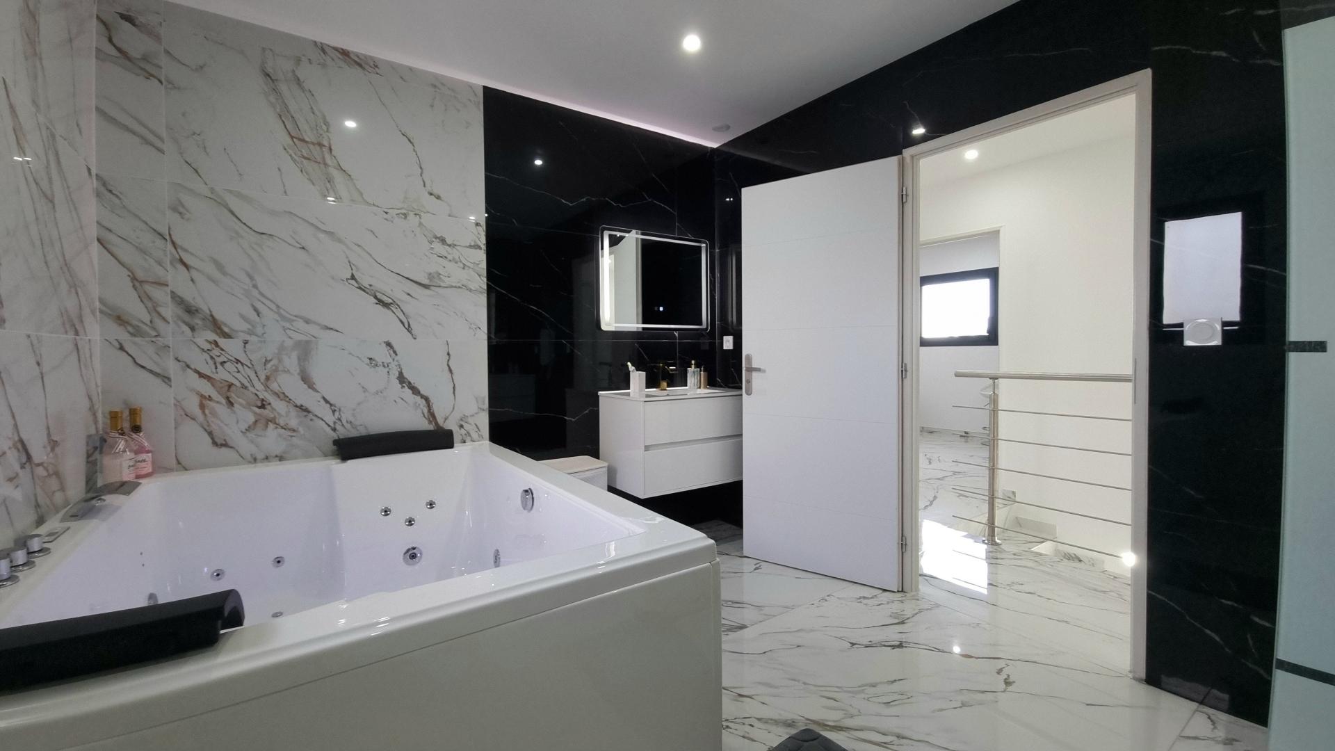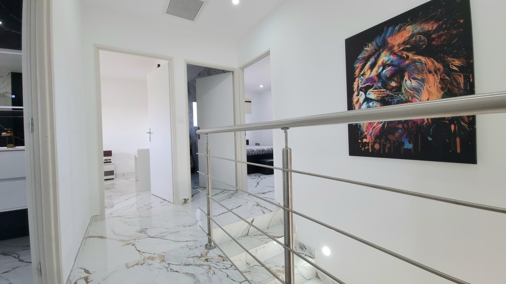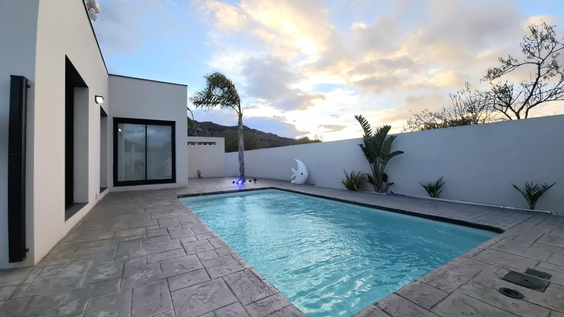 Cases-de-Pène Laissez-vous séduire par cette magnifique villa contemporaine de 150 m² habitables, implantée sur une parcelle paysagée de 400 m² avec piscine. Un bien d’exception, alliant design moderne, prestations haut de gamme et confort absolu. Espace de vie & agencement Au rez-de-chaussée, un vaste séjour lumineux d’environ 55 m² accueille un salon cosy, un espace repas convivial et une cuisine ouverte haut de gamme entièrement équipée, idéale pour recevoir. L’ensemble s’ouvre sur le jardin et la piscine, offrant une belle continuité intérieur/extérieur. L’espace nuit se compose de 4 grandes chambres, dont une suite parentale au rez-de-chaussée avec salle d’eau privative et dressing. À l’étage, une superbe salle de bain aux finitions raffinées, avec jacuzzi et douche à l’italienne, invite à la détente. Garage attenant Prestations haut de gamme: • Piscine • Climatisation réversible gainable • Pompe à chaleur & chauffe-eau thermodynamique • Système d’alarme • Construction récente (2024) • Jardin arboré et paysagé, sans vis-à-vis • Maison 4 faces • Vue dégagée sur le massif des Corbières Les plus Une décoration soignée, des matériaux nobles (sols effet marbre, menuiseries aluminium, éclairages LED encastrés) et une ambiance harmonieuse font de cette villa un véritable coup de cœur.