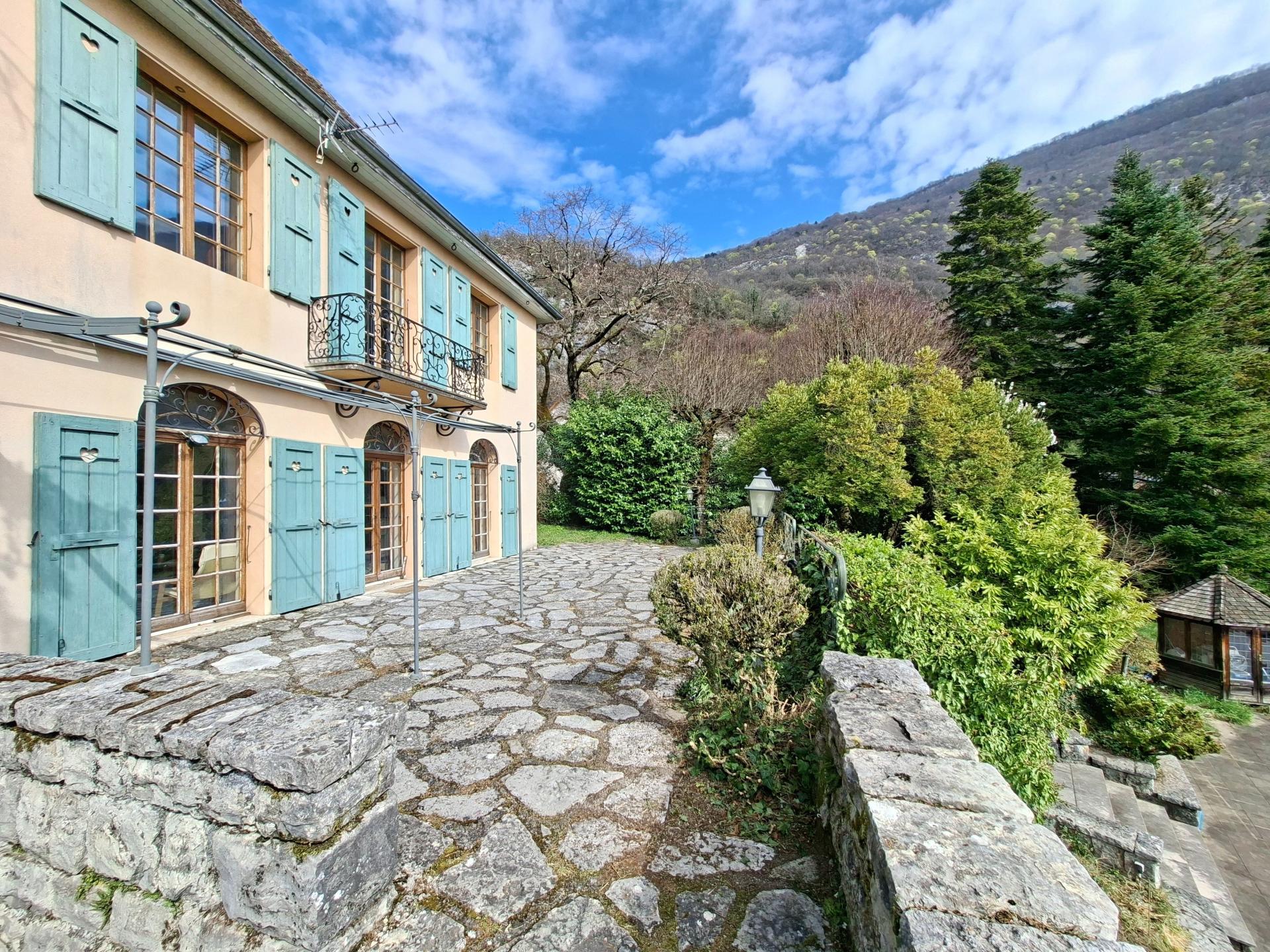 A Chindrieux, à proximité des commerces et de l'école, à 5 minutes de la plage de Chatillon, Lac du Bourget, l'emplacement est très calme, idéal : 20 mn d'Aix les bains, 40 mn d'Annecy et moins d'une heure de Genève. Venez découvrir cette prestigieuse demeure de 1734, d'une superficie de 428m² habitables, avec sa piscine de 12,5 x 4 sur une belle parcelle d'environ 2 864m2 clos et arboré. Découvrez cette belle maison de caractère avec ses 10 pièces : Au RDC : une entrée, une grande salle à manger, avec une cheminée, un salon avec un accès sur la belle terrasse avec magnifique vue sur le Lac. Une cuisine avec un cellier, une buanderie avec des sanitaires. A l'étage : une grande chambre avec sa salle de bains attenante. Demi-niveau : une chambre avec une salle de bains avec une cheminée. Niveau 1 : un salon, avec une chambre, une buanderie/Salle d'eau. 2 chambres en enfilade + 3 salles de bains avec une chambre. La suite parentale dispose d’un balcon orienté Sud avec splendide vue sur le lac. Accompagnée d'un garage + un local technique chaufferie, un atelier + 2 caves voûtées. Ainsi qu'un grenier aménageable. Ce bien d’exception constitue un produit rare, il existe des éléments remarquables anciens : carrelages, moulures, cheminées, escaliers en marbre. Coup de coeur assuré !