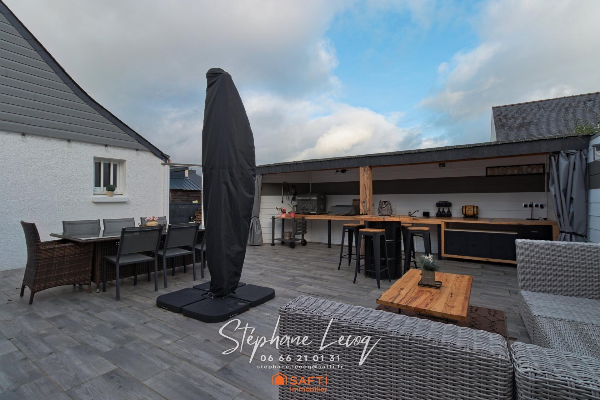 Située à l’orée d’une forêt et à deux pas du bourg d’Erdeven, cette maison de 116 m², édifiée sur une parcelle de 700 m², offre un cadre calme et verdoyant tout en conservant un accès rapide aux commerces, aux écoles et aux sentiers de balades à pied ou à vélo. Vous serez ainsi à 4 km des longues plages de sable fin d’Erdeven, à 600 m de l’école primaire, à 4 km du collège d’Étel, et entre 1 et 1,5 km des différents commerces. À l’extérieur, une superbe terrasse de plus de 60 m² a été pensée comme une véritable pièce de vie : cuisine équipée, espaces « salon » et « salle à manger ». De quoi profiter pleinement des beaux jours. Un garage, un carport et deux annexes fermées complètent l’ensemble et offrent de belles capacités de rangement. À l’intérieur, le rez-de-chaussée propose de beaux volumes et une vie de plain-pied très agréable. À l’étage, trois chambres et une salle de bains avec toilettes composent un espace plus intimiste. Les prestations soignées permettent d’y poser vos valises sans attendre.