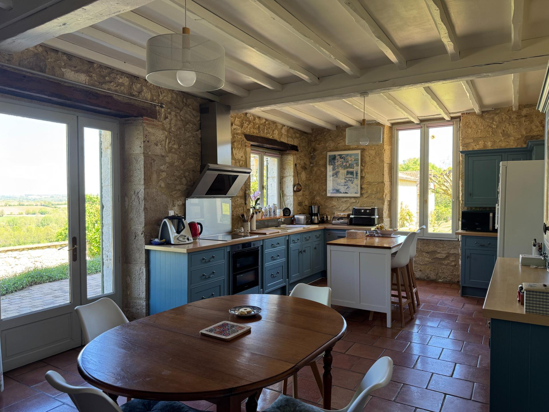 À VENDRE – PROPRIÉTÉ D’EXCEPTION EN PIERRE – MAISON DE MAÎTRE & GÎTE – 5,69 HECTARES – VUE DOMINANTE Nichée au sommet d’une colline, cette somptueuse propriété en pierre du XIXe siècle offre un cadre de vie idyllique, mêlant charme authentique, prestations haut de gamme et vue panoramique sur la campagne environnante. La maison de maître, d’environ 316 m², a été entièrement rénovée avec des matériaux nobles. Dès l’entrée, vous serez séduits par le majestueux escalier en orme, les murs en pierre apparente et la superbe cheminée à double foyer, véritable lien chaleureux entre le salon et la salle à manger. L’ensemble respire l’élégance et le confort, avec une grande cuisine lumineuse, une arrière-cuisine fonctionnelle et de très spacieuses chambres. La maison comprend 6 chambres, toutes équipées de WC privatifs, dont plusieurs suites parentales avec salles de bains raffinées. À cela s’ajoute un gîte indépendant de 154 m² environ, rénové avec le même souci du détail et du confort : 4 grandes chambres, chacune avec salle d’eau privative, ainsi qu’une vaste pièce de vie conviviale, idéale pour recevoir ou pour une activité locative. L’extérieur n’est pas en reste : vous profiterez d’un parc paysager de plus de 5,69 hectares, avec vergers, potagers, jardin fleuri et de magnifiques espaces arborés. Une piscine autonome avec pool house invite à la détente, tandis que les dépendances en pierre – grange, atelier, garage fermé – complètent harmonieusement l’ensemble. Côté confort moderne et respect de l’environnement : panneaux solaires, récupérateur d’eau de pluie, puits en fonctionnement toute l’année… Tout a été pensé pour conjuguer autonomie et écologie. Un bien rare, aux volumes généreux, aux prestations rares, idéal pour une grande famille, un projet de maison d’hôtes, ou encore une résidence principale avec activité locative. Coup de cœur assuré pour cette propriété unique, à l’emplacement privilégié, en position dominante avec vue imprenable. Contactez-moi pour une visite privée de ce bien d’exception. Éric Marfaing – Conseiller Immobilier – SAFTI