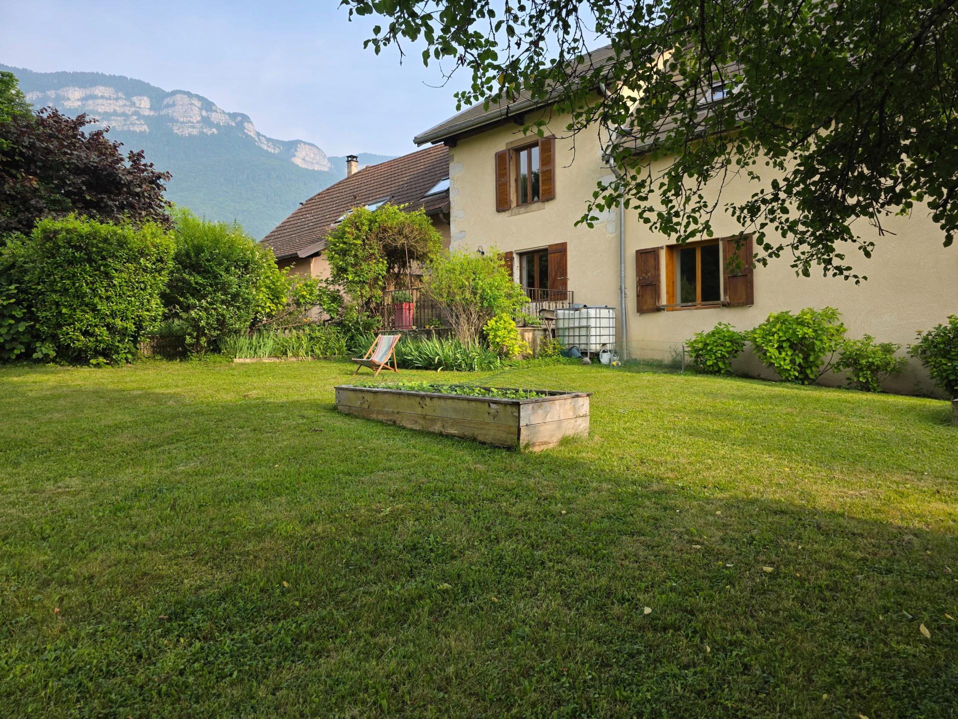 Grande maison lumineuse avec suite parentale, gîte rentable, annexes et caves voûtées, à 5 min d’Aix-les-Bains. Idéale famille/projet.