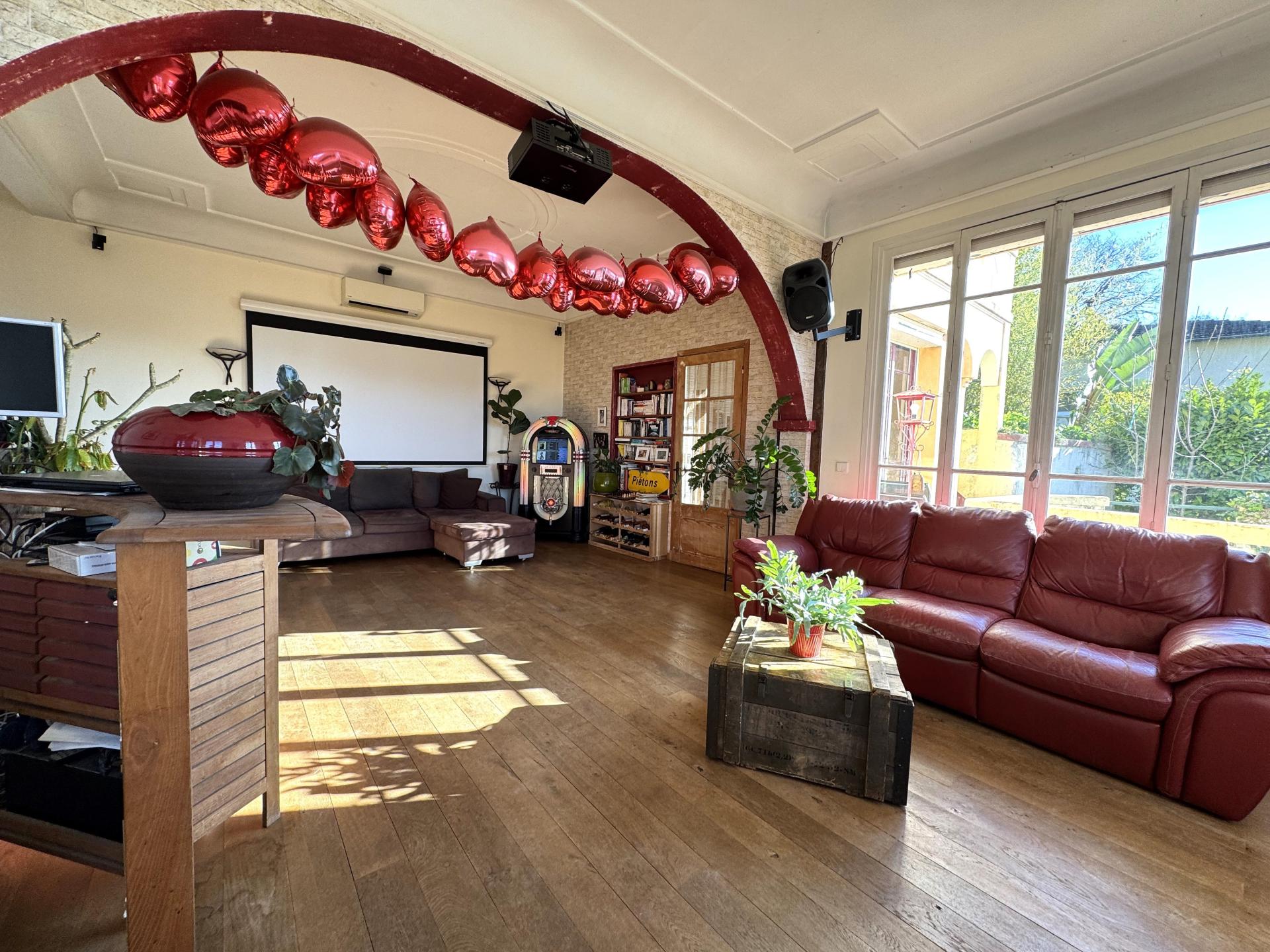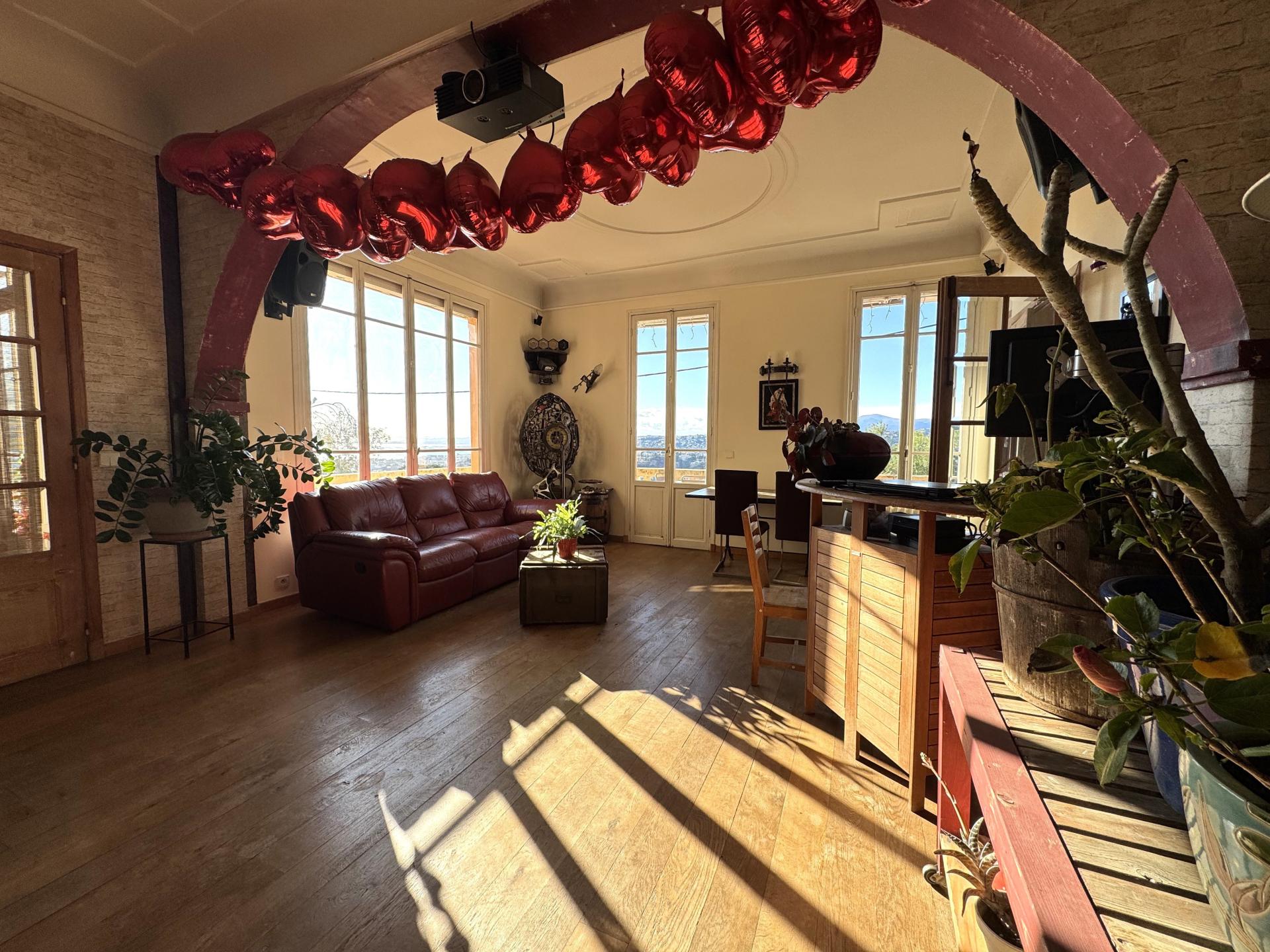 Située dans un cadre recherché, cette maison de 190 m² offre un espace de vie généreux, pour une famille ou un projet combinant habitation et activité professionnelle. Rez-de-chaussée : • Studio avec mezzanine, parfait un bureau, une activité indépendante ou un studio indépendant. • Grand garage avec porte automatisée, espace atelier pour les bricoleurs. 1er étage : • Une grande entrée, avec un dressing spacieux et un WC invité. • Grand salon séjour de 64 m², baigné de lumière grâce à de grandes fenêtres, donnant sur la terrasse pour admirer une vue incroyable. • Une Cuisine attenante, fonctionnelle et conviviale, elle aussi très lumineuse grâce à ses vitraux • Un Bureau transformable en 4ème chambre selon vos besoins. 2ème étage : • Trois chambres, dont une suite parentale avec superbe vue, sa salle d'eau privative et placard intégré. • Salle de bain avec baignoire et un WC séparé. Atouts supplémentaires • Terrasses à chaque étage pour profiter pleinement de la vue. • Climatisation dans toute la maison. • Quelques travaux de rafraîchissement à prévoir.