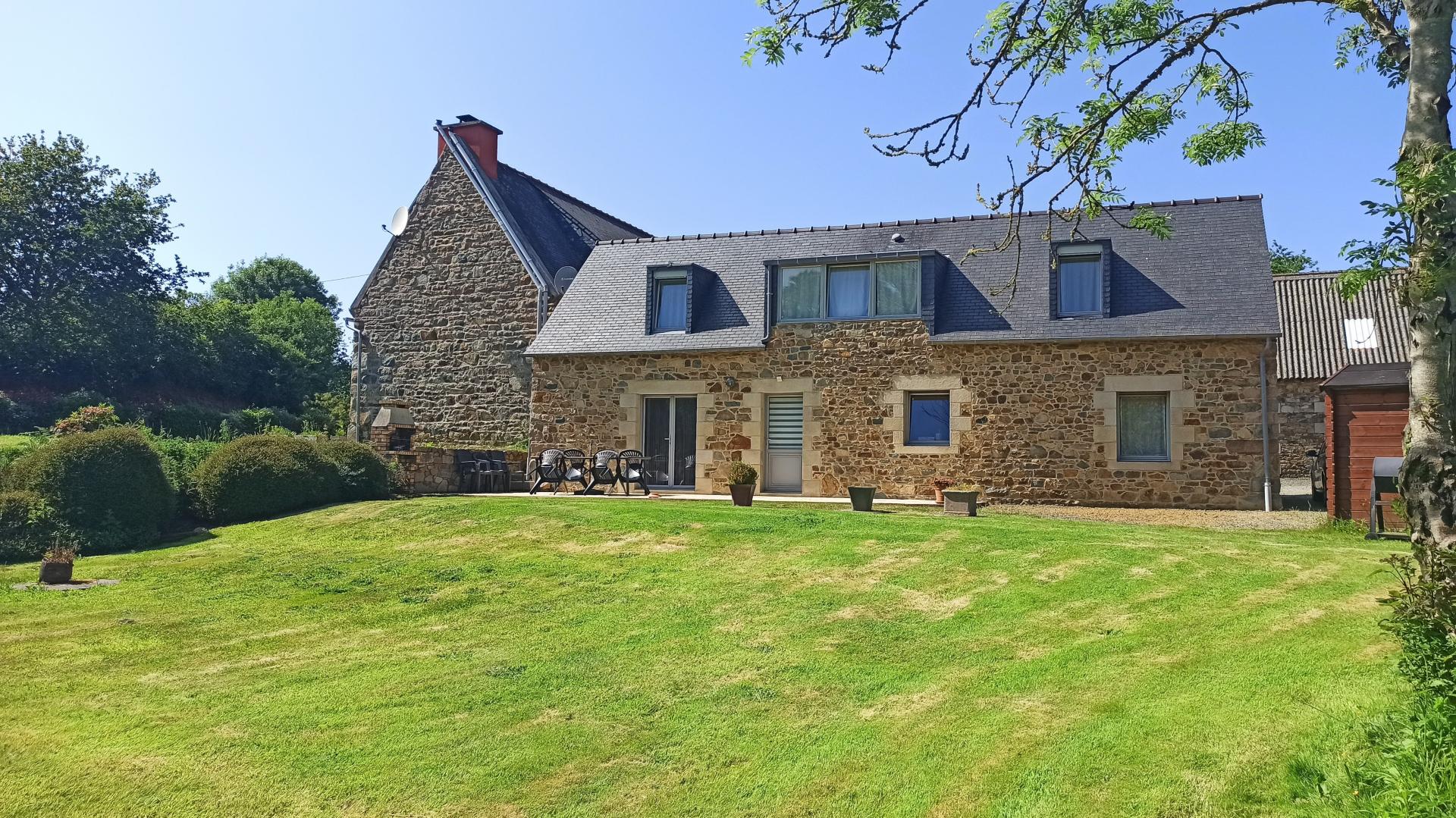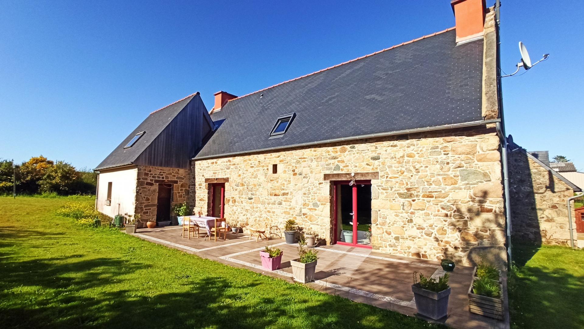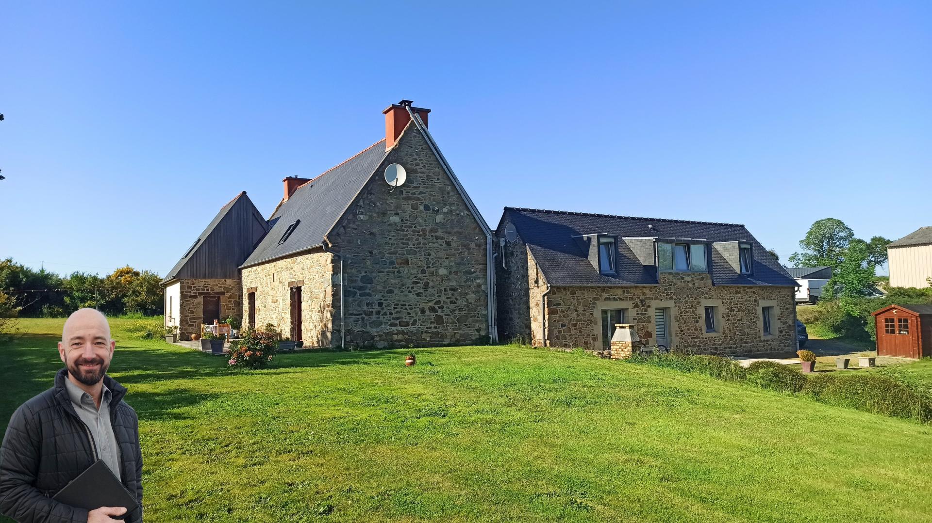 Cette charmante propriété est située au calme en campagne entre Perros-Guirec et Paimpol, à moins de 2,5 kilomètres de la mer sur environ 5 hectares de terrain (dont 2 hectares en fermage) Ce domaine est composé de deux maisons entièrement rénovées avec goût, d'une ancienne écurie, d'une grange, d'une dépendance isolée (cave) et de deux grands hangars. L'habitation principale se compose au rez-de-de chaussée d'une grande pièce de vie d'environ 58m² avec un poêle à bois et où se trouve la cuisine aménagée. Une arrière cuisine (et buanderie) donne accès un WC séparé et une pièce prévue pour être une salle d'eau. Le design brut de l'escalier qui allie le béton et l'acier de vous laissera pas indifférent. A l'étage le palier distribue trois chambres dont deux grandes équipées chacune d'une salle d'eau et WC. Pour la seconde maison, le rez-de-chaussée offre une pièce de vie avec salon, séjour et cuisine équipée, un WC séparé, une chambre et une salle d'eau. A l'étage 2 chambres et une salle d'eau avec WC. Les deux habitations sont rénovées de la même façon, avec goût et matériaux de qualité. Les menuiseries double vitrages sont mixtes (La durabilité de l'aluminium à l'extérieur et la chaleur du bois à l'intérieur). Le chauffage est par le sol au rez-de chaussée. Les assainissements sont distincts et conformes. L'ensemble des dépendances offre une surface couverte totale d'environ 550m², de quoi concrétiser de nombreux projets et possibilités (hivernage, stockage, rénovation des écuries et grange..) Cette propriété regroupe donc de nombreux atouts : calme et nature, grands espaces, mer, plages et roches dans une commune réputée de la Côte de granit rose et à proximité des commerces (environ 5min du bourg et de Penvénan et 10min de Tréguier) A visiter sans tarder !
