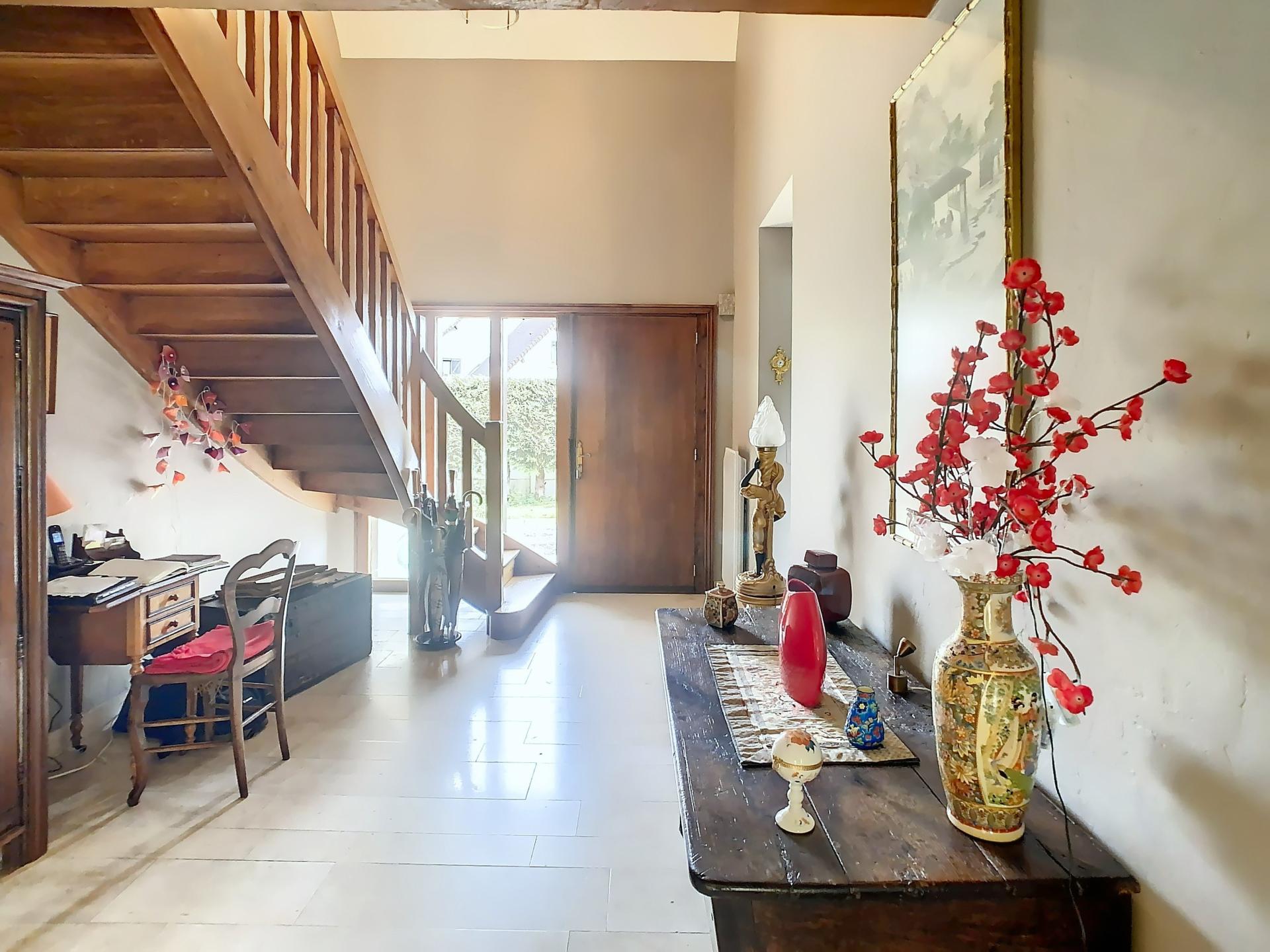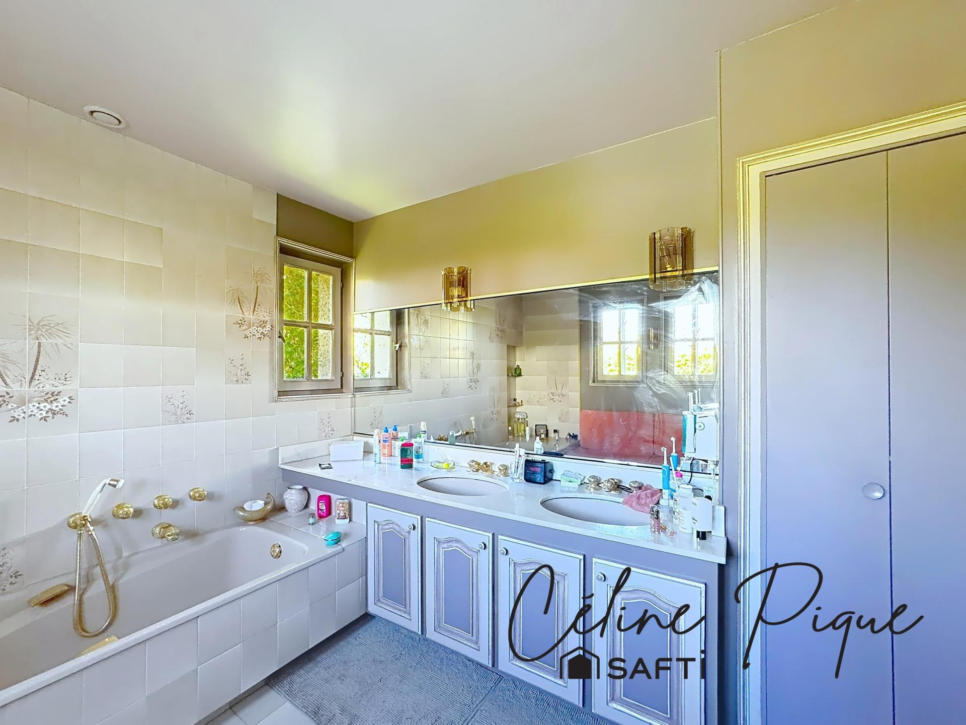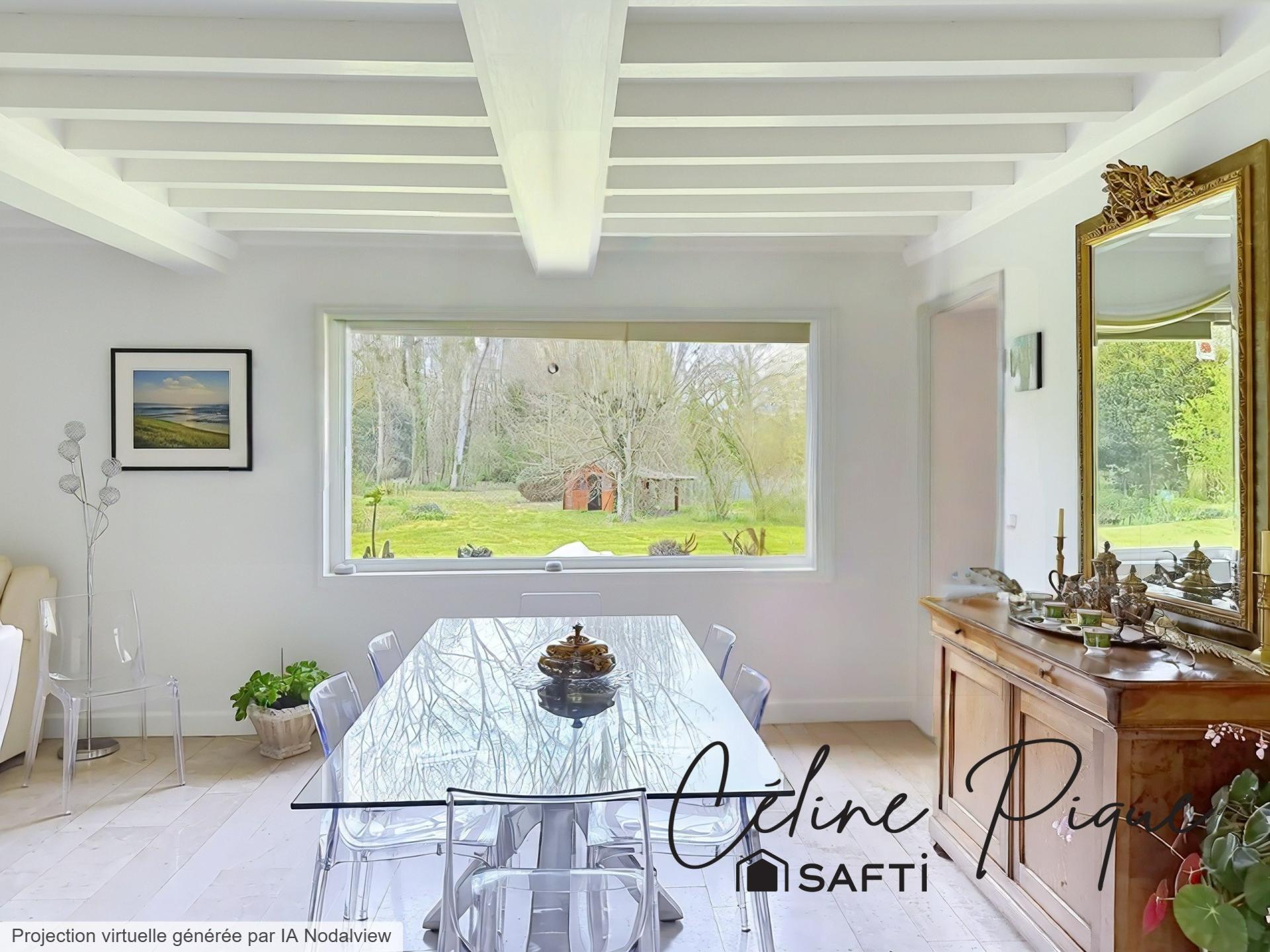 A 9 mn au nord-ouest de Caen et moins de 18 mn de Courseulles-sur-mer, à 2 mn en voiture des commodités dans une commune prisée avec bus verts, vous serez charmés par cet environnement exceptionnel composé d'un très beau parc paysager, une mare et un bois avec une rivière. Cette maison d'architecte des années 80 a été construite avec des matériaux de qualité et dispose de 9 pièces sur 225 m2 habitables. Vous entrerez par un grand hall menant à un espace de vie de 53 m2 composé d' un séjour traversant et lumineux disposant d' une cheminée en pierre et ouvert sur un jardin d'hiver menant à une grande terrasse exposée sud, une cuisine aménagée et équipée de 17,5 m2 disposant d'une cheminée insert et accédant à une autre terrasse pour les soirées, une arrière-cuisine/buanderie, un bureau/chambre d'amis, une vraie suite parentale de 30 m2 avec une grande chambre, un dressing et une salle de bain avec baignoire, double-vasque et placard, un wc indépendant avec lave-mains. A l'étage, un palier dessert 3 grandes chambres dont une avec mezzanine, une salle d'eau avec douche et double-vasque, un wc indépendant, une grande pièce de 25 m2 pouvant accueillir pouvant être aménagée selon vos envies en salle de sport ou de jeux ou en chambre supplémentaire. Garage et parking. Huisseries double-vitrage bois, baies en aluminium. Chauffage électrique.