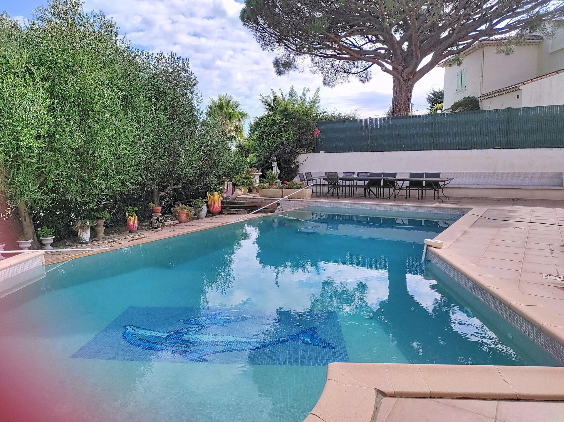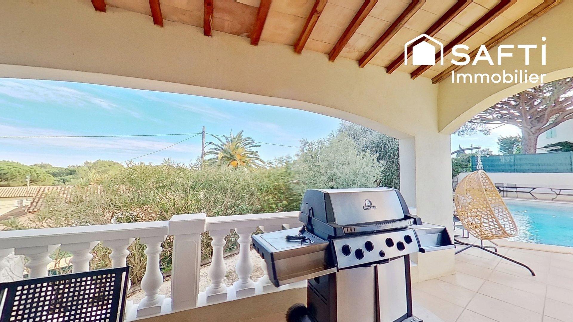 Située dans un quartier résidentiel prisé de Saint-Aygulf, à proximité immédiate de toutes les commodités, cette superbe villa vous séduira par ses beaux volumes, sa luminosité et son entretien irréprochable. D’une surface d’environ 205 m², la villa se compose de 8 pièces et offre des prestations de grande qualité. Dès l’entrée, vous découvrirez une cuisine ouverte entièrement équipée, prolongée par une vaste pièce de vie baignée de lumière, offrant une vue dégagée sur la piscine et une parfaite continuité entre les espaces intérieurs et extérieurs. L’espace nuit du rez-de-chaussée dispose de trois chambres d'une ’une salle de bains avec double vasque. À l’étage, une spacieuse suite parentale dispose de sa salle de bains double vasque, d’un dressing, ainsi que d’un solarium offrant un aperçu mer, montagne (Dramont, Esterel...) et piscine à débordement. Le rez-de-chaussée comprend une buanderie, une chaufferie, une cave à vin, un cellier, une salle de sport, une douche, avec un accès direct au triple garage et à l’aire de stationnement. Implantée sur un terrain d’environ 1 054 m², cette propriété permet de profiter pleinement de la piscine à débordement exposée plein sud, idéale pour des moments de détente et de convivialité en famille ou entre amis. Un véritable havre de paix à découvrir sans tarder.