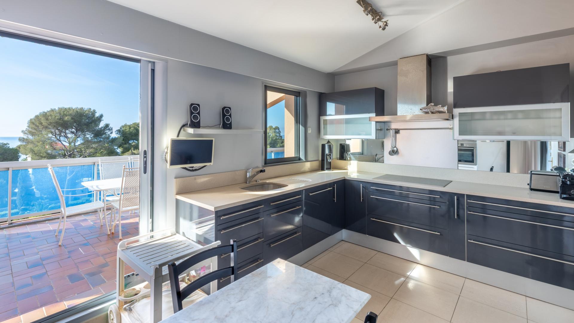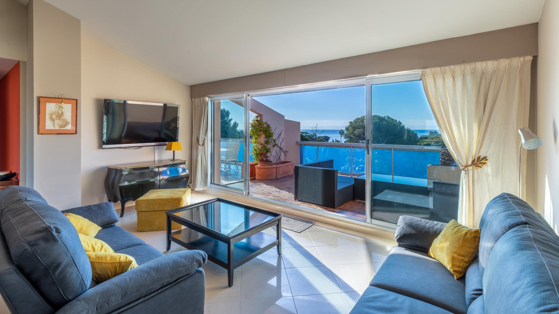 Dans l’une des résidences les plus recherchées de Boulouris, découvrez ce superbe appartement de 123 m², situé au dernier étage, exposé plein sud. Vous serez immédiatement séduit par sa terrasse de plus de 50 m², véritable pièce de vie extérieure, offrant une vue exceptionnelle mêlant verdure et mer, rare sur le secteur. Le bien se compose d'une pièce de vie climatisée avec belle hauteur sous plafond, d'une grande cuisine moderne, de trois chambres, dont certaines avec vue mer et accès terrasse, nombreux rangements, une configuration fluide et lumineuse. Garage fermé inclus, possibilité d'un box en supplément Résidence de standing avec superbe jardin. Produit rare sur le marché. Visite virtuelle sur demande. Vidéo en cours de réalisation. À découvrir rapidement