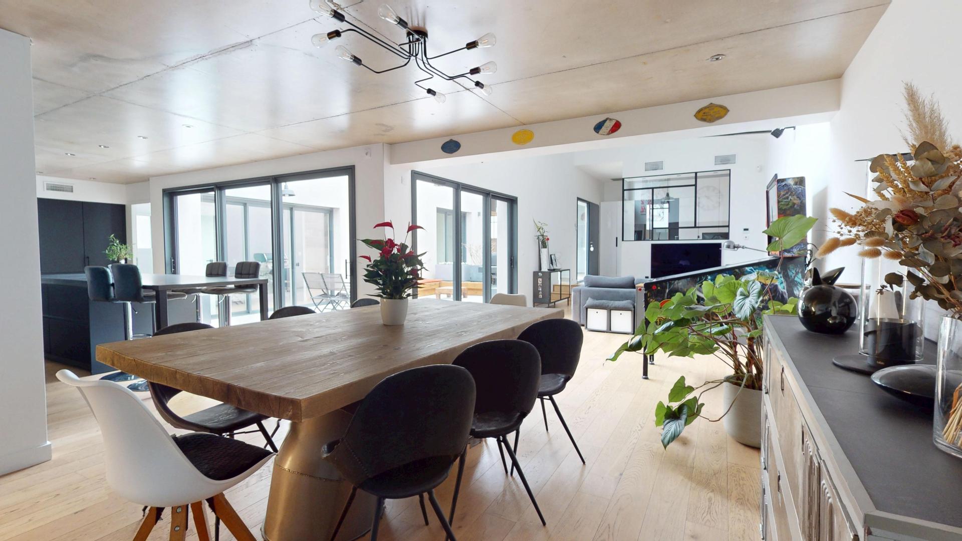 En exclusivité sur la commune de Sathonay-Camp, à poximité des commerces et des transports (bus et gare à pied), venez découvrir cette magnifique maison de ville de 200m² (170m² carrez), discrète et à l'abri des regards, avec son patio et ses 2 garages. Vous serez charmé par cette ambiance cosy et moderne à la fois. De style industriel elle a été entièrement refaite à neuf en 2020 avec des matériaux de très grandes qualités et des prestations haut de gamme. Très habilement pensée par un architecte, la maison sans aucun vis à vis, s'articule autour de son patio à ciel ouvert permettant de profiter des rayons du soleil. Vous pourrez au gré de vos envies y aménager différents espaces: plancha, repos, jaccuzzi ... A l'intérieur immédiatement le ton est donné ; les volumes, les matériaux, la luminosité et la décoration soignée font de ce beau bien un véritable joyau ! L'entrée se fait par un bureau au mobilier sur mesure qui s'ouvre sur un majestueux salon avec plafond cathédrale et une vaste salle à manger sur laquelle donne la belle cuisine entièrement meublée et équipée. Cette pièce de vie d'environ 75m² ultra lumineuse grâce aux très nombreuses baies coulissantes, vous donnera l'impression de vivre toute l'année en extérieur. La visite se poursuit par la suite parentale de 40m² avec sa SDE/WC et son grand dressing. Une buanderie aux dimensions généreuses et des wc suspendus avec lave main complètent ce niveau. A l'étage vous découvrirez 3 grandes chambres (15, 20 et 21m²), une salle de bain avec douche italienne et baignoire et un WC séparé. Côté cour intérieure vous trouverez un garage ouvert de part et d'autre pour y stationner 2 véhicules ou faire votre atelier. Dans un état impeccable, vous pourrez poser vos valises. Ce beau bien atypique est très rare à la vente.N'attendez plus !!!!