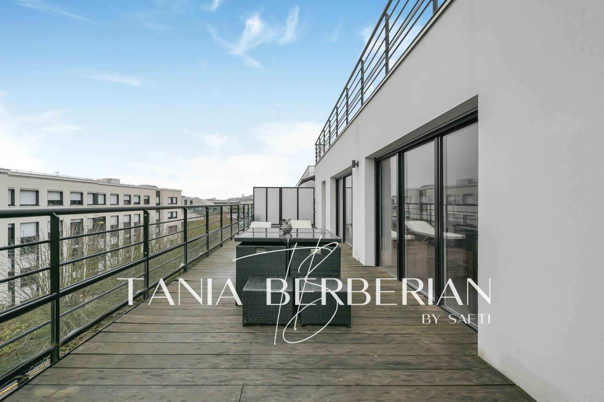 Exclusivité - Rue Pasteur - A proximité immédiate des commerces, des écoles, des transports (à 7 min du T2), et à moins de 10 min à pied du centre ville de Suresnes, dans un immeuble récent de 2019, je vous présente ce magnifique duplex situé en dernier étage avec ascenseur (accessible au 4ème et au 5ème étage) de plus de 113m2 avec terrasse. Ce bel appartement familial, moderne et très bien entretenu, s'ouvre directement, via le 5ème étage, sur le séjour avec sa cuisine ouverte entièrement aménagée et équipée donnant sur une magnifique terrasse de plus de 35m2. A ce même niveau, vous trouverez une chambre, ainsi qu'une salle de bain et des WC. (Possibilité à cet étage de supprimer la chambre pour agrandir le salon). A l'étage inférieur, se trouvent 3 belles chambres (dont une avec balcon), un grand dressing, une salle d'eau et des WC. Deux places de parking et une cave s'ajoutent à ce bien. Les principaux atouts de ce duplex : - Dernier étage (vue Tour Eiffel et La Défense) - Etat impeccable et lumineux - Un vrai espace extérieur - DPE B - 2 places de parking Coup de coeur assuré ! Contactez-moi vite pour une visite
