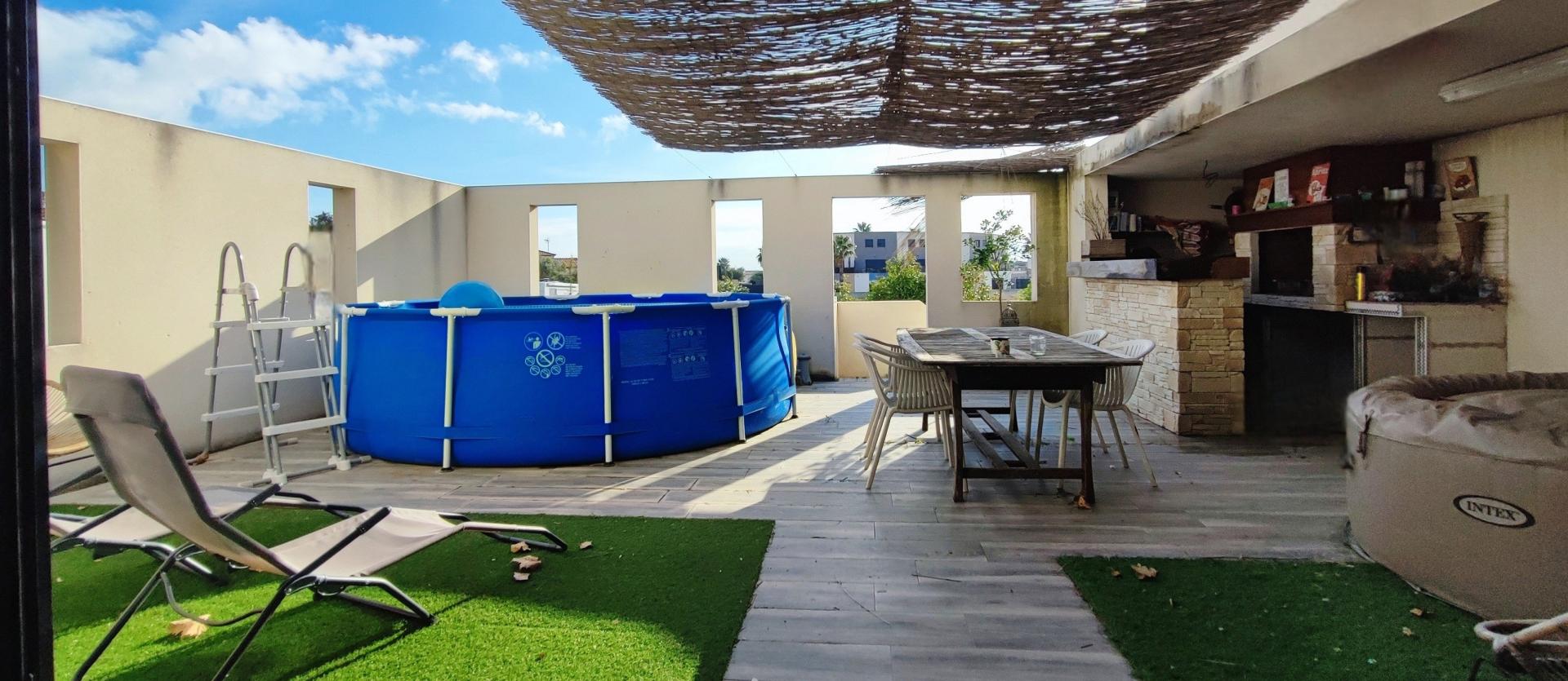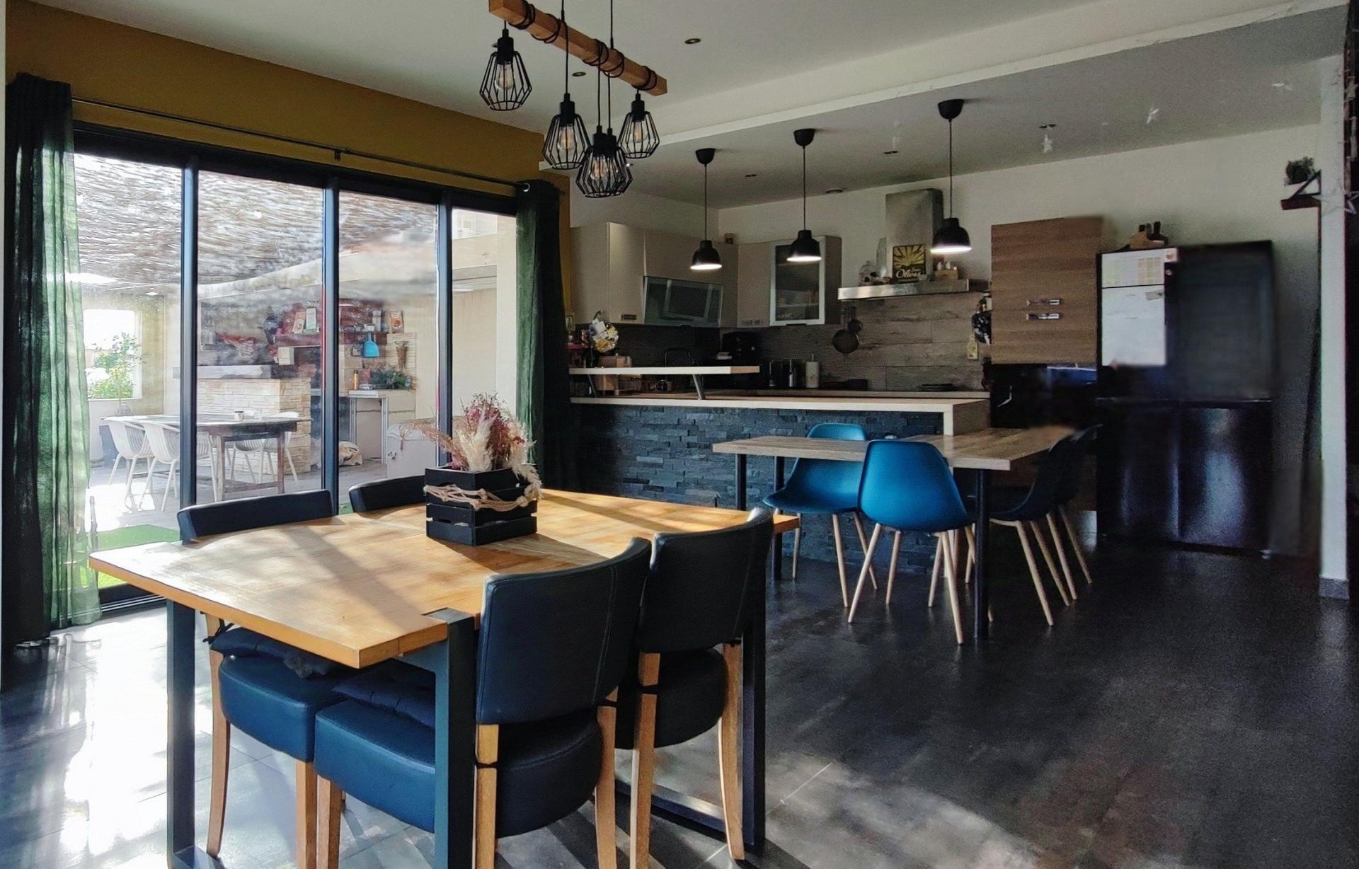Idéalement située dans une zone artisanale à Vic-la-Gardiole, cette villa contemporaine de 180 m² offre des espaces généreux et modulables (plus de 200 m² restant à aménager), parfaits pour allier vie privée et projets professionnels. Sur une parcelle de 1003 m², cette propriété est composée de 2 lots : Un garage sur 2 niveaux, avec rideau métallique motorisé : 77 m² au rdc et 83m² à l'étage pouvant servir de stockage ou même de bureaux avec cuisine ou vestiaire. Cette partie restant à aménager. Le second lot concerne la villa et se compose comme suit: Au rdc, un sous-sol semi enterré de 140 m² possédant une entrée indépendante, pouvant être aménagé. Mais également une pièce de 10 m² totalement indépendante donnant sur le parking. Au premier se compose d'un espace de vie lumineux avec séjour, salon, cuisine ouverte, WC séparé, ainsi qu'une vaste terrasse de 57 m² équipée d’une cuisine d’été. Au second, nous accédons aux 4 chambres, dont une suite de 26 m² avec dressing et accès au toit-terrasse, une salle de bain avec douche et baignoire, et un second WC indépendant. Les prestations incluent un plancher chauffant et rafraîchissant avec pompe à chaleur, des huisseries aluminium avec volets électriques sur les 2 niveaux. Ce bien unique conjugue confort contemporain et potentiel d'aménagement. À découvrir sans attendre.