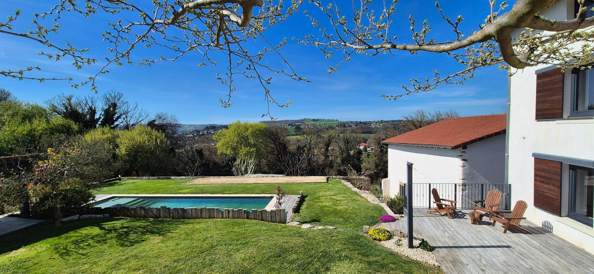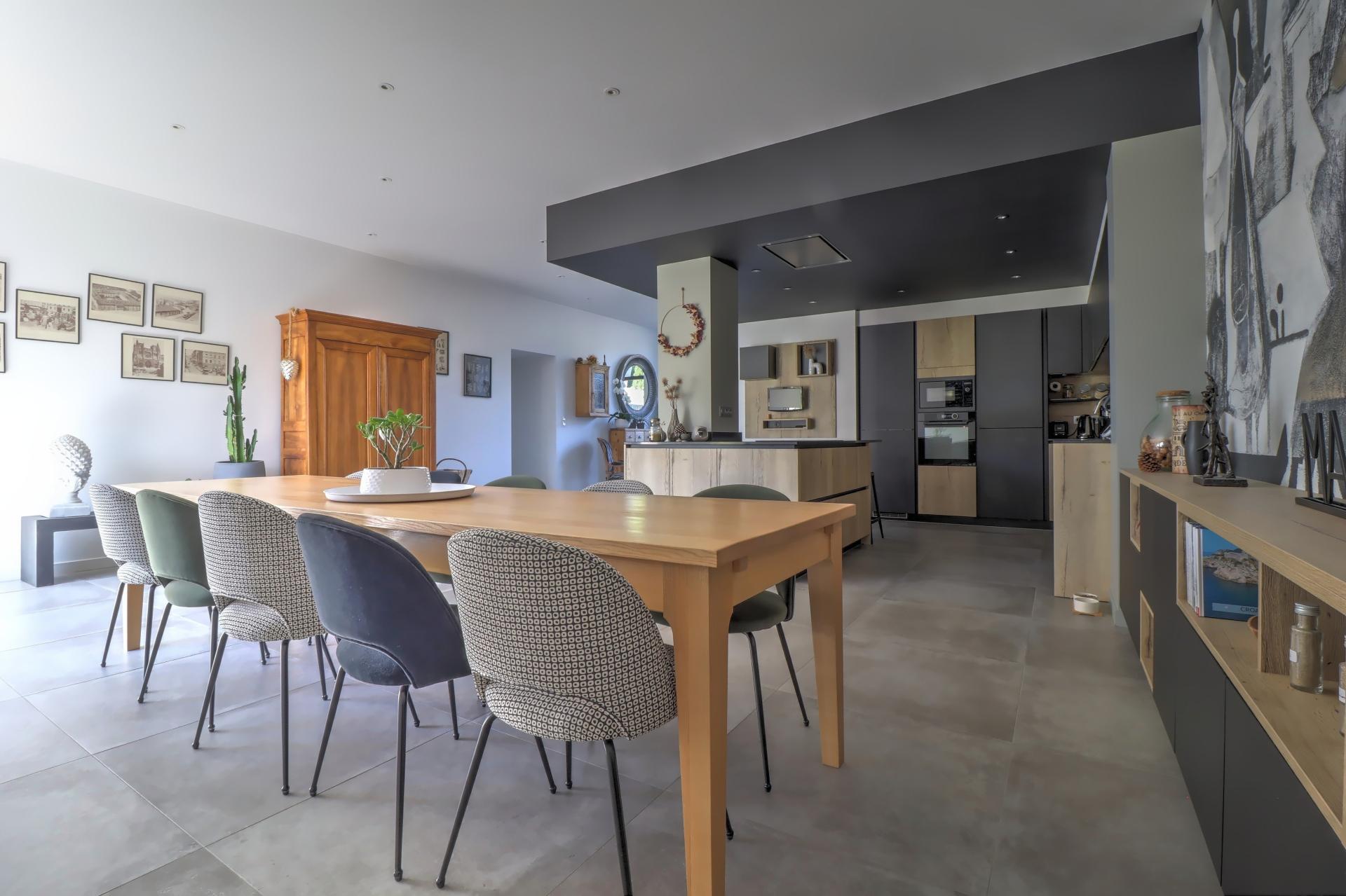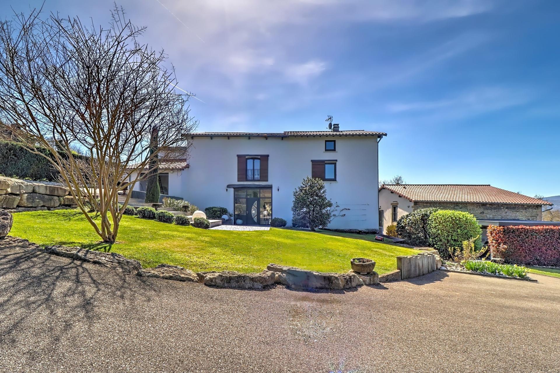 Dans un écrin de verdure préservé, dominant les vallons avec une vue totalement dégagée, cette propriété d’exception offre un cadre de vie rare, intime et résolument exclusif. Entièrement repensée et rénovée avec des matériaux d’exception, elle conjugue architecture contemporaine, élégance intemporelle et performances énergétiques remarquables (DPE B). Un domaine confidentiel qui s’étend sur 6 100 m² de jardins paysagés, comprenant une demeure principale de 320 m², une résidence secondaire de 80 m² et de nombreuses annexes. - Demeure principale, un raffinement absolu (320 m²): Le rez-de-chaussée révèle un majestueux espace de vie de 100 m², baigné de lumière : - Entrée somptueuse avec vestiaire sur mesure. - Cuisine ouverte avec salle à manger de 54 m², aux lignes contemporaines et aux finitions hautement raffinées. - Séjour cosy de 35 m², véritable cocon de sérénité. Un bureau ou chambre de 12,80 m² complète ce niveau. À l’étage, le confort atteint un niveau remarquable : - Deux suites juniors de 24 et 26 m², chacune dotée de dressing et salle d’eau privée, offrant un confort optimal. - Une suite parentale de 38 m², véritable écrin, avec dressing généreux et salle de bain raffinée agrémentée d’une douche à l’italienne. - Un espace fitness de 16 m², avec accès indépendant, peut être aménagé en cinquième chambre. Le dernier niveau dévoile un superbe espace de détente de 64 m², magnifié par de majestueuses poutres apparentes, créant une atmosphère rare et reposante. Une cave à vin de 11 m² enrichit également ce bien d’exception. - Résidence secondaire – Élégance et indépendance (80 m²): Parfaitement pensée pour recevoir dans un esprit haut de gamme ou pour un projet de location premium, elle offre : - Un séjour avec cuisine équipée de 36 m², - Deux chambres de 11,65 m² et 17,65 m², - Une salle d’eau communicante, sobre et élégante. Deux caves de 47 m² viennent compléter cette bâtisse. Extérieurs : La propriété est un véritable havre de paix conçu pour une vie en harmonie avec la nature. - Jardins paysagés avec arrosage automatique et robots tondeuses sans fil pour un entretien simplifié, - Piscine chauffée 3,5 x 12 m, - Pool house d’exception de 25 m² avec terrasse couverte, - Terrain de pétanque 12 x 2,50 m, - Terrasse en bois exotique offrant une vue imprenable sur les vallons, - Un puits permettant l'arrosage extérieur de la propriété. Annexes : - Atelier de 17 m², - Garage de 18 m² équipé d’une borne électrique, - Carport de 32 m² à l’entrée de la propriété, - Second carport de 35 m² pour la bâtisse secondaire, - Multiples espaces de stationnement. À seulement quelques minutes du centre de Vienne et des principaux axes routiers,. Cette demeure rare sur le marché séduit par ses volumes généreux, sa luminosité naturelle et son alliance parfaite entre authenticité et élégance contemporaine. Un lieu de vie unique, pensé pour répondre aux attentes d’une vie familiale aussi sereine que prestigieuse. Contactez‑moi pour une visite privée.