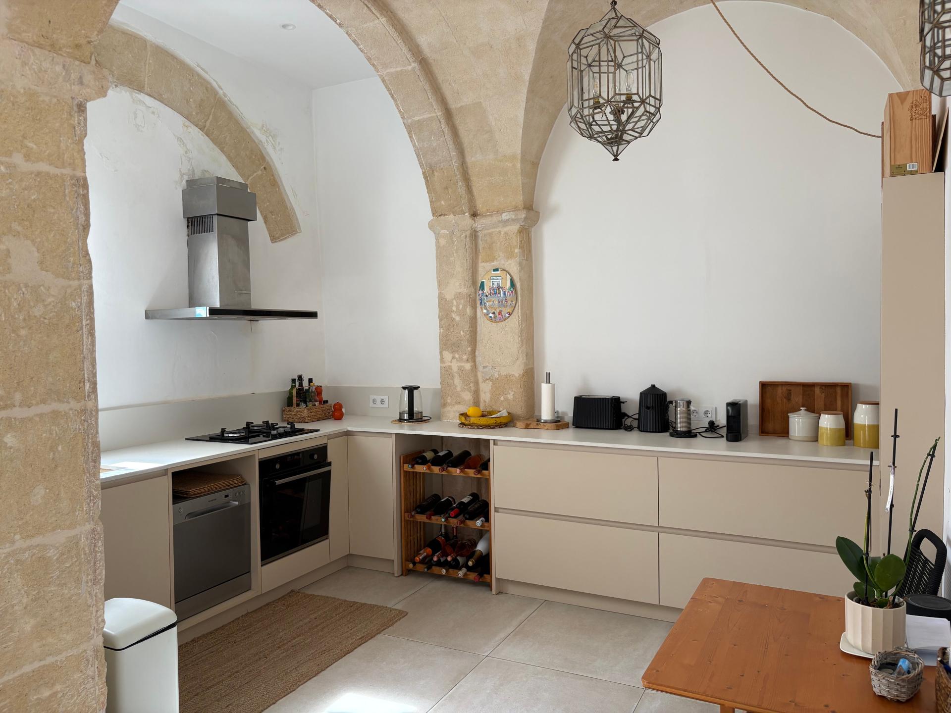 Découvrez cette magnifique propriété véritablement unique au cœur du centre historique de Ciutadella de Minorque. Cette élégante maison de plain-pied, entièrement rénovée avec des matériaux et des finitions de grande qualité, allie le charme de l’architecture minorquine à un design contemporain raffiné. La maison se distingue par sa grande luminosité et par son espace de vie spéctaculaire : une cuisine ouverte, une salle à manger et un vaste salon aux beaux volumes, où les arcades traditionnelles en pierre de marés apportent caractère, authenticité et élégance. Elle dispose de trois chambres en suite offrant confort et intimité, ainsi qu’un hall d’entrée accueillant qui annonce immédiatement le style de la propriété. Dans le couloir distribuant les chambres se trouve également un wc d'invité. À l’extérieur, un véritable privilège dans la vieille ville : une buanderie exterieur, un patio privé avec porche et une piscine, créant une oasis de tranquillité en plein cœur de la ville. Une propriété rare pour vivre Minorque avec élégance.