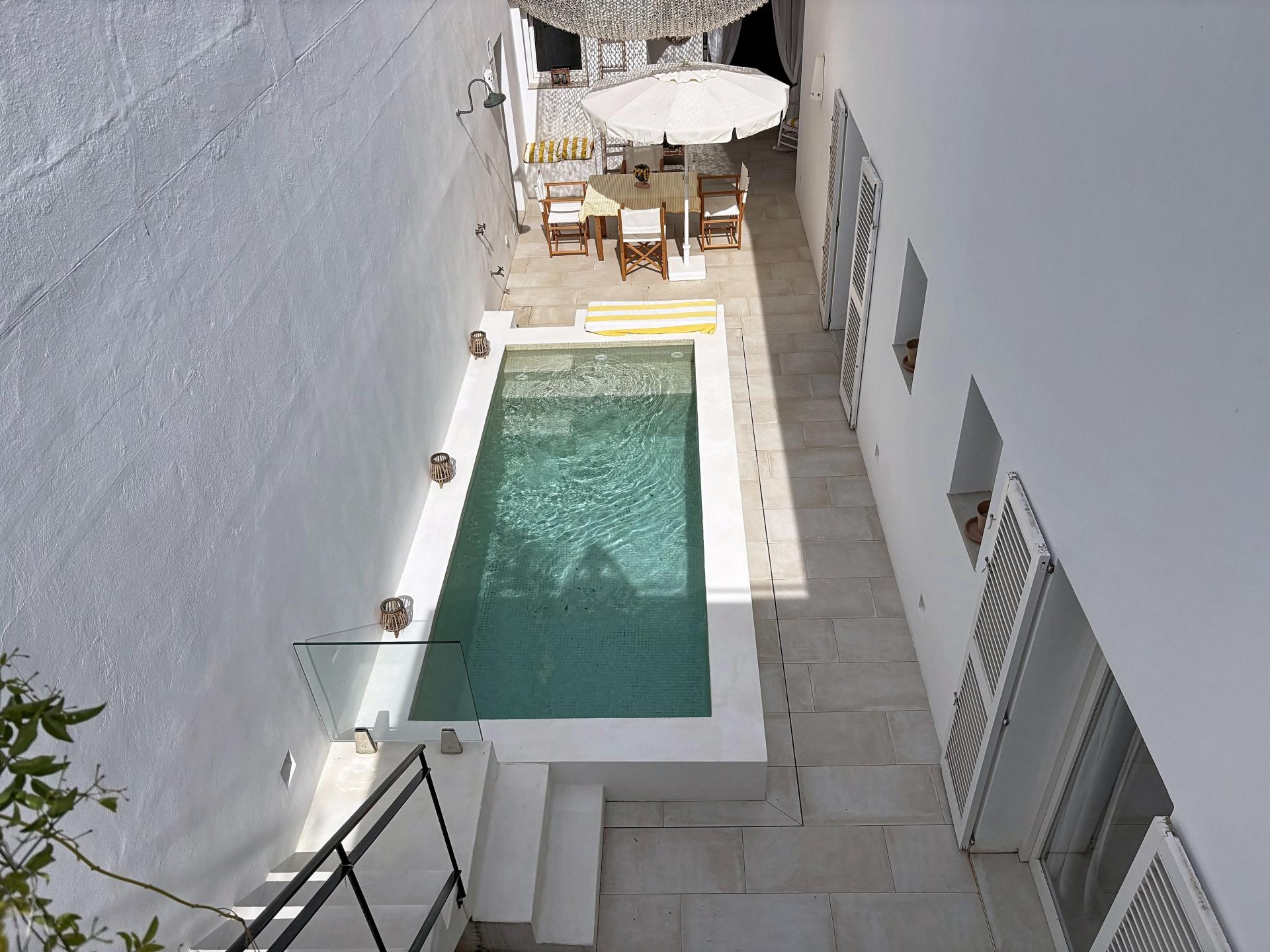 Situation privilégiée dans le centre historique de Ciutadella de Minorque. Maison de plain-pied très lumineuse. Récemment rénovée avec des matériaux et finitions de grande qualité 3 chambres 3 salles de bain. Hall d’entrée Cuisine ouverte sur un grand espace de vie et patio. Grand salon avec de beaux volumes et arcades en pierre de marés. Patio privé Porche extérieur. Piscine privée. Prête à habiter. Architecture minorquine avec design contemporain.