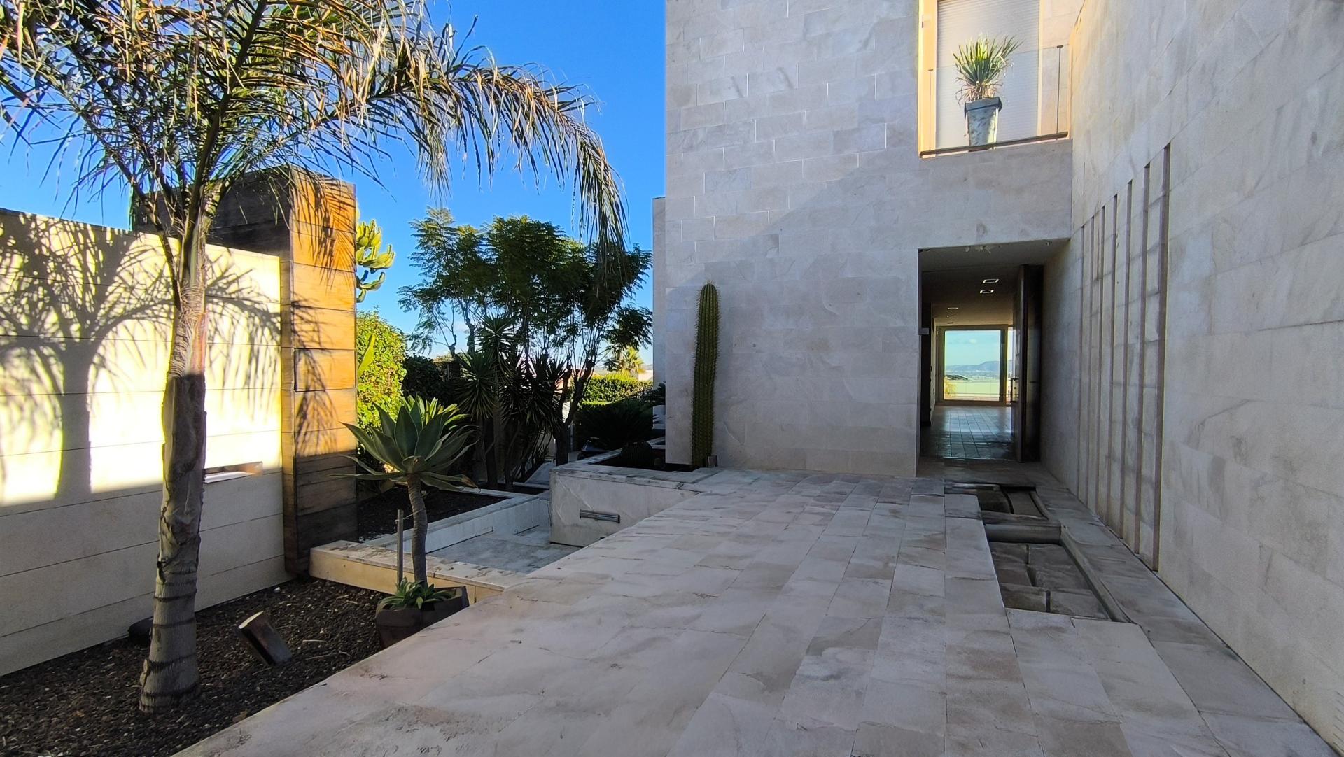Ubicada en una de las Zonas Residenciales más exclusivas de Murcia, esta excepcional villa representa la perfecta combinación de Elegancia y un estilo de Vida sofisticado. Situada en una de las calles más prestigiosas de la Urbanización al disfrutar de las mejores Vistas, presenta una arquitectura moderna, absoluta privacidad y una calidad de vida al más alto nivel. La propiedad se asienta sobre una parcela de 1.231 m2, donde la Arquitectura de vanguardia y el encanto de sus Vistas desde cualquier punto de la Vivienda, integran una combinación de estética sobria y refinada en perfecta armonía. Tras su elegante fachada se despliega un interior luminoso y acogedor, caracterizado por materiales de alta calidad, líneas arquitectónicas limpias y cálidos detalles. Amplias perspectivas visuales permiten disfrutar de impresionantes vistas de la Vega de Murcia, con espectaculares puestas de sol que serán un remanso de paz cada atardecer. La Villa se distribuye en tres niveles y destaca por su cuidada distribución: elegantes Salones, una amplia Cocina totalmente equipada con dos estancias independientes, varios Dormitorios de diseño, todos ellos con baño en Suite, Zona de estar y Vestidor. El Dormitorio principal constituye un auténtico refugio privado, con una terraza independiente panorámica, ideal para el descanso y la contemplación. La propiedad presenta también en su planta baja un Apartamento de invitados totalmente independiente, con 2 dormitorios, cocina y acceso propio, que garantiza el máximo confort y privacidad. Las Zonas exteriores ofrecen un entorno de tranquilidad y amplitud: jardines cuidadosamente diseñados con árboles y selección de especies tropicales, amplias Terrazas en todas las plantas y una generosa zona de Piscina crean el escenario perfecto para momentos de relax o veladas elegantes en un ambiente íntimo. La privacidad es absoluta, enmarcada en una de las áreas Residenciales más demandadas de Murcia.