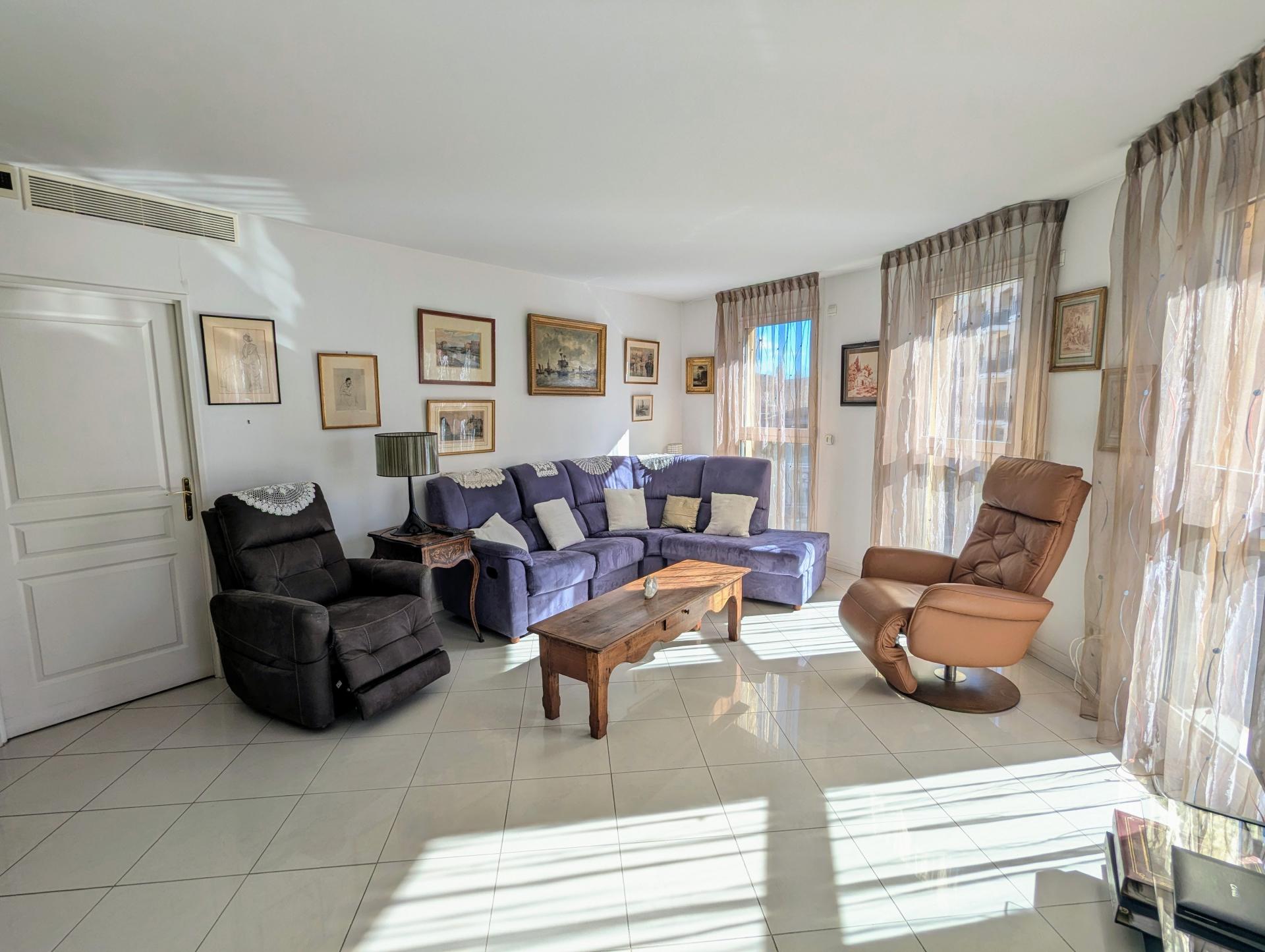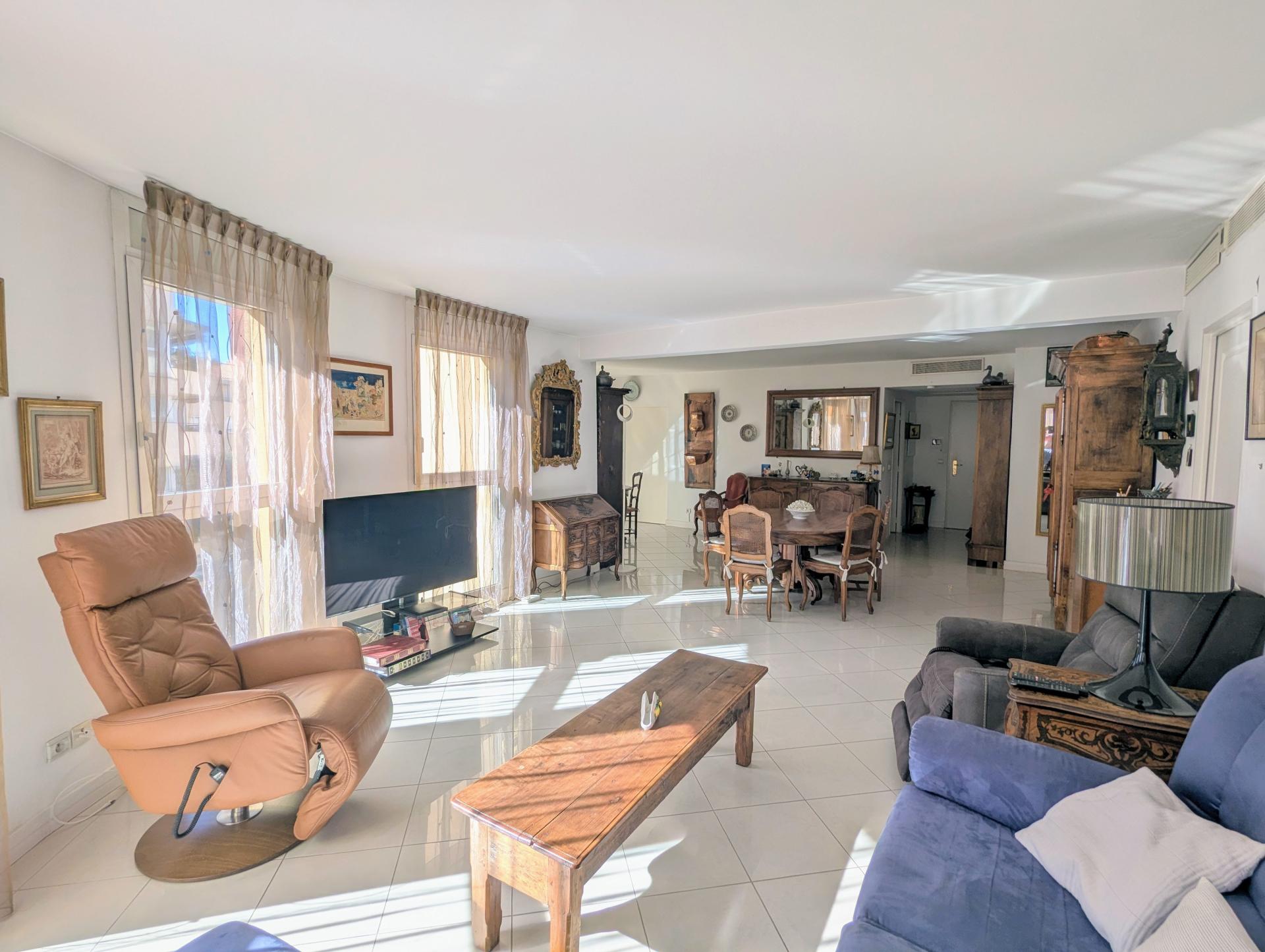 Idéalement situé en plein centre-ville d’Aix-en-Provence, aux Allées Provençales, à deux pas du prestigieux Cours Mirabeau, cet appartement traversant de 119 m² habitables bénéficie d’un emplacement rare et recherché, offrant un cadre de vie privilégié où tout se fait à pied. Situé au 3ᵉ étage sur 5 d’un immeuble sécurisé avec ascenseur, il offre confort et sérénité au quotidien. Dès l’entrée, vous serez séduit par un vaste séjour lumineux, offrant un espace de vie chaleureux et convivial. La cuisine aménagée, fonctionnelle, complète parfaitement cet ensemble. L’espace nuit se compose de trois belles chambres, dont une suite parentale avec sa salle de bains privative, garantissant confort et intimité. Une seconde salle de bains ainsi que des toilettes indépendantes viennent compléter l’agencement. L’appartement dispose également d’une agréable terrasse exposée sud avec vue sur la célèbre fontaine de la Rotonde. Le bien est équipé d’une climatisation réversible et de volets électriques. Enfin, deux garages en sous-sol avec portes motorisées constituent un véritable atout en centre-ville, où le stationnement est particulièrement recherché. Une opportunité unique au cœur d’Aix, réunissant emplacement d’exception et beaux volumes.