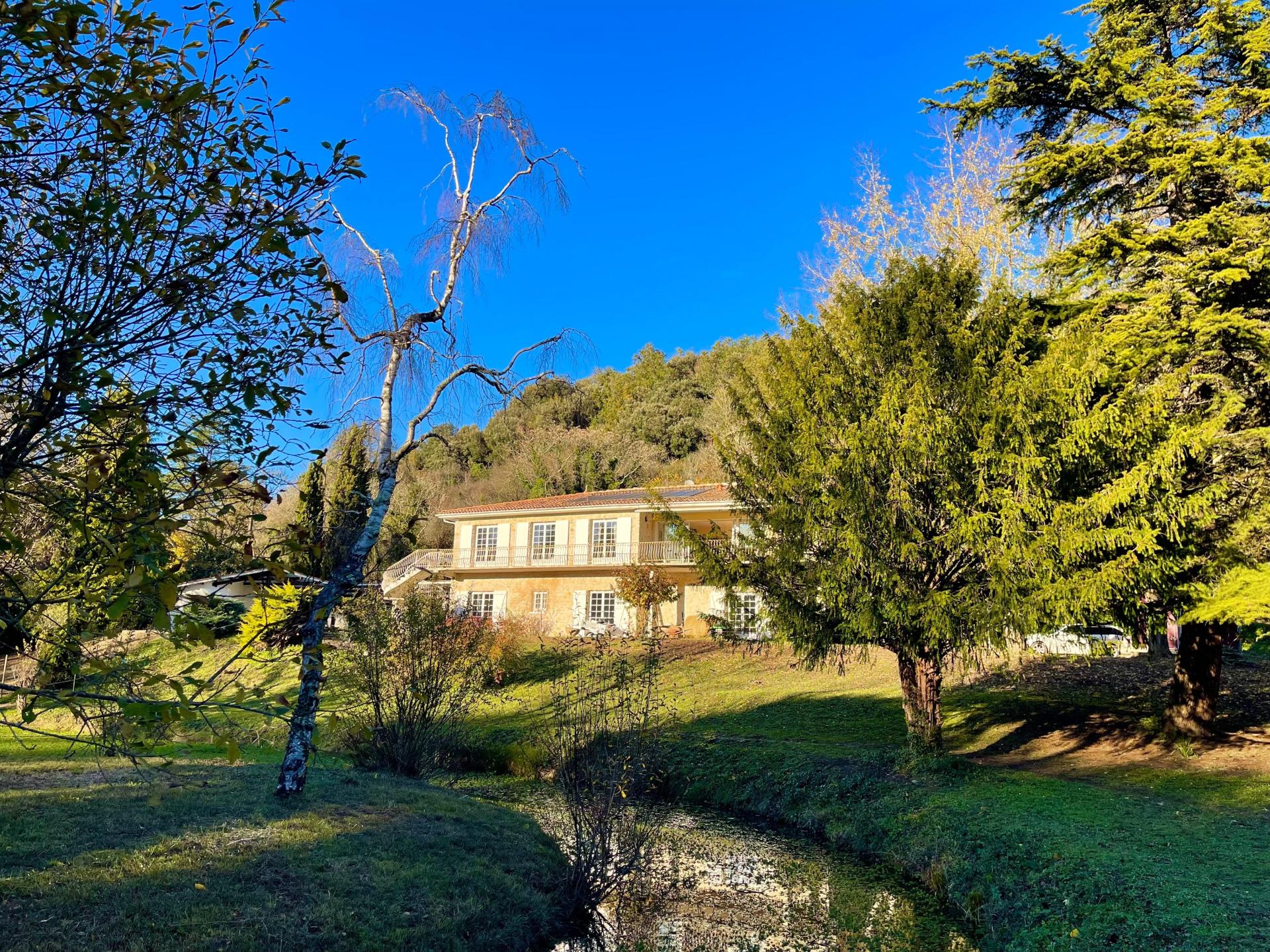 Propriété 1.6 hectares avec étang sur emplacement exceptionnel, maison d'architecte en pierre avec piscine, 6 chambres, dépendances.