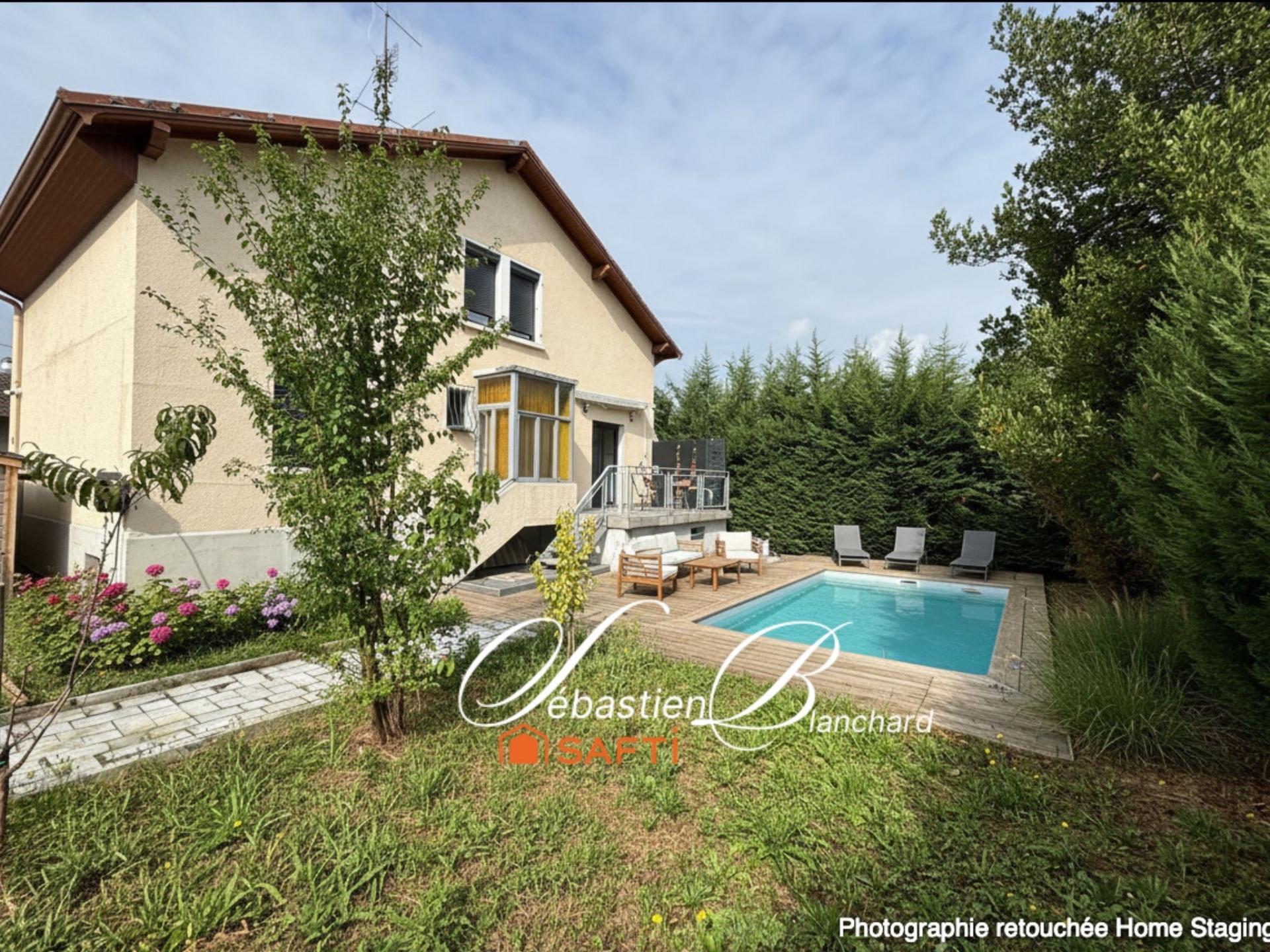 Située à Annemasse (74100), cette maison offre un emplacement idéal à proximité du tramway et de la gare du Léman Express, permettant des déplacements aisés vers Genève. Cette localisation stratégique combine la tranquillité d'une maison avec jardin, tout en offrant un accès rapide aux infrastructures, offrant ainsi un cadre de vie pratique et agréable. La maison de 119 m² sur un terrain de 580 m² propose au rez-de-chaussée un lumineux séjour comprenant salon, salle à manger et cuisine équipée moderne, deux chambres avec rangements, salle d'eau et wc. À l'étage, trois chambres supplémentaires dont une avec dressing, salle de bains, wc et buanderie. Le sous-sol aménagé avec cuisine, pièce de vie et salle d'eau avec wc peut servir d'appartement indépendant. À l'extérieur, un jardin clos de 580 m² avec terrasse et piscine chauffée (2,7 m x 6,5 m) offre un espace de détente, combinant espace, modularité et accessibilité transfrontalière pour une vie de confort aux portes de Genève.