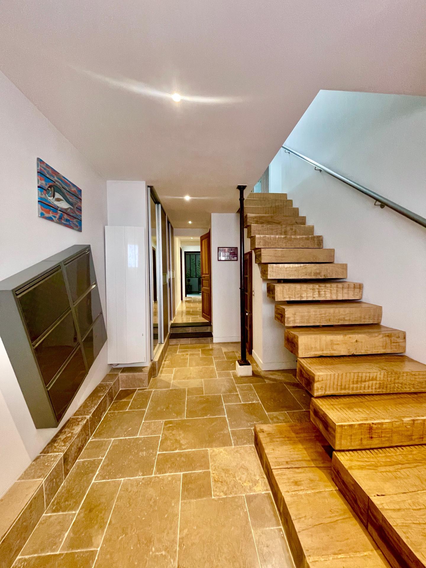 Située dans la charmante ville d'Arcachon (33120), en ville d'Été, cette moderne maison T5 de 146 m² (surface au sol 160 m2), aux prestations haut de gamme, offre un cadre de vie paisible et agréable à ses résidents. Nichée dans un quartier prisé en 2e ligne, elle bénéficie d'une proximité du centre ville (5min à pied) et avec l'océan. Un extérieur de 272m2 comprenant un spa intégré, un balcon de 14m2, un local vélo de 3.5 m2 et un accès privé direct à la plage complètent ce bien. Rénovée en 2014, cette magnifique maison comprend: -en RDC: Entrée avec placards, 3 chambres, un grand cellier/buanderie, 1 SDB/SDE, et des WC indépendants -A l'étage: Séjour/salle à manger avec cheminée en pierre, cuisine à l'américaine aménagée et équipée, chambre parentale avec salle d'eau et dressing, et des WC indépendants. Un bel escalier en bois massif relie les 2 étages. Parfaite pour une famille, elle offre un cadre unique par son agencement pratique et confortable avec ses pièces bien distribuées, et son emplacement bien privilégié.