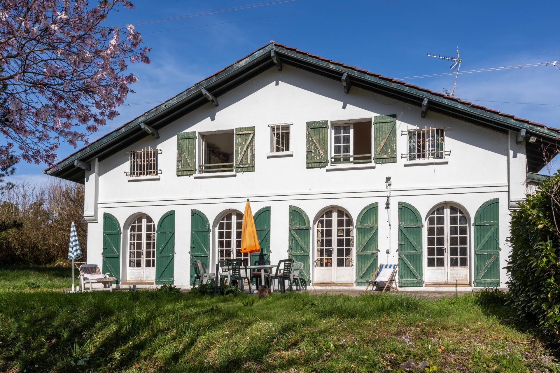Située à Ascain, cette propriété offre un cadre de vie paisible et verdoyant, idéal pour les amoureux de la nature. Implantée sur un vaste terrain de plus de 4500 m², elle bénéficie d'une belle intimité tout en restant non loin des commodités locales. La maison dispose d'un grand jardin plat arboré, de plusieurs emplacements de parking, d'un garage et d'annexes modulables à souhait. L'annexe de 40 m², apporte un espace supplémentaire polyvalent, idéal pour recevoir amis ou famille. Cette grande maison présente un agencement fonctionnel avec partie réception et partie nuit bien séparées. Le rez-de-chaussée offre un salon avec cheminée, une salle à manger, une cuisine fermée, un cellier et une buanderie. Les 3 chambres du rez-de-chaussée et les 4 chambres de l'étage permettent des espaces privés confortables, complétés par 4 salles d'eau et 4 toilettes répartis dans la maison. Fort potentiel d'aménagement et de remise au goût du jour. Possibilité de division de terrain déjà validée.