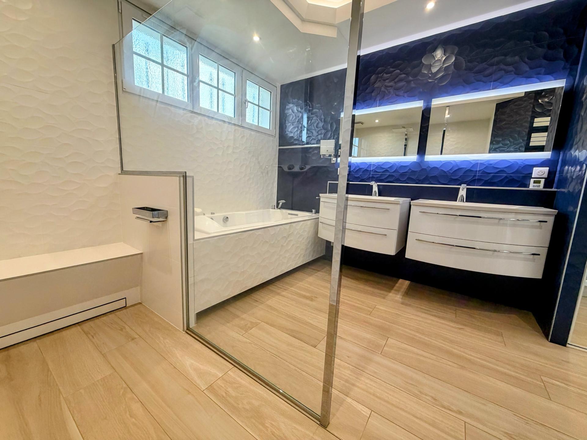 Située à Aulnay-sous-Bois (93600), à seulement 25 mn de Paris et 15 mn de Roissy CDG, dans un quartier calme et recherché, découvrez cette grande demeure spacieuse et lumineuse ainsi que sa seconde maison indépendante sur un parc paysager de plus de 2200m2. Cadre de vie agréable et verdoyant dans une ville dynamique offrant de nombreuses commodités, établissements scolaires, transports en communs et canal de l'ourcq à proximité. À l'intérieur, cette ancienne maison de maître, vivable de plain-pied, de 8 pièces et 5 chambres dont 4 parentales, offre un confort optimal. et sécurisé (système d'alarme). Au rez-de-chaussée, un magnifique hall cathédrale dessert une cuisine en marbre, équipée et aménagée entièrement rénovée dernièrement, un double séjour lumineux (avec cheminée) donnant sur la terrasse, une suite parentale avec salle de bain/douche avec baignoire balnéo air/eau et douche à l'italienne ainsi que des toilettes indépendantes. À l'étage, on trouve un grand palier, deux chambres avec dressing et salle d'eau, une chambre avec dressing et salle de bain, une chambre, une salle de bain supplémentaire, une mezzanine et un WC indépendant. Un sous-sol total comprend une chaufferie/buanderie, un dressing, une salle d'eau, un monte charge pour les trois niveaux, un atelier et un garage de quasiment 60m2 pouvant accueillir 3 véhicules. La cour permet également un large stationnement pratique pour les résidents et les visiteurs. La propriété, idéale pour une activité en libéral ou location, comprend également une maison indépendante en fond de parcelle avec 2 pièces, cuisine équipée, salle de bain et WC. Les combles sont isolés et aménageables. Cette maison bénéficie d'une magnifique cave à vins. Le terrain magnifiquement entretenu et arboré de plus de 2200 m², orienté plein sud, dispose d'une piscine hors sol, d'une terrasse, d'un balcon, une grande verrière, un composteur, un potager, un arrosage automatique enterré. ldéal pour profiter des belles journées en plein air.
