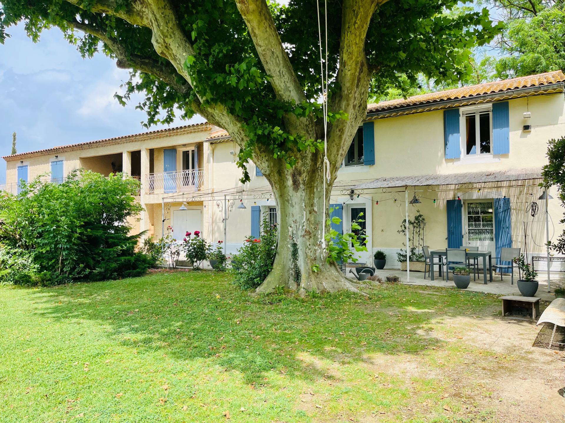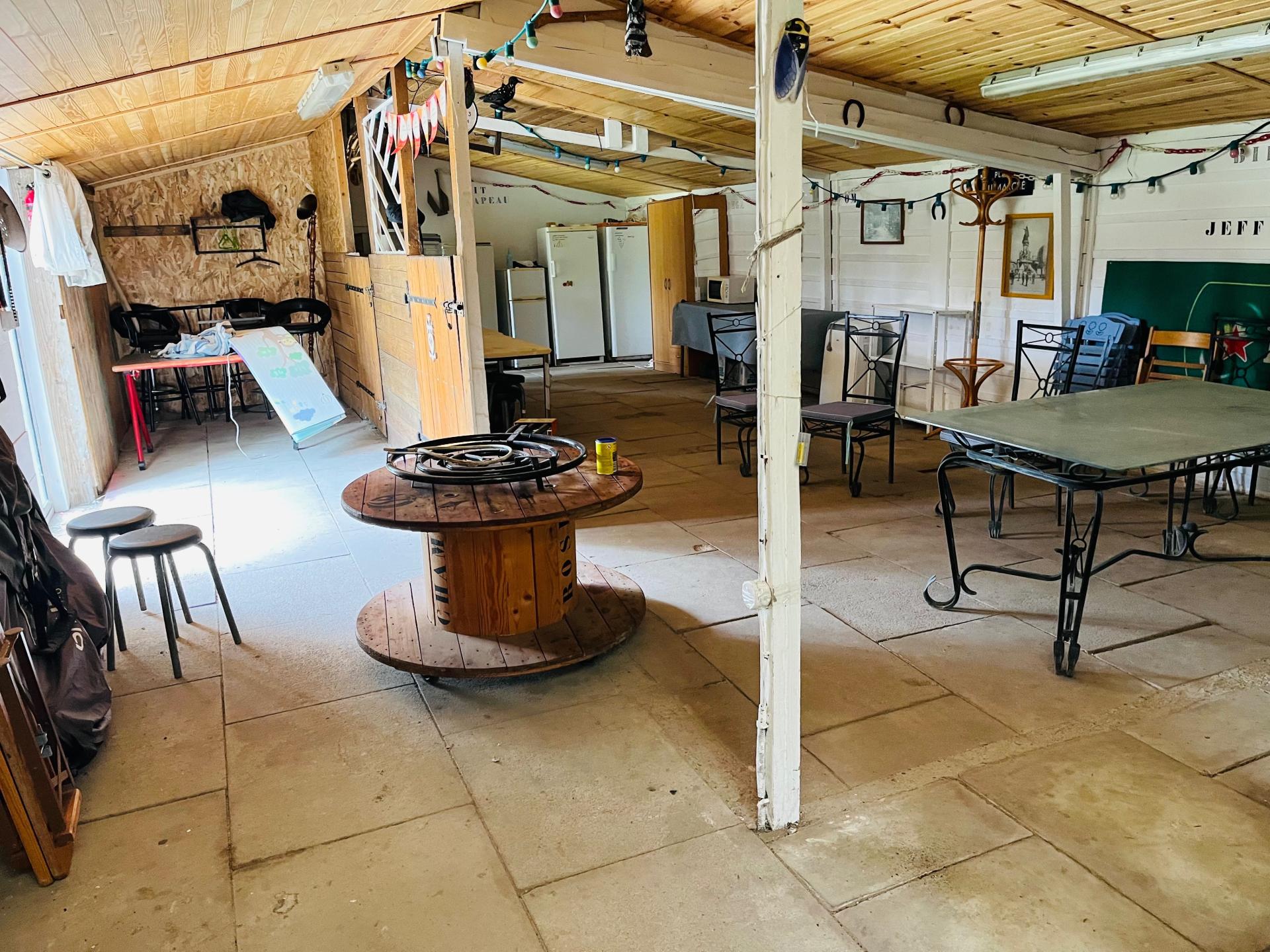 Située dans un environnement calme et verdoyant, entourée de terrains agricoles non constructibles et sans aucun vis-à-vis, cette propriété offre un énorme potentiel et de nombreuses possibilités : maison familiale, chambres d’hôtes, gîte équestre, location saisonnière, organisation d’événements ou lieu atypique. Au rez-de-chaussée, la maison principale offre une entrée menant à un salon doté d’une cheminée avec insert fonctionnel, une salle à manger avec cuisine, ainsi qu’un cellier attenant. Une grande buanderie avec point d’eau, de nombreux rangements, un WC indépendant et une chaufferie complètent ce niveau. S’ajoute également une vaste pièce lumineuse avec baie vitrée, pouvant faire office de salle à manger pour de grands repas, de bureau ou être aménagée en studio selon vos besoins. À l’étage, vous trouverez trois chambres spacieuses, une salle de bain avec WC, ainsi qu’une grande suite parentale avec balcon, disposant de sa propre salle d’eau et de WC. Équipée de la climatisation, d’une pompe à chaleur et d’un chauffe-eau thermodynamique récents, ainsi que d’un système d’alarme. Quatre studios indépendants d’environ 20 m² chacun, avec entrées privatives, permettent une activité de location immédiate. Le terrain d'environ 4 300 m², plat, arboré et piscinable, comprend également : - Une salle d’environ 100 m² avec WC sanibroyeur, anciennement une écurie, aujourd’hui idéale pour une salle de réception, une guinguette ou tout autre espace polyvalent. - Un projet de dépendance de 135 m² : les murs sont déjà construits, les plans d’architecte existent (prévue en appartement T4 avec trois chambres pouvant accueillir jusqu’à six personnes). L’intérieur est à aménager selon vos besoins. - Un grand garage à étage permet de stationner deux véhicules et offre un bel espace de stockage. Il est également possible de garer jusqu’à dix voitures sur le parking extérieur. Ce bien rare offre un fort potentiel de développement : exploitation touristique, événements privés ou professionnels. C’est également une opportunité idéale pour une maison familiale, tout en générant des revenus locatifs. Pour plus d’informations ou pour organiser une visite, n’hésitez pas à me contacter.