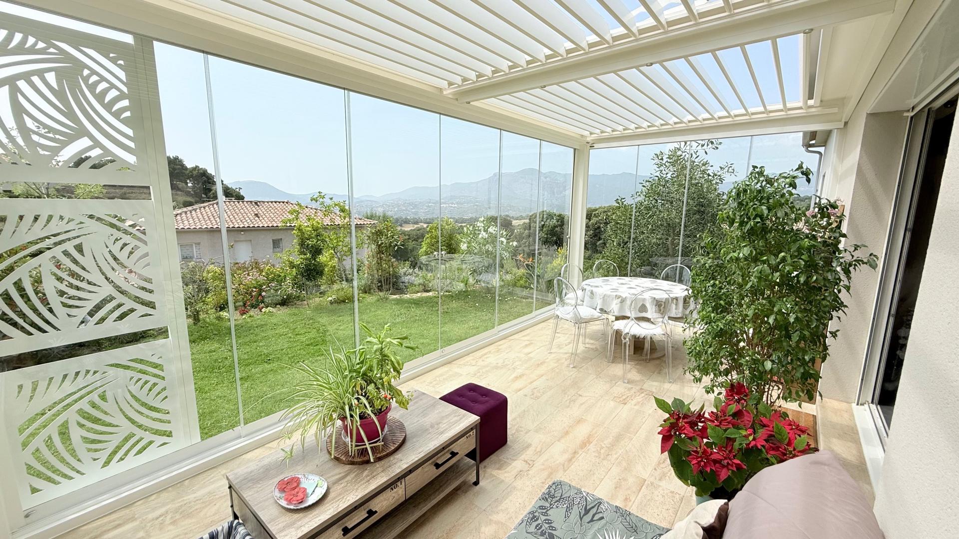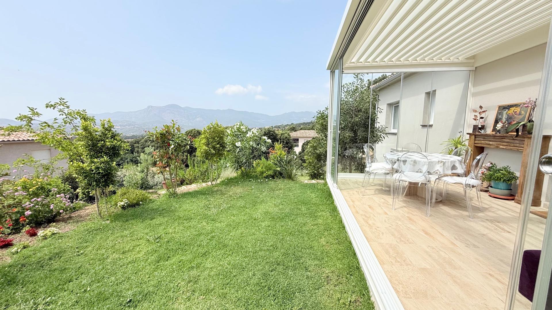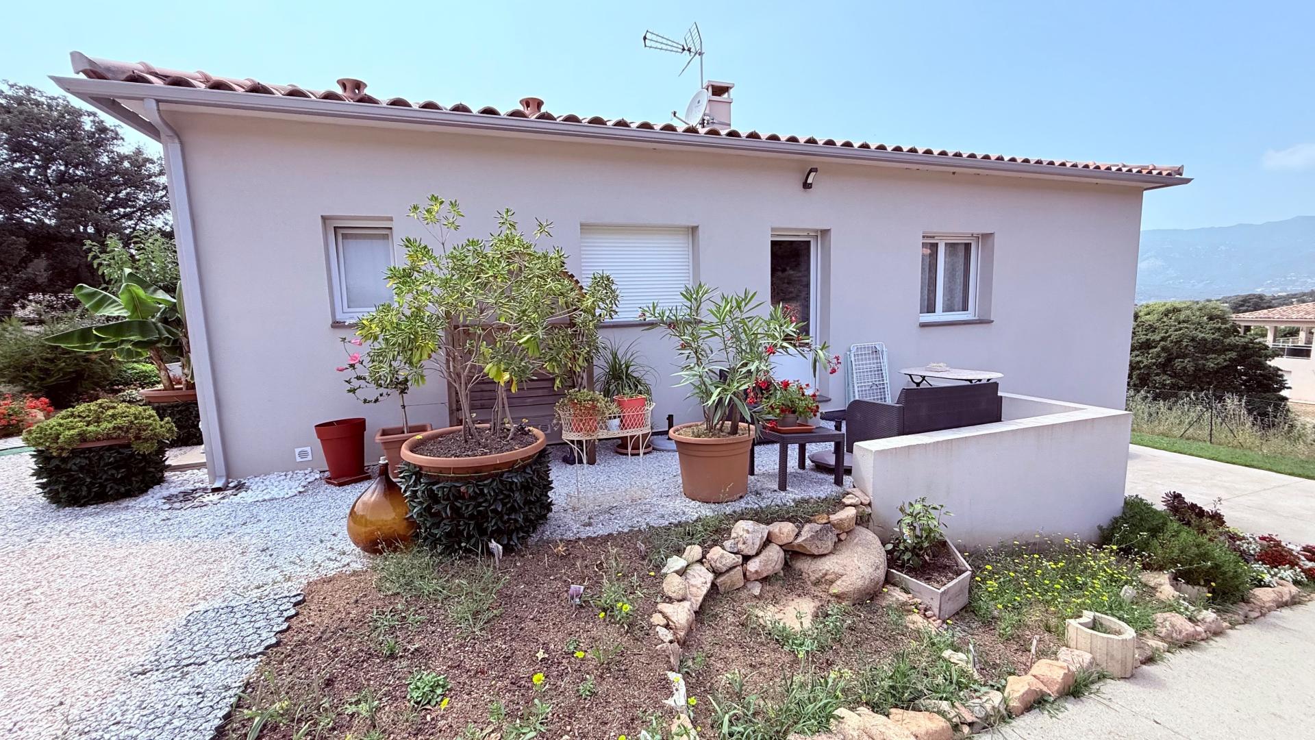 Maison de 2017, plain-pied, garage 46m², terrain 1000m² piscinable, terrasse bioclimatique, lotissement sécurisé, proche Ajaccio.