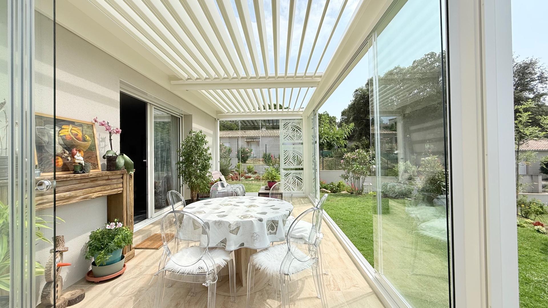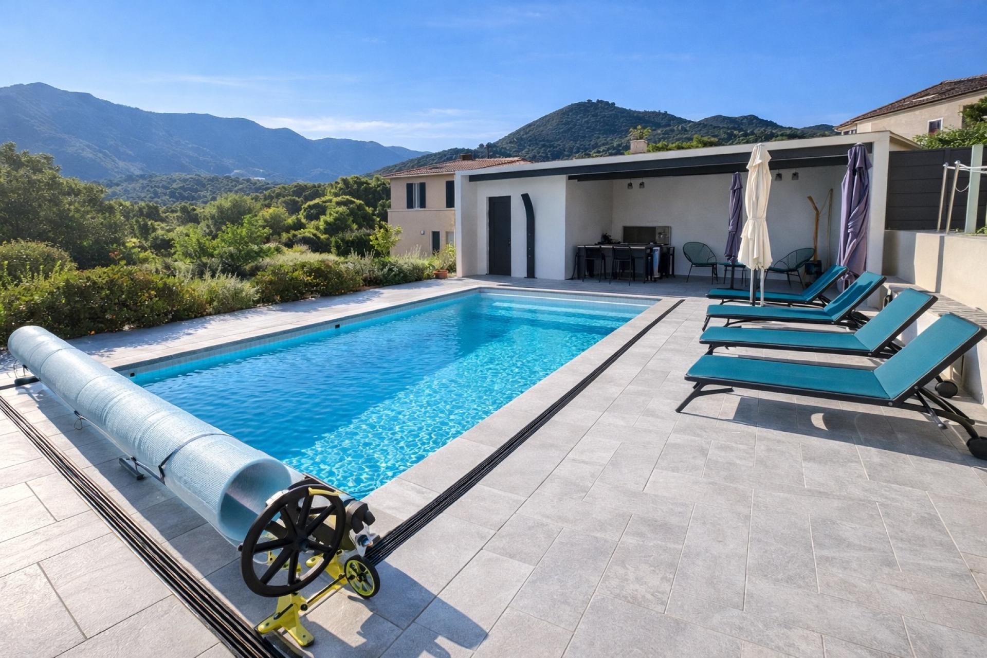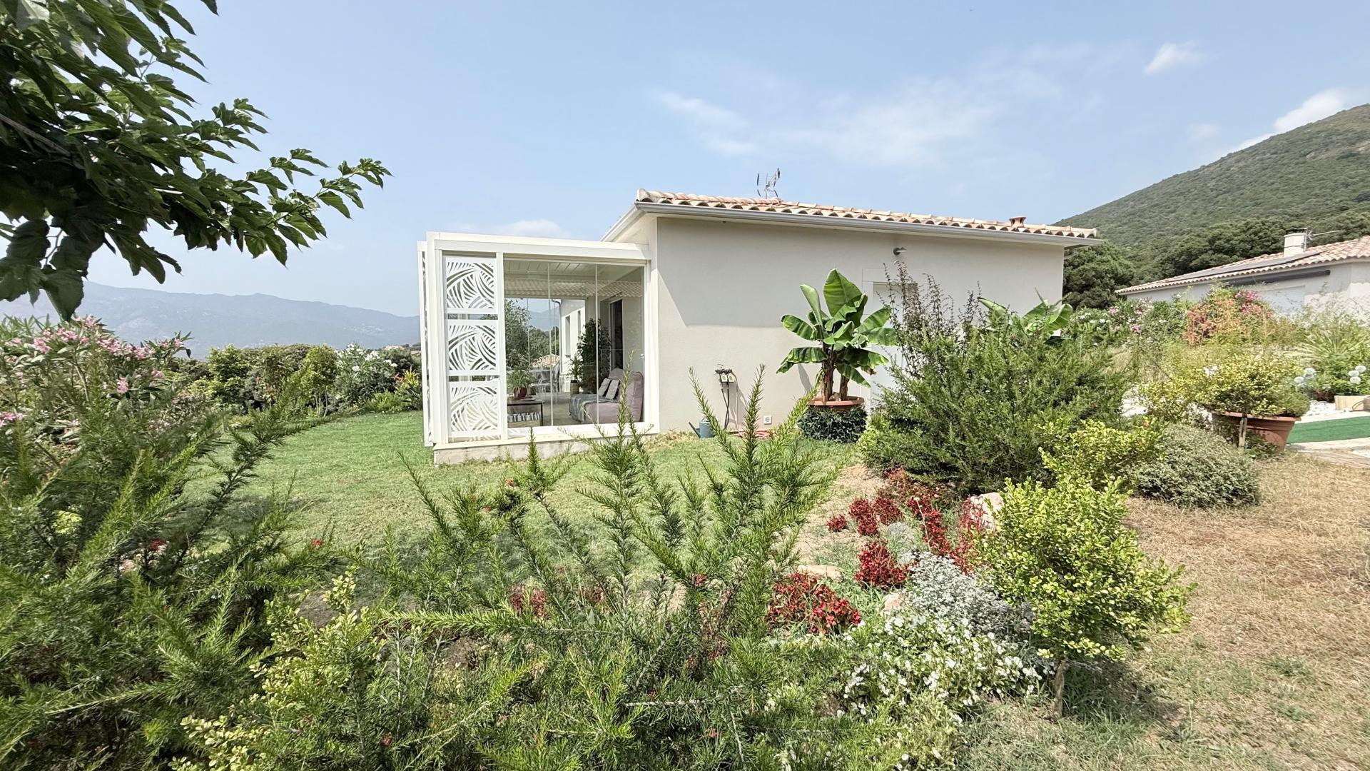 Maison de 2017, plain-pied, garage 46m², terrain 1000m² piscinable, terrasse bioclimatique, lotissement sécurisé, proche Ajaccio.