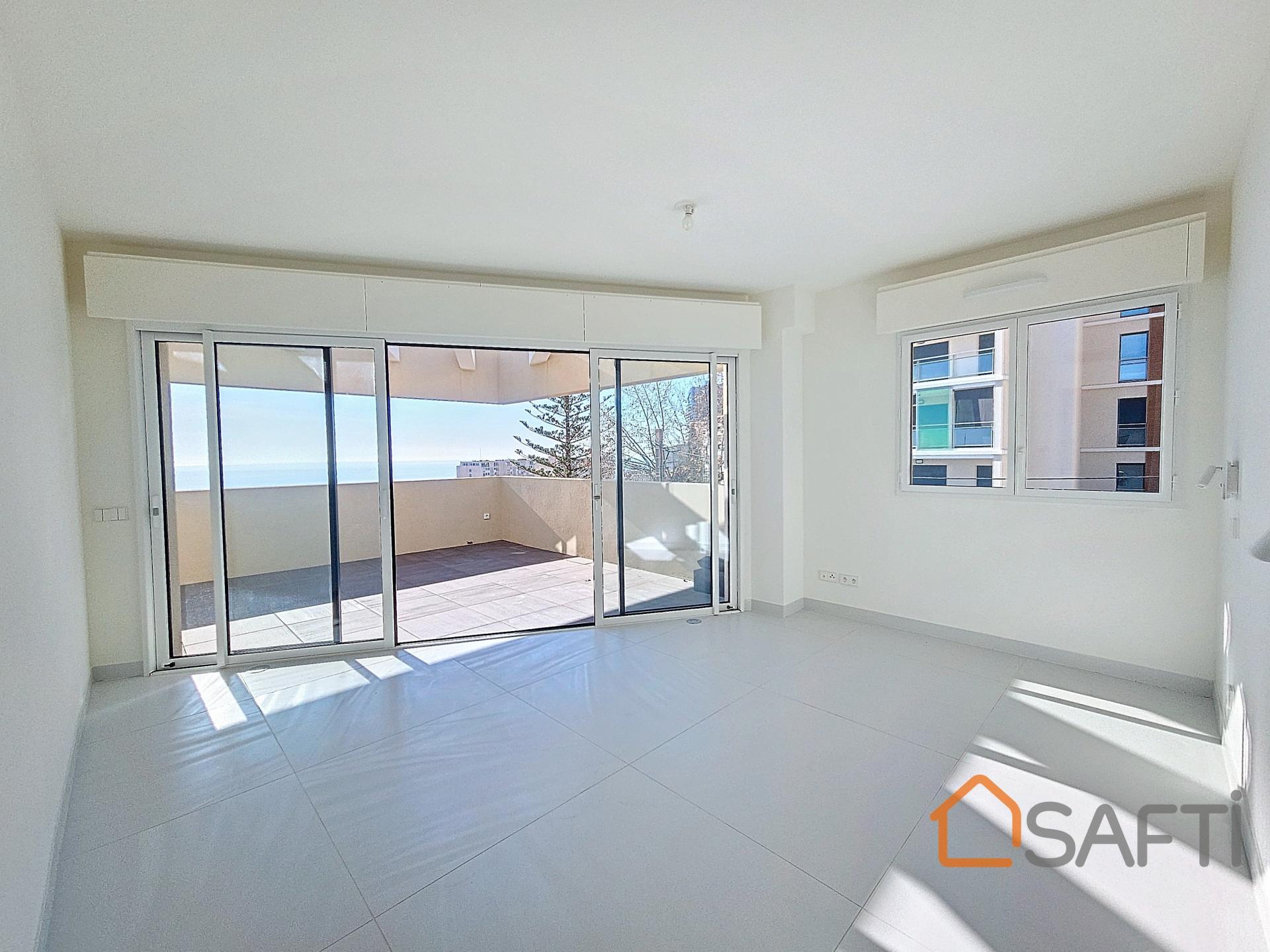 Rare sur le marché. Niché au sommet d’une résidence de très grand standing, ce penthouse unique de 111m² occupe exclusivement le dernier étage de l’immeuble. Une configuration exceptionnelle qui garantit une intimité absolue, un calme rare et une vue à couper le souffle. Accessible directement par un ascenseur privatif, l’appartement bénéficie d’une entrée exclusive digne des plus belles adresses. Dès l’arrivée, les volumes généreux et les finitions haut de gamme révèlent un art de vivre tourné vers le confort, le prestige et la lumière. Il se compose de trois chambres, chacune avec sa salle de bain privative, et d’un vaste espace de vie prolongé par une magnifique terrasse rooftop de 46 m², suspendue entre ciel et mer. Cette terrasse offre un panorama spectaculaire sur Monaco, la Méditerranée, et toute la Riviera française jusqu’à Menton. Un cadre idéal pour des moments de détente ou des réceptions en toute élégance. L’appartement est vendu sans cuisine aménagée, ce qui représente une opportunité rare pour les futurs acquéreurs : concevoir un espace cuisine entièrement sur mesure, selon leurs goûts, leurs habitudes de vie et leurs envies en matière de design et d’équipement. La résidence, d’une grande qualité, propose une piscine collective, une salle de sport, un service de conciergerie, ainsi qu’un dispositif de sécurité renforcée garantissant une sérénité absolue. Ce bien rare est vendu avec une cave. Trois places de parking supplémentaires disponibles à l’achat, en sus du prix de vente affiché. Un bien aussi rare qu’exclusif Dans une ville où les penthouses de ce standing sont extrêmement rares, ce bien représente une opportunité unique pour une clientèle à la recherche d’un lieu de vie d’exception, sécurisé, personnalisable et sans équivalent. *Les visuels présentés ont été réalisés par homestaging virtuel à l’aide de l’intelligence artificielle. L’appartement est vendu non meublé*