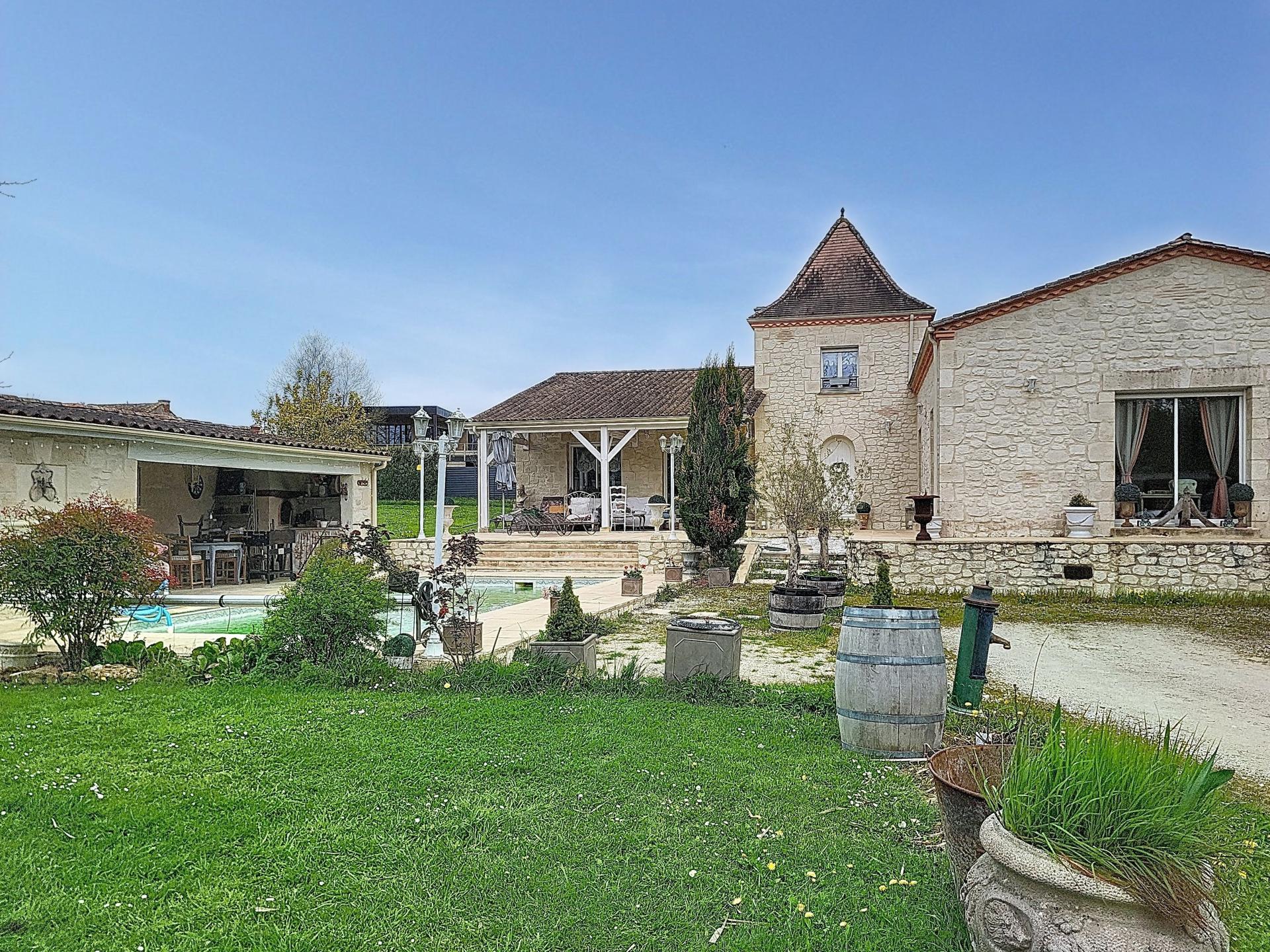 Une belle opportunité à saisir! Cette belle maison bénéficie d'un emplacement idéal en sortie de Bergerac, offrant un cadre paisible tout en restant proche des commodités. Nichée sur un vaste terrain de 2 hectares avec son étang, elle séduit par son architecture soignée et son entretien méticuleux. Dotée d'une piscine à chlore et d'un chauffage au sol, elle invite à la détente et à la sérénité. À l'extérieur, la propriété dispose de deux places de parking, d'une piscine, d'une terrasse, et d'un magnifique jardin arboré. La façade en pierre donne un charme authentique à cette demeure. Les vastes espaces extérieurs offrent un cadre de vie agréable, propice à la convivialité et à la relaxation. À l'intérieur, la maison de 190 m² se compose de 5 pièces dont 4 chambres. Les menuiseries en double vitrage et les sols en parquet ou carrelage apportent une touche de modernité. Le séjour avec cheminée et la cuisine ouverte offrent des espaces conviviaux. À découvrir sans tarder !